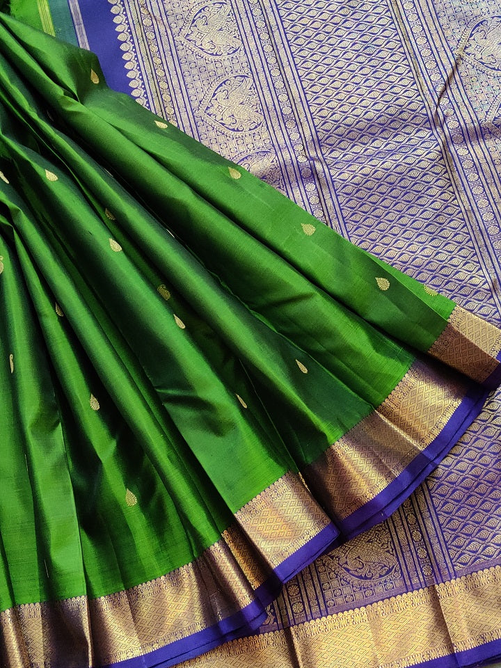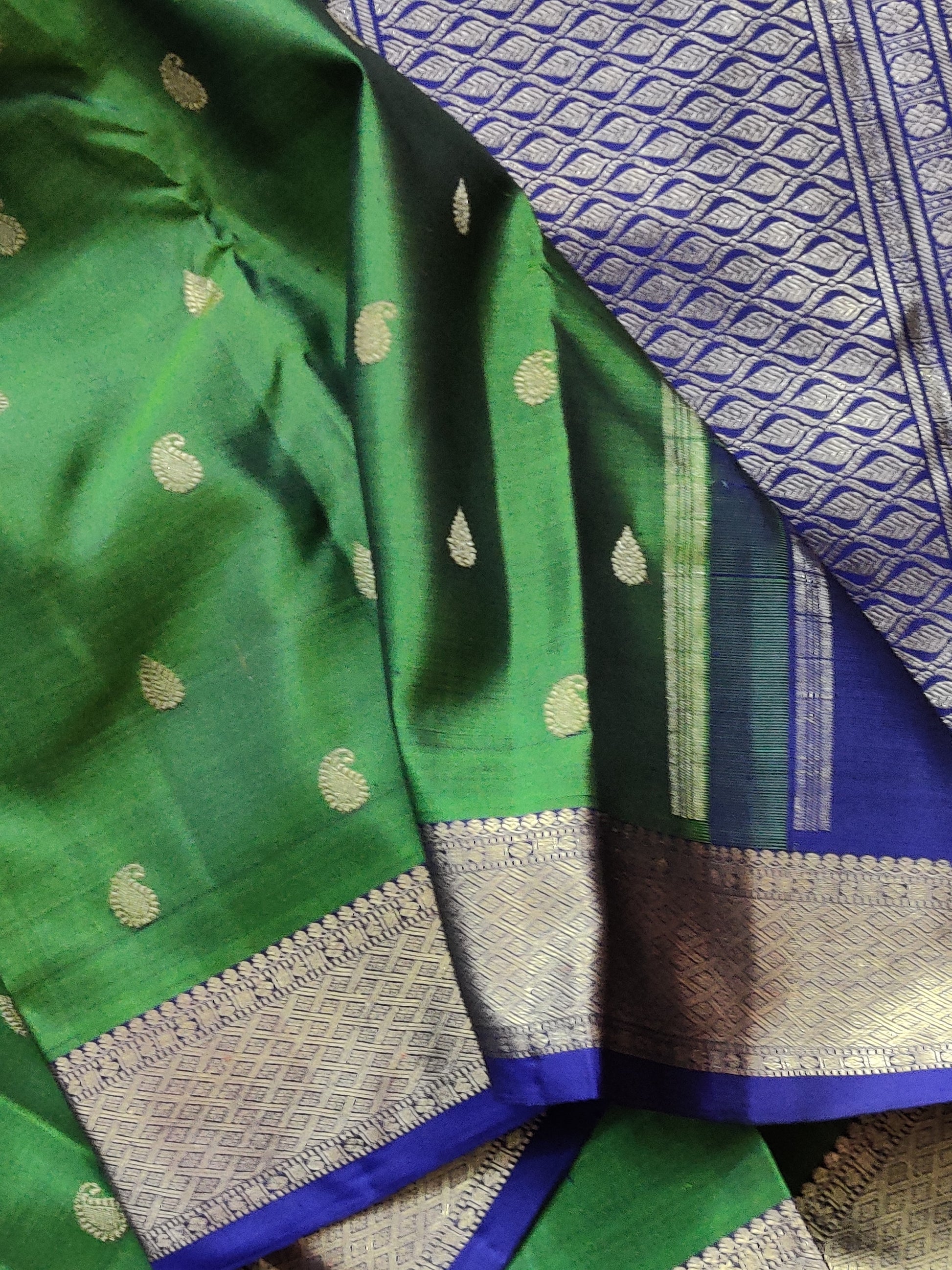Green Colour Kanchivaram Silk Saree With Zari Butta All Over