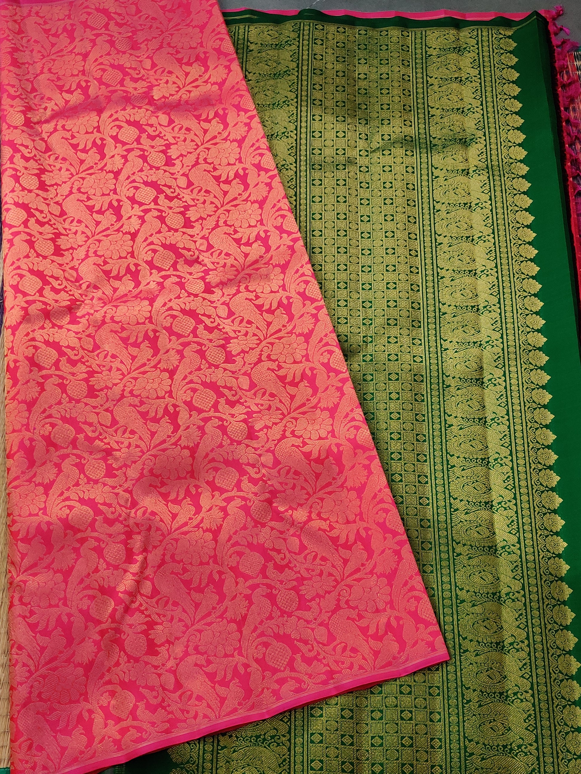 Pink Colour Kanchivaram Silk Saree With Zari Motif All Over