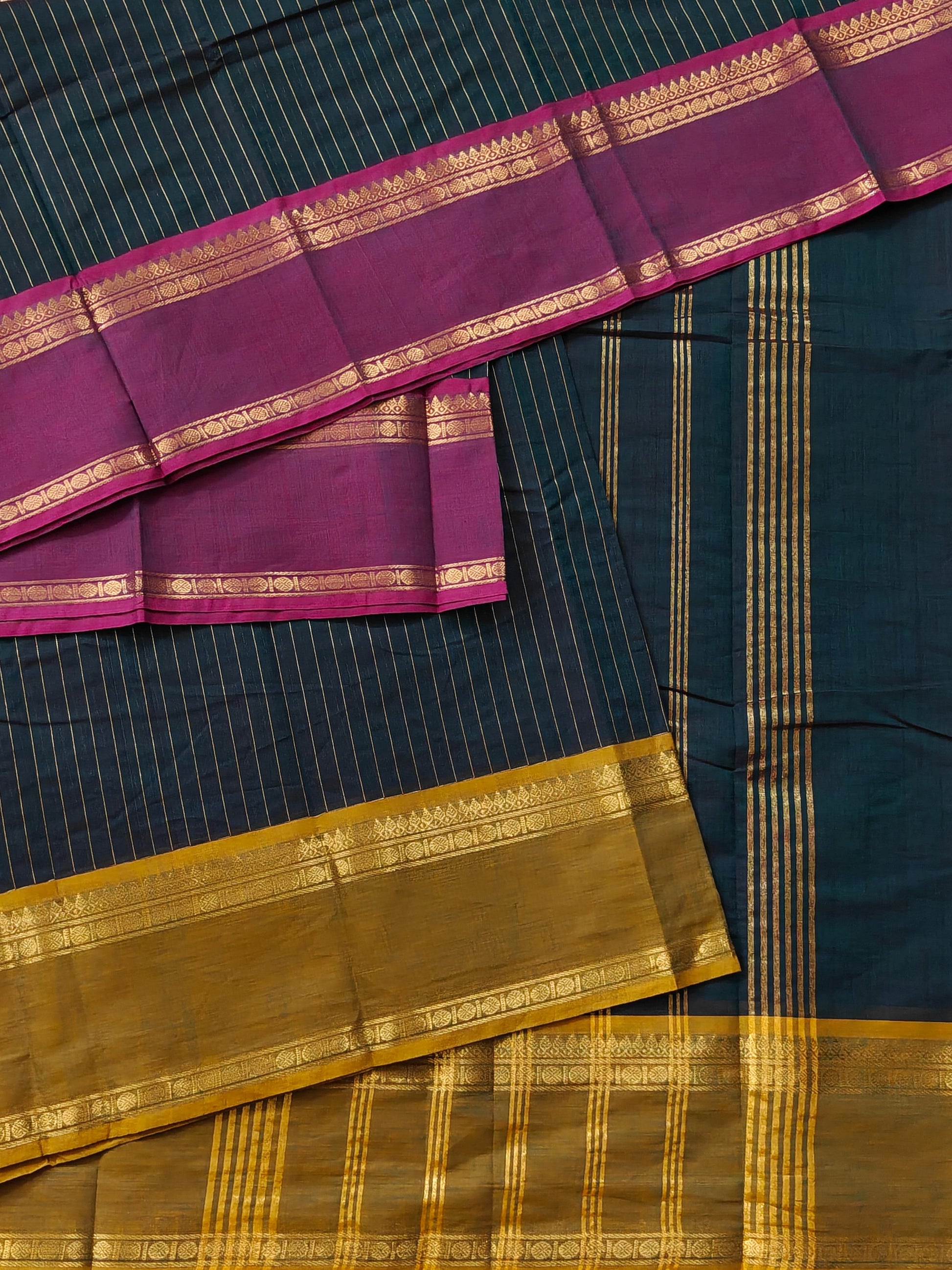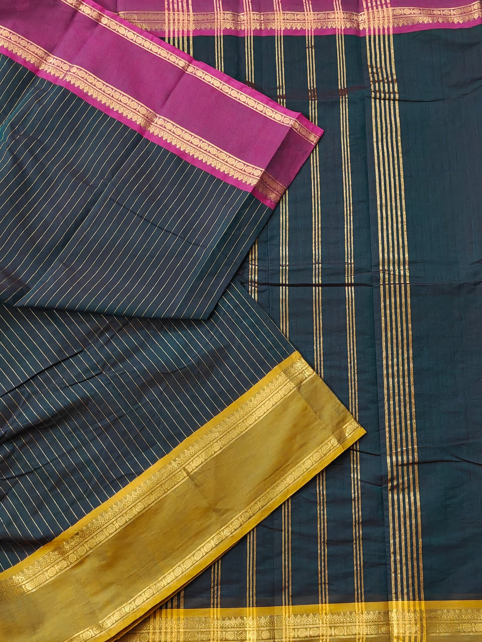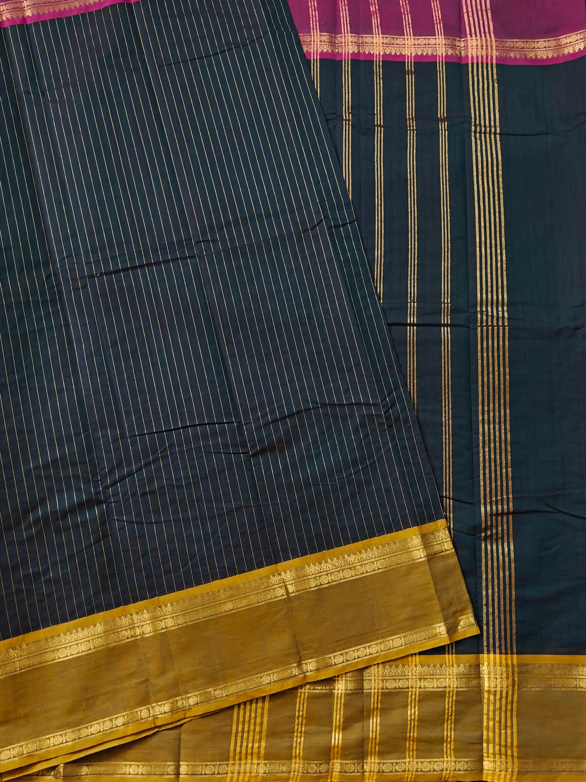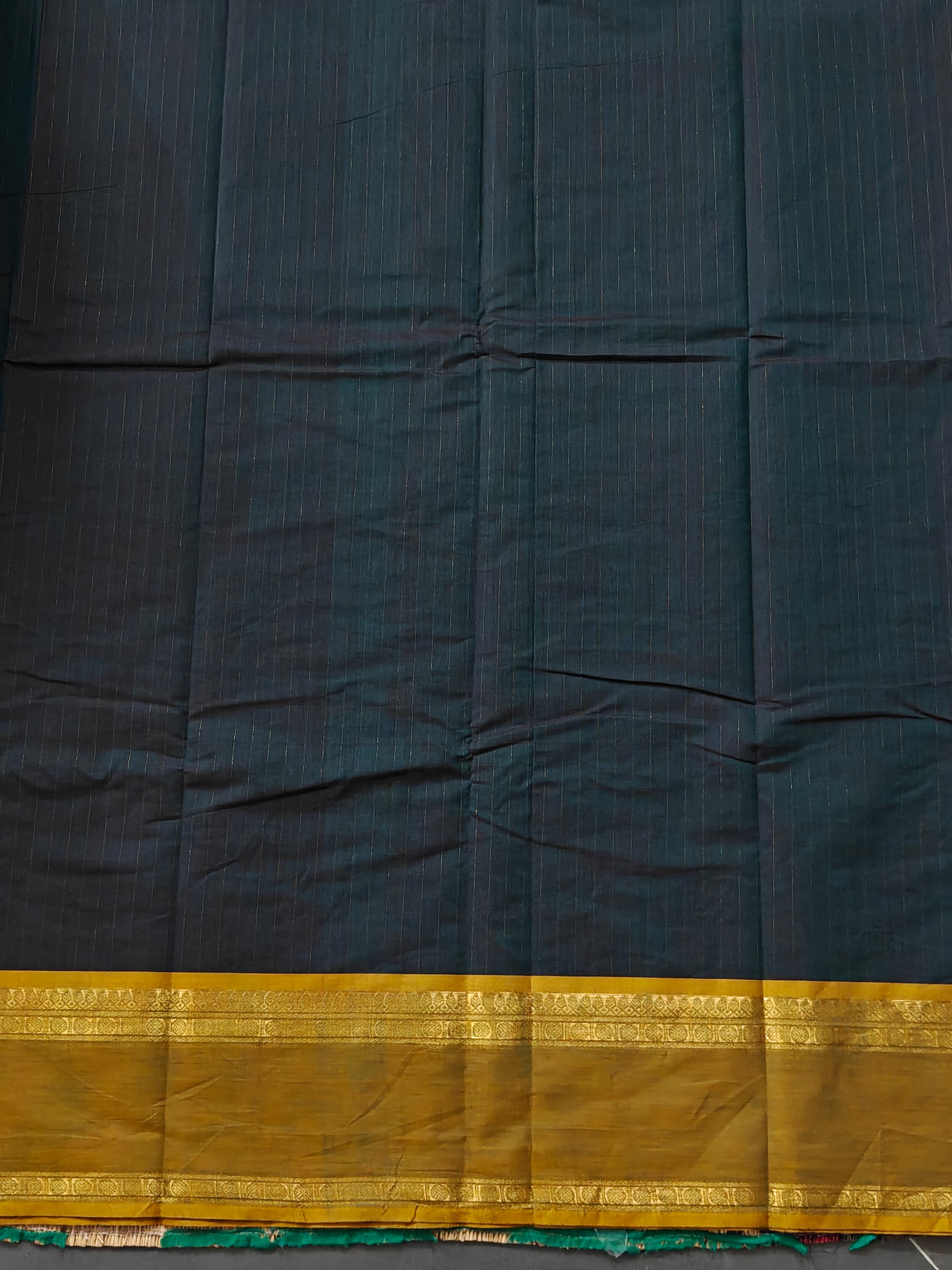 Bottle Green Colour Cotton Saree With Zari Stripes All Over Code : PC014