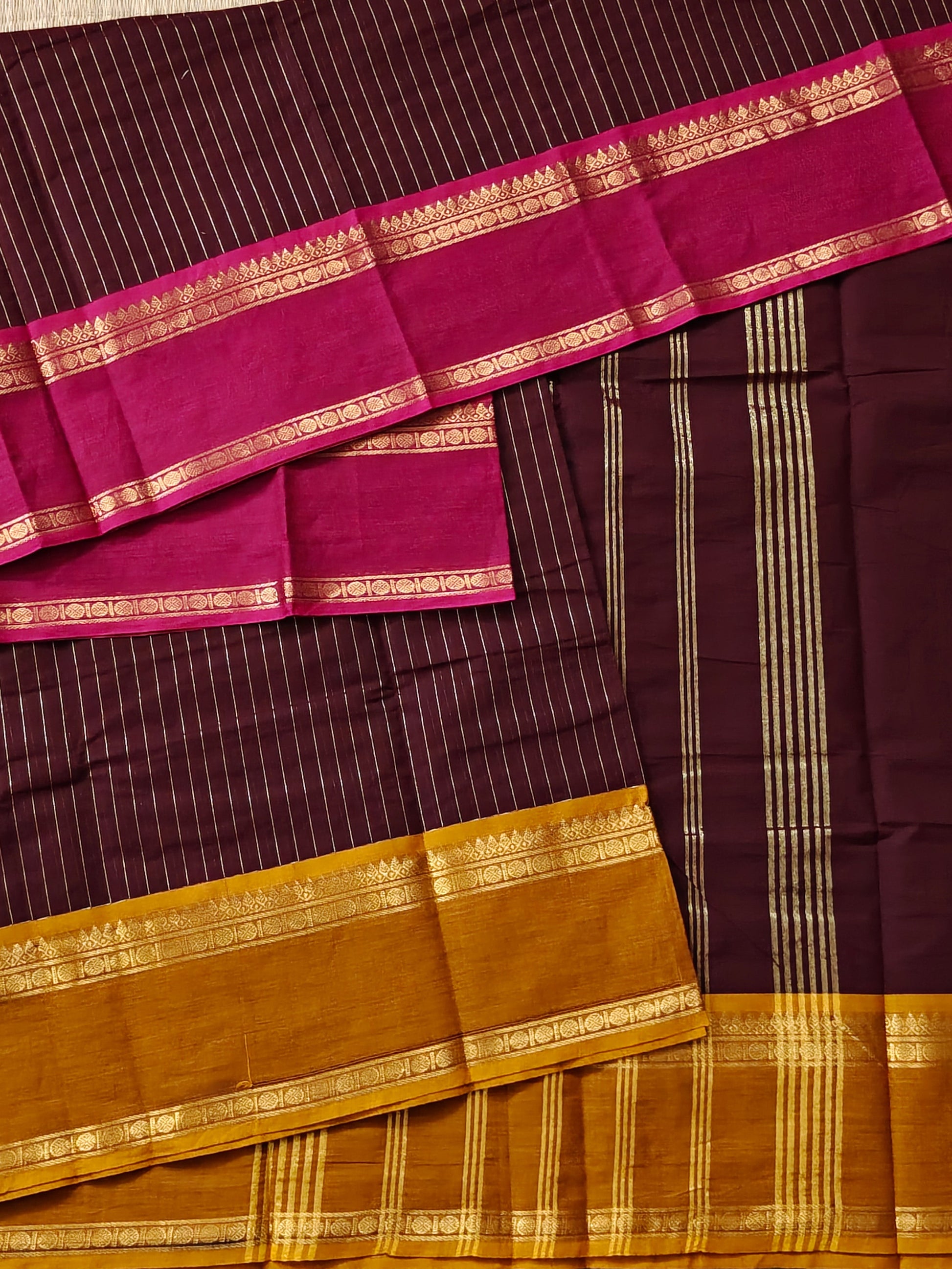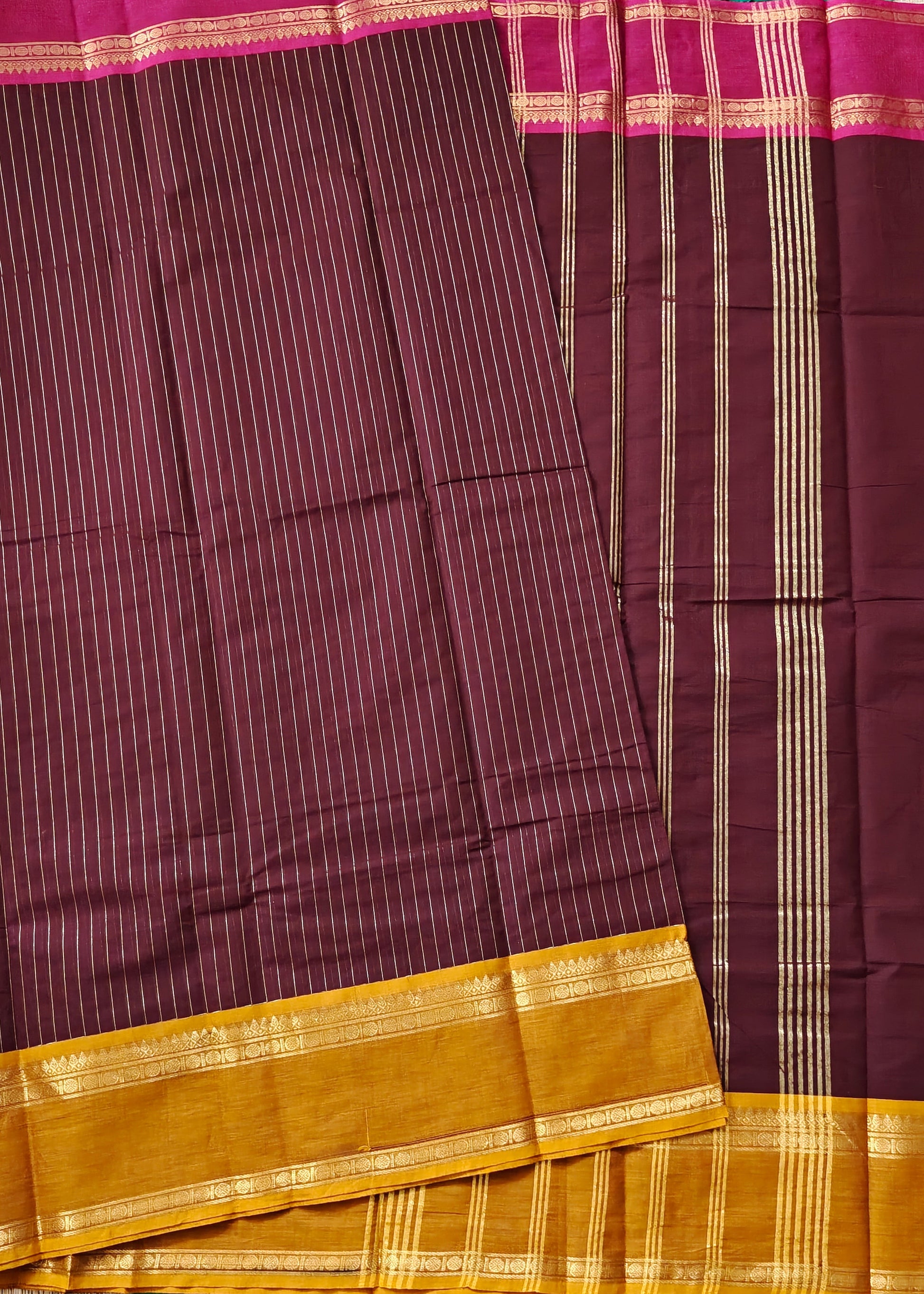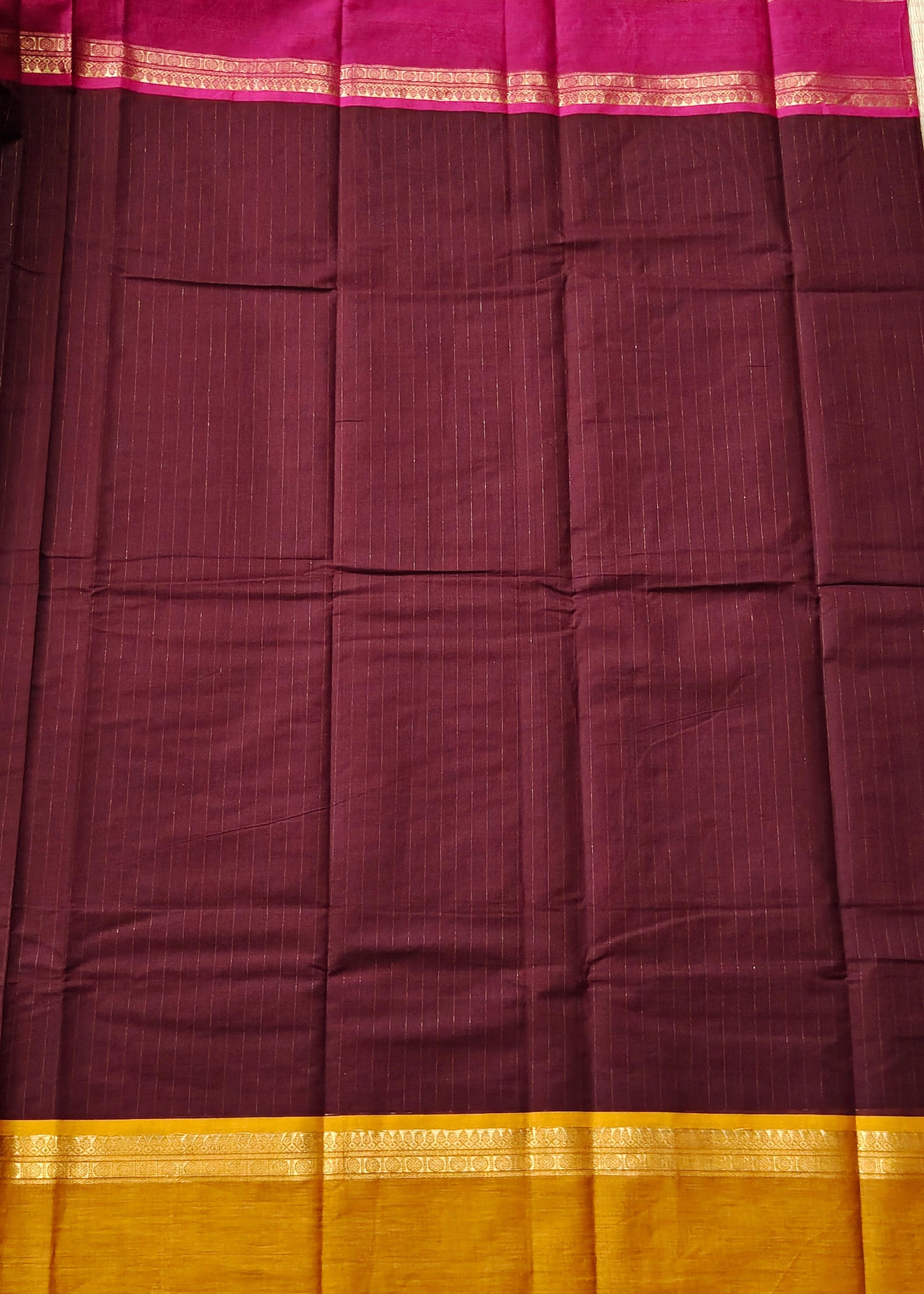 Maroon Colour Cotton Saree With Zari Stripes All Over Code : PC006