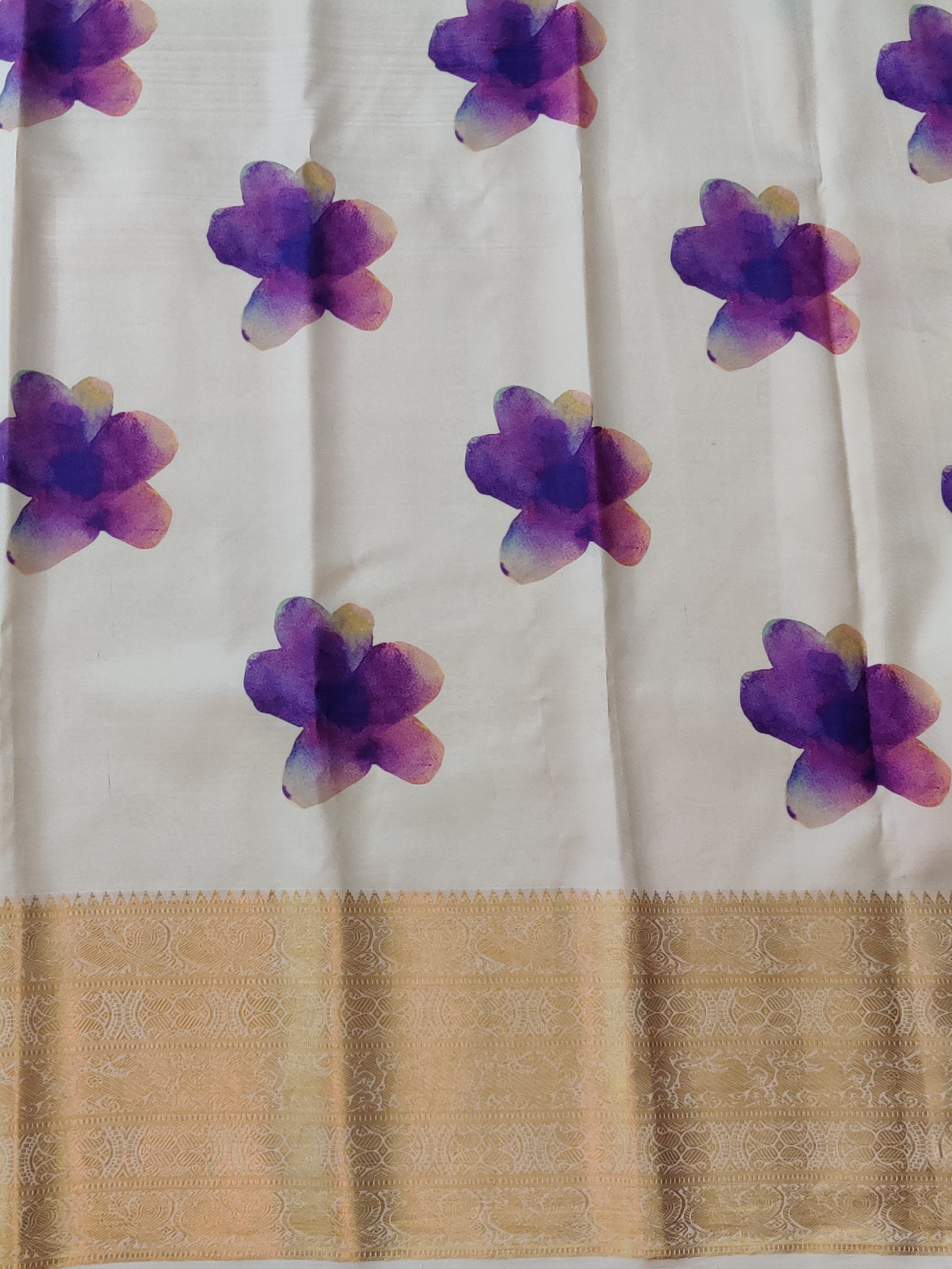 Cream Colour Kanchivaram Silk Saree With Digital Print All Over Code :  KA0294