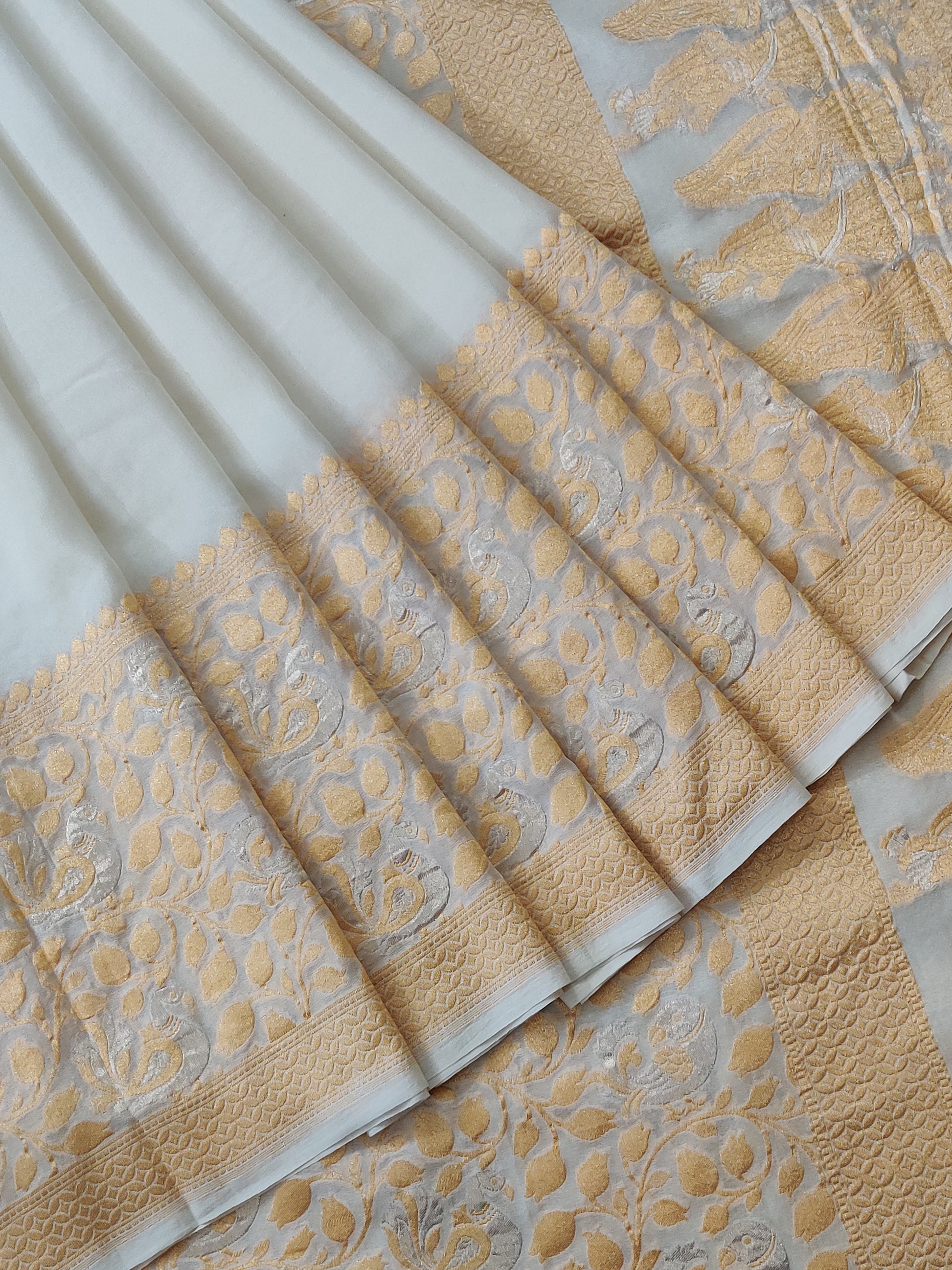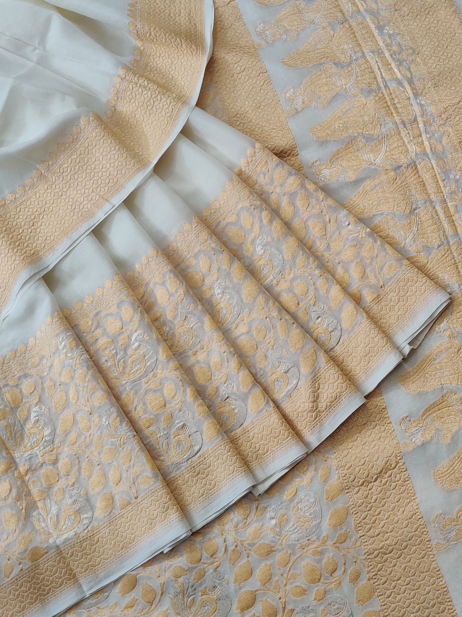 White Colour Georgette Saree With Plain Body Code : VB0416