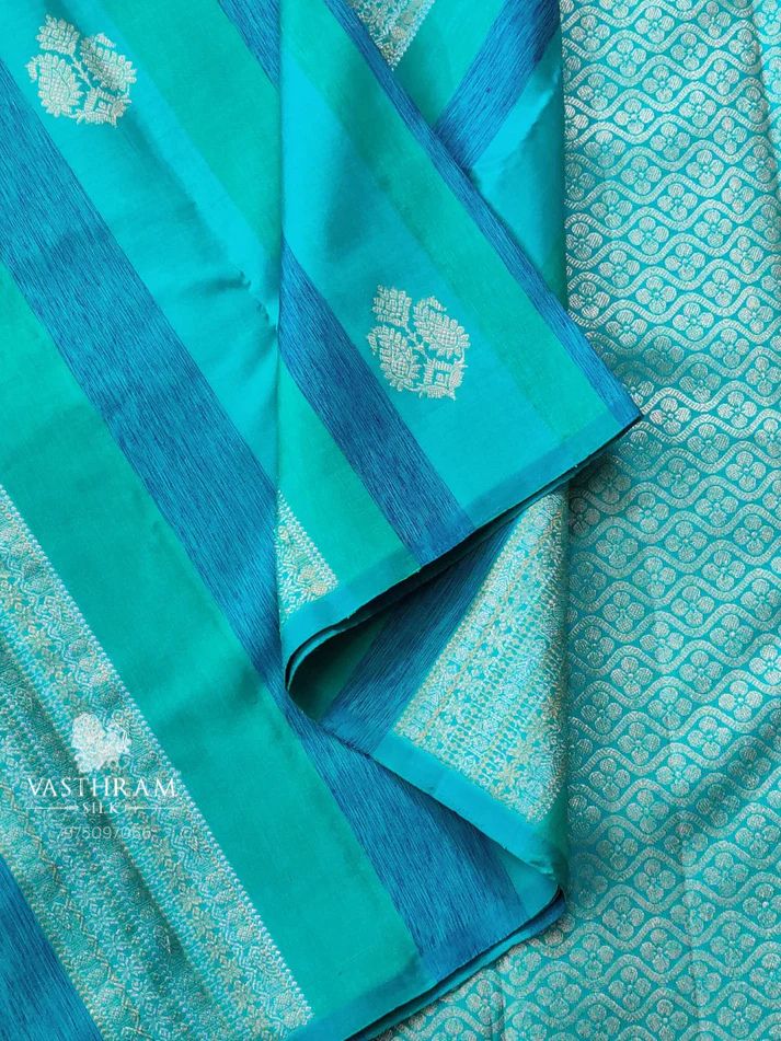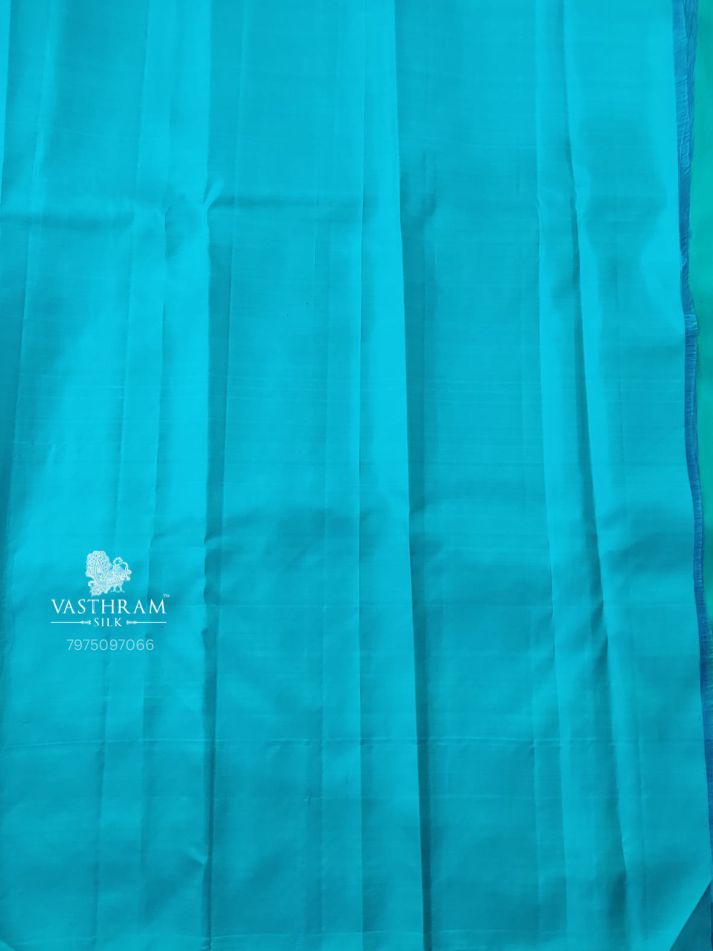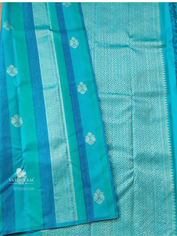 Turquoise Blue Colour Borderless Kanchivaram Silk Saree With Silver Zari Butta & Thread Woven Strips Body Code : KA0403