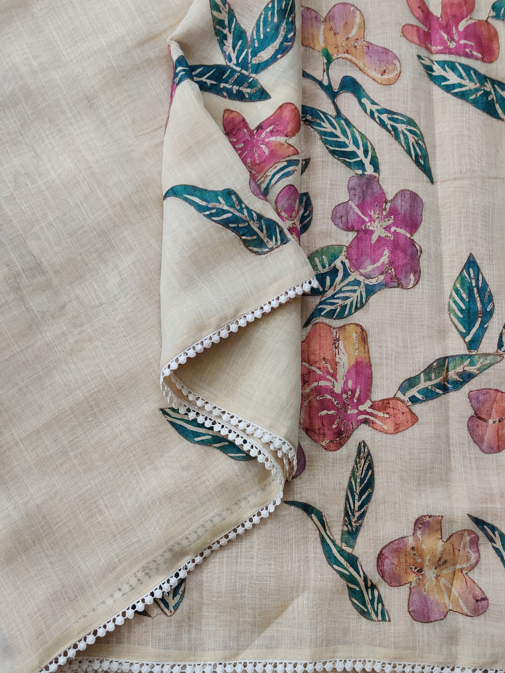 Elevate your ethnic wardrobe with this striking cream and brick linen saree, a masterpiece of traditional craftsmanship. Intricate applique work adorns the entire drape, creating a captivating visual narrative that celebrates artisanal detail. The luxurious linen fabric offers breathability and comfort, perfect for warm climates and extended wear. Paired with a contrasting brick-colored blouse, this ensemble delivers a sophisticated color palette that flatters diverse skin tones. Ideal for festive occasions, cultural celebrations, or refined everyday elegance, this saree combines timeless design with contemporary sensibility. The applique detailing showcases meticulous handiwork, making each piece a wearable work of art.