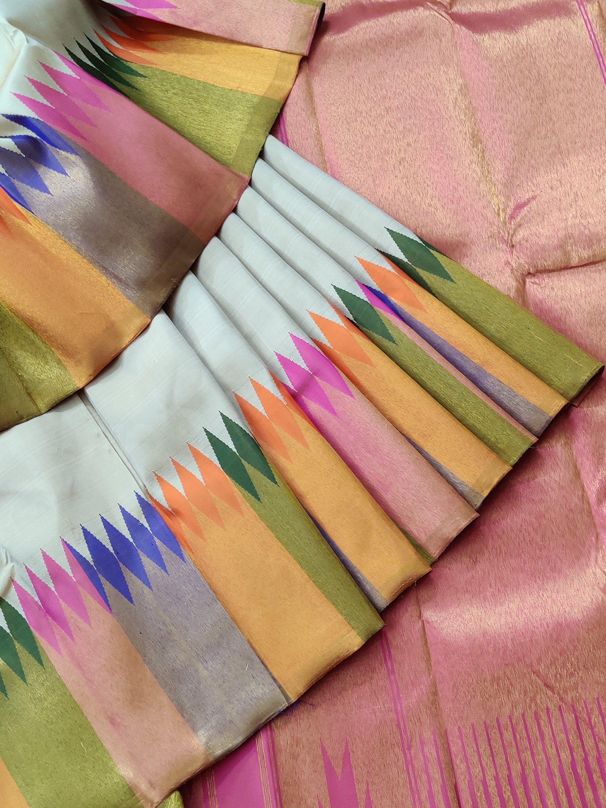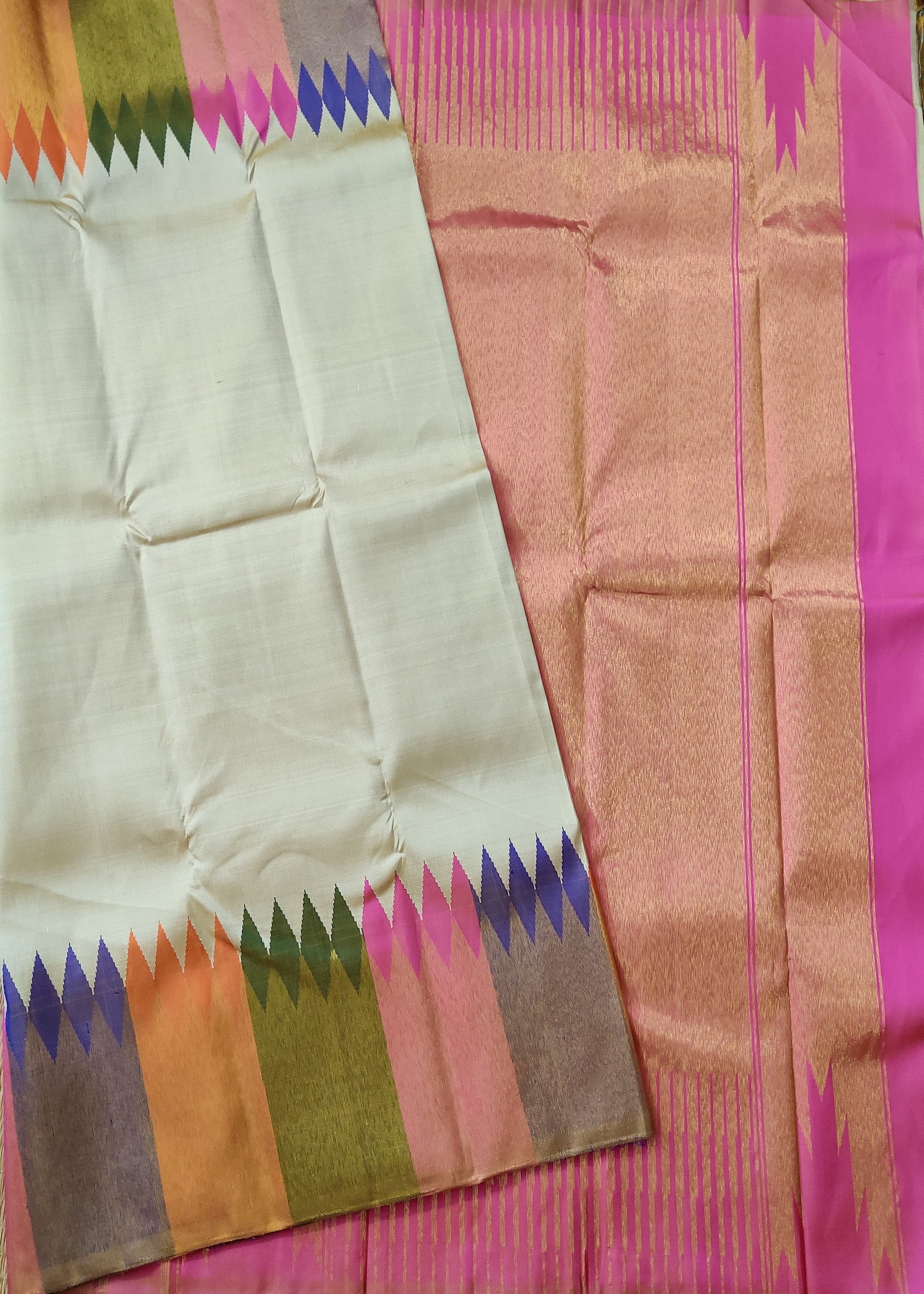Cream Colour Kanchivaram Silk Saree With Plain Body Code :KA0296