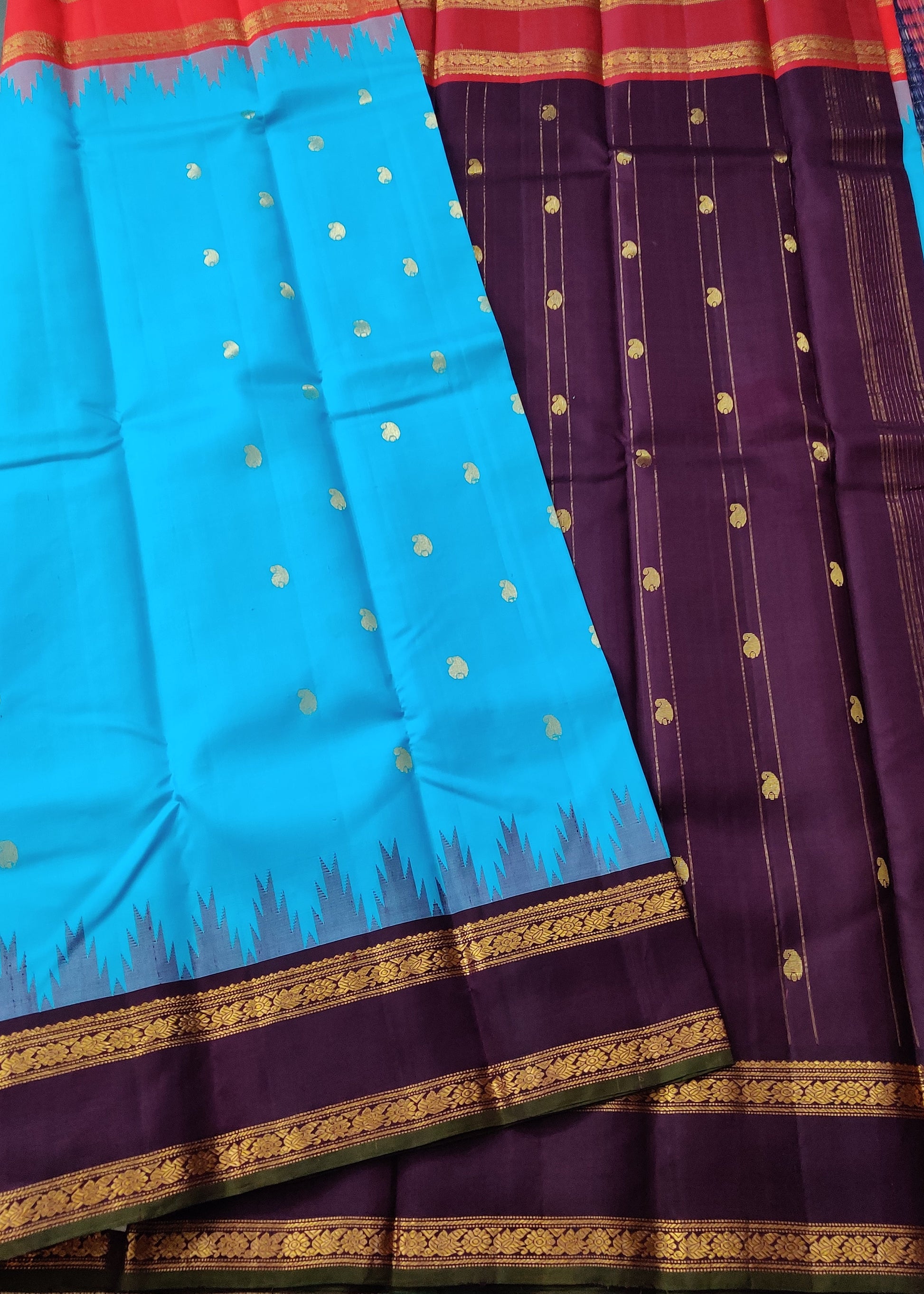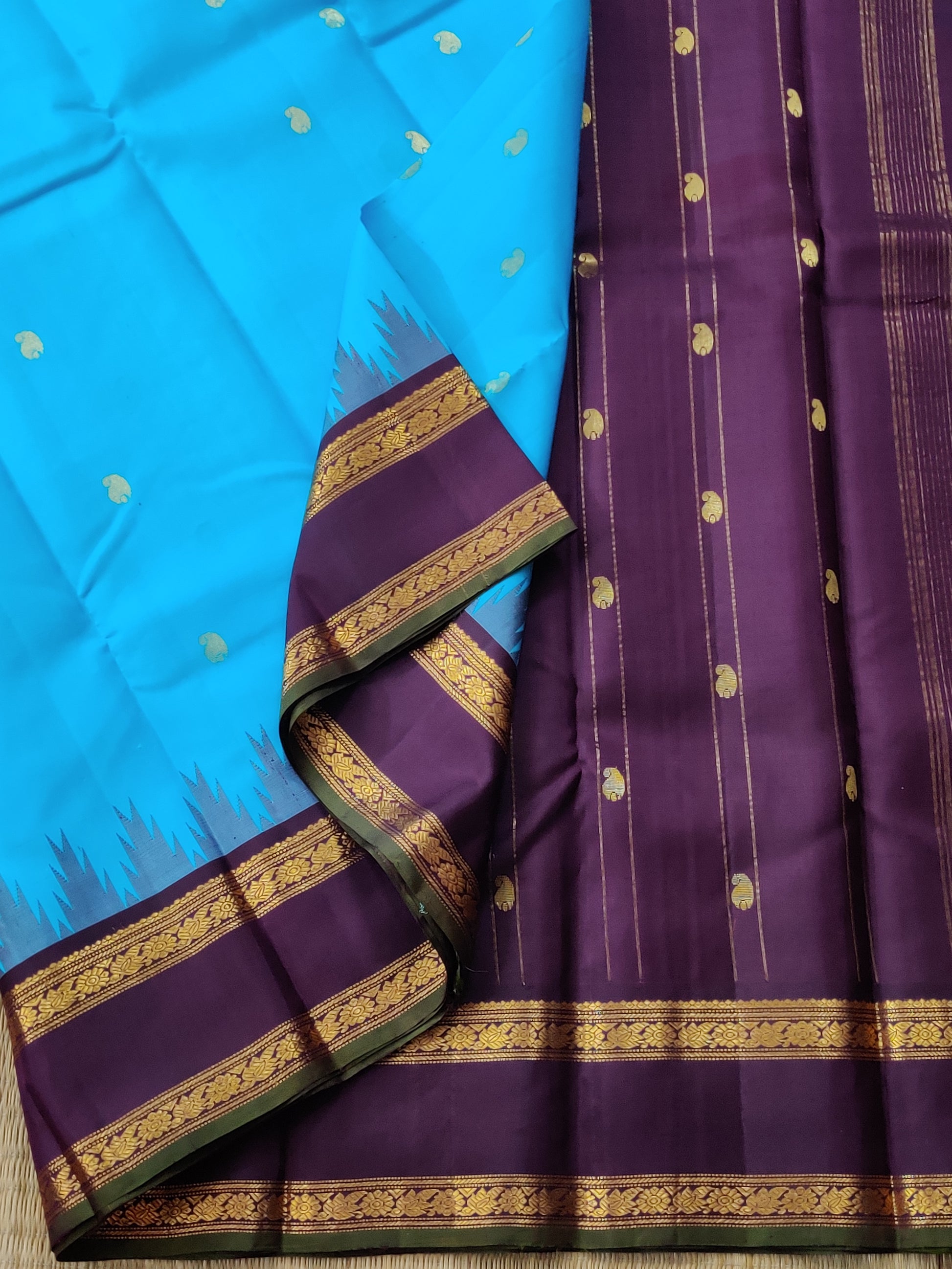Sky Blue Colour Kanchivaram Silk Saree With Zari Butta All Over Code : KA0299