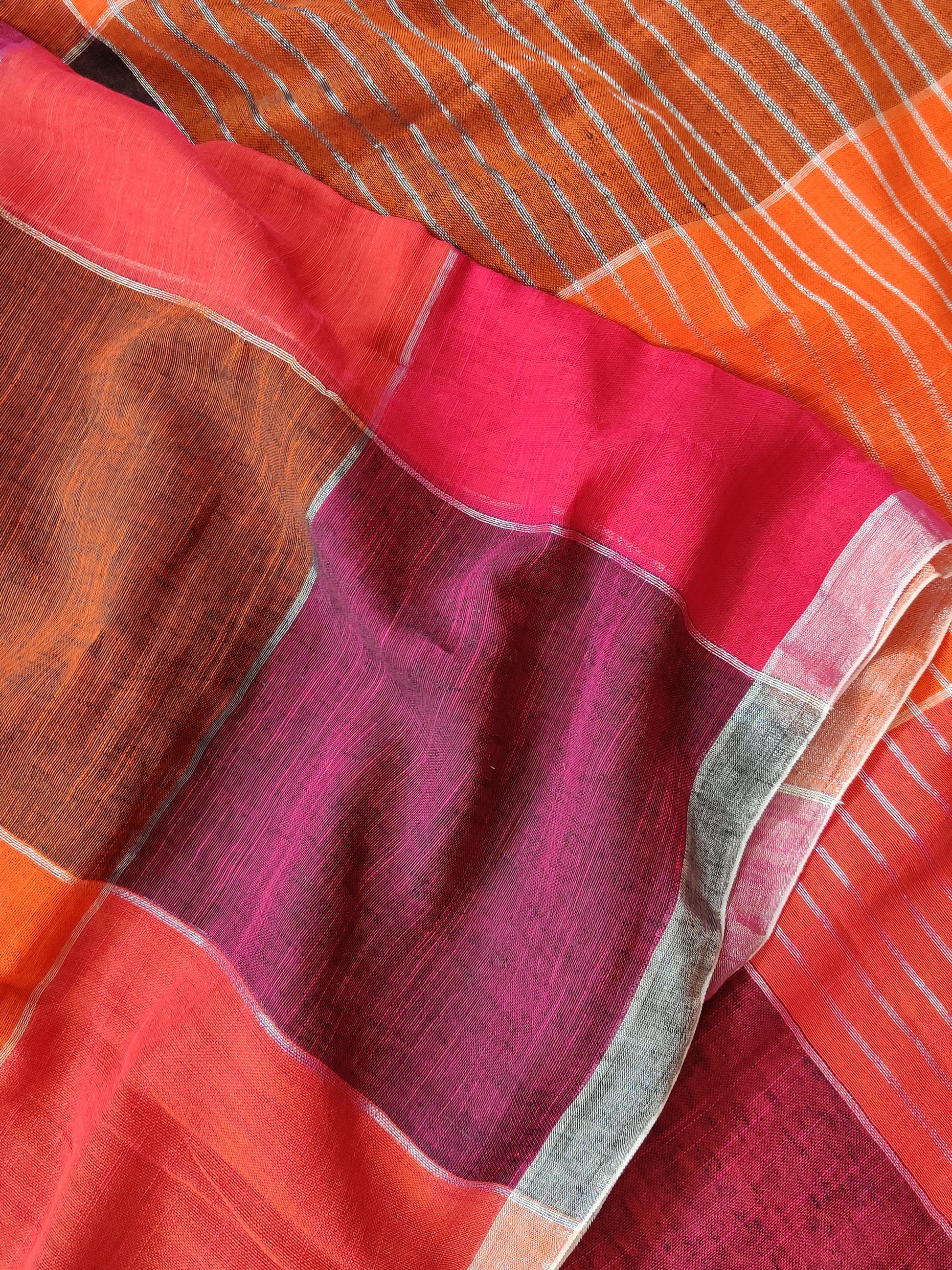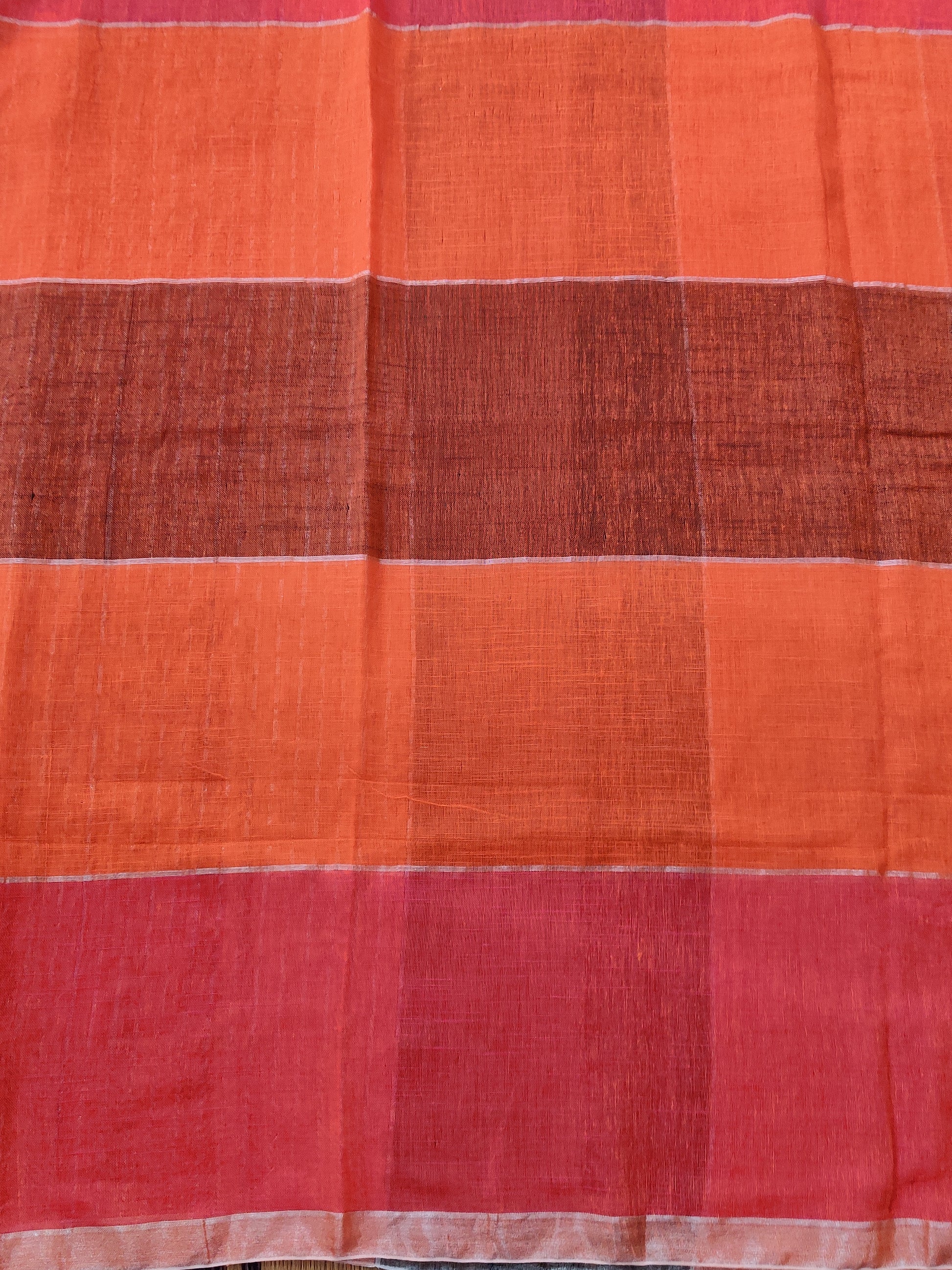 Orange Colour Linen Saree With Plain Body Code : VB0410