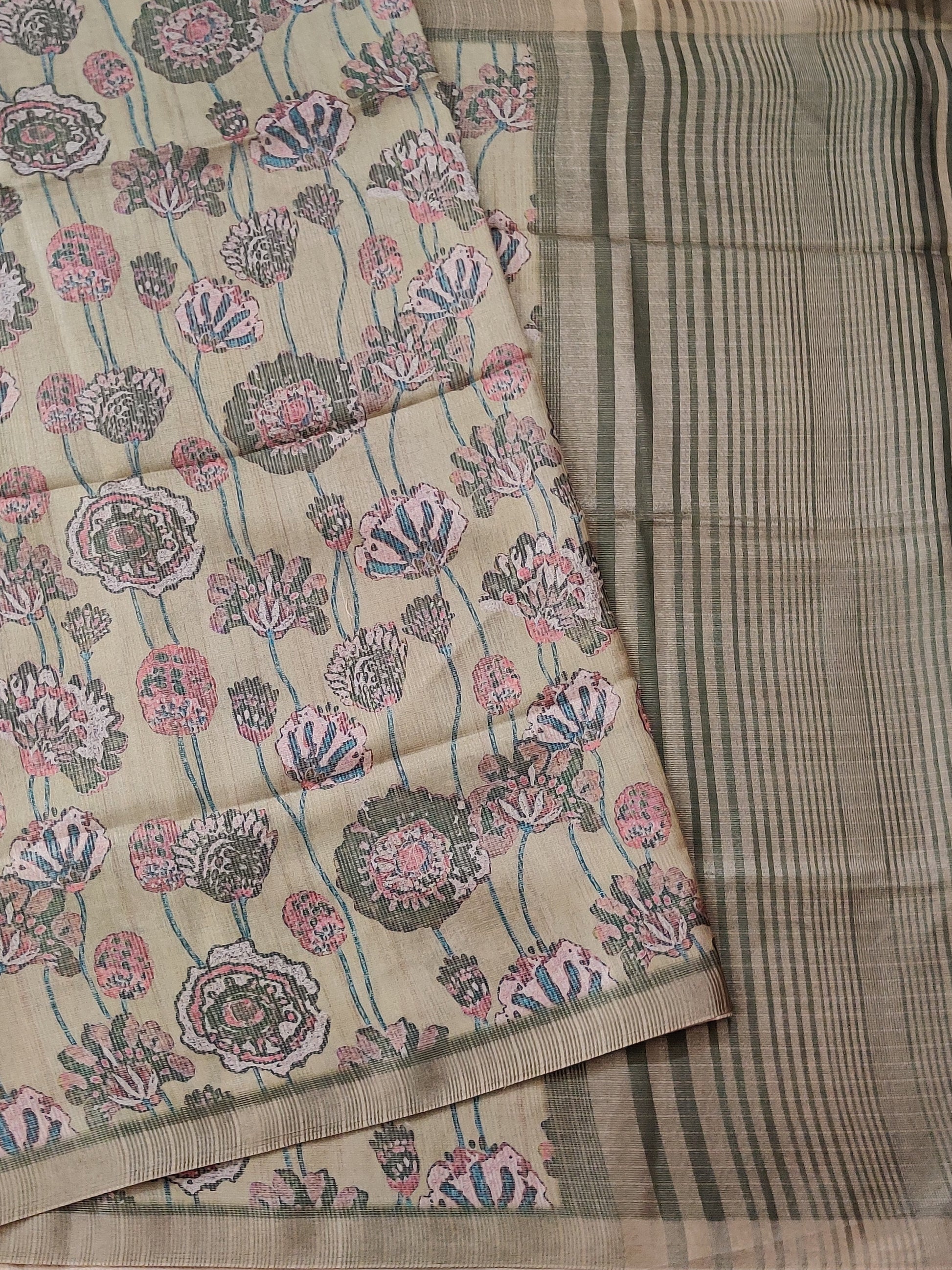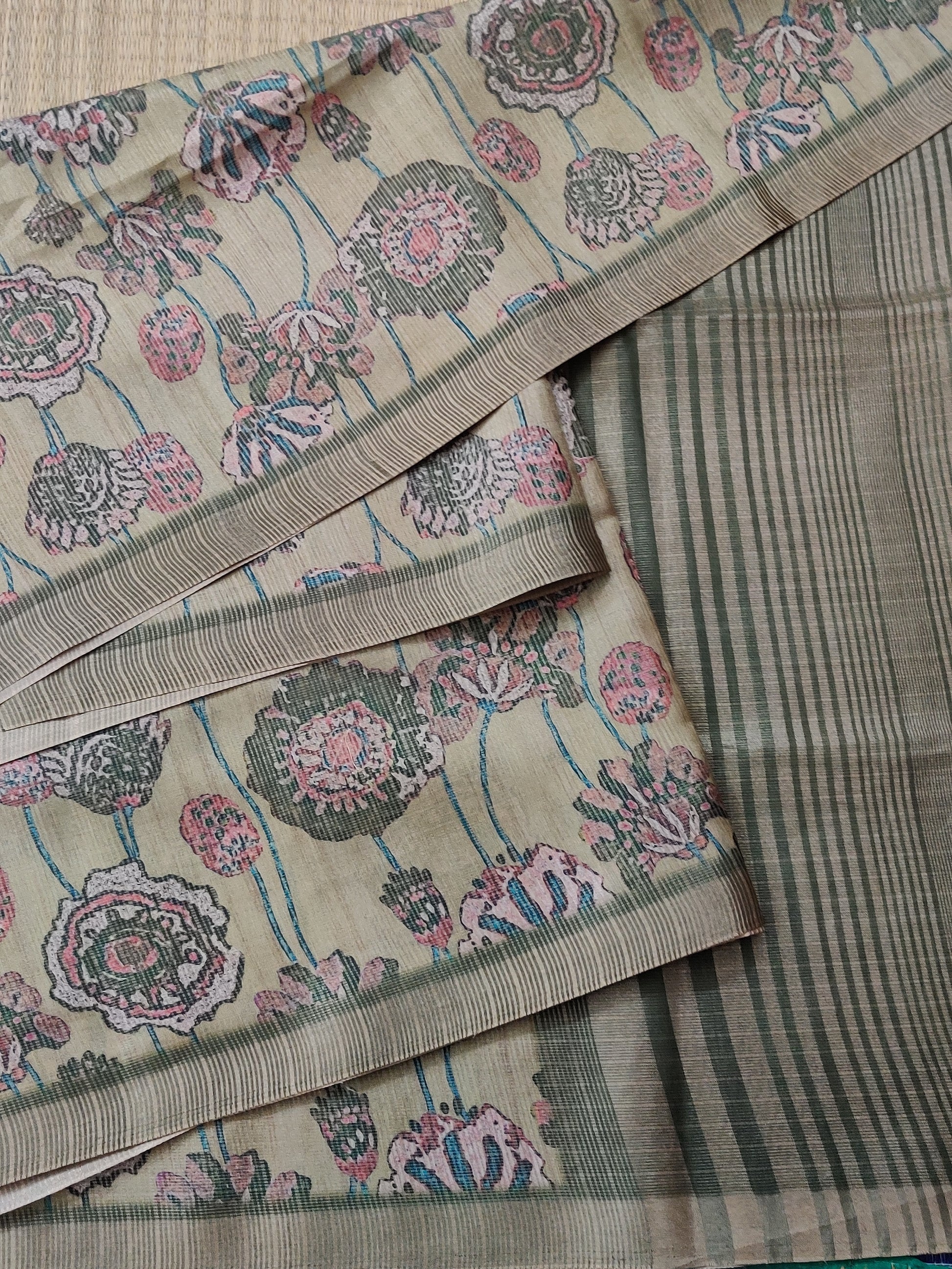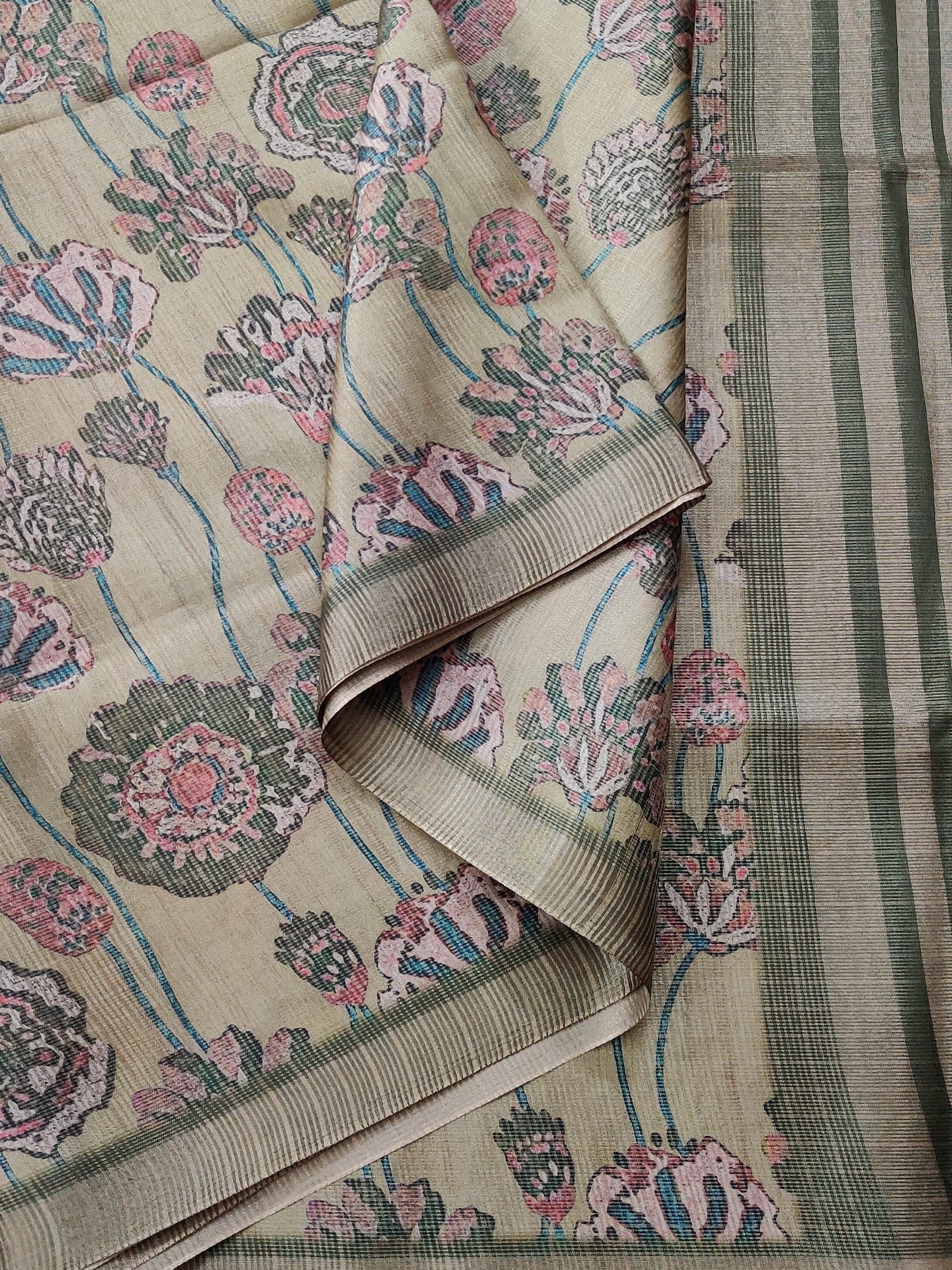 Discover timeless elegance with this mehandi green semi-banarasi saree, where traditional artistry meets modern sensibility. The digitally printed body features intricate motifs that dance across the fabric, while ornate zari borders and an elaborate zari pallu elevate its sophistication. Crafted for discerning wearers, this saree delivers the luxurious appeal of banarasi weaving with contemporary design elements. The included printed blouse provides styling flexibility for weddings, festivals, and formal occasions. Experience the perfect marriage of comfort and refined aesthetics—a versatile investment piece that honors heritage while embracing contemporary fashion.