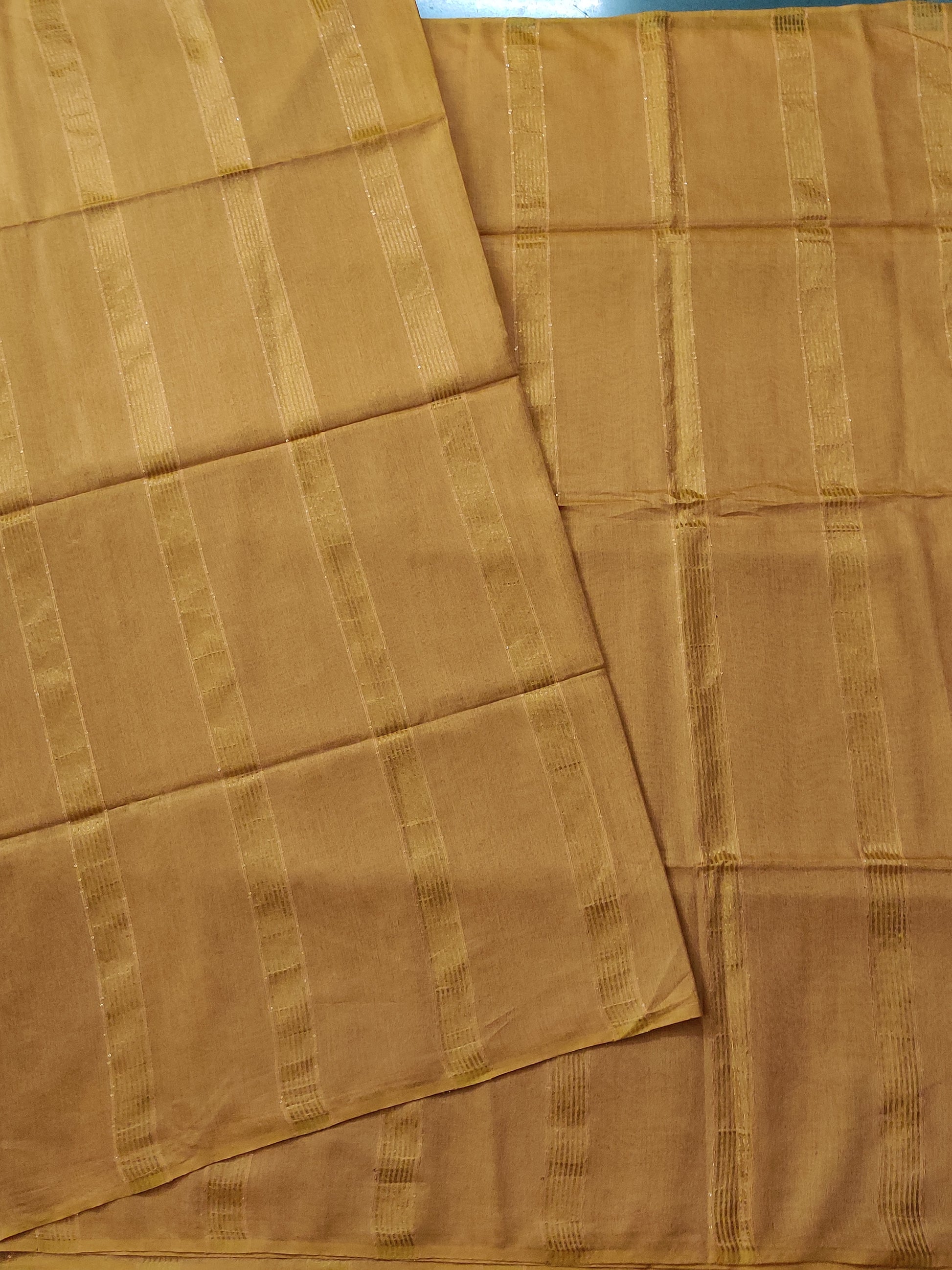 Mustard Colour Semi Banarasi Saree With Zari & Sequin  Stripes All Over Code : VB0326