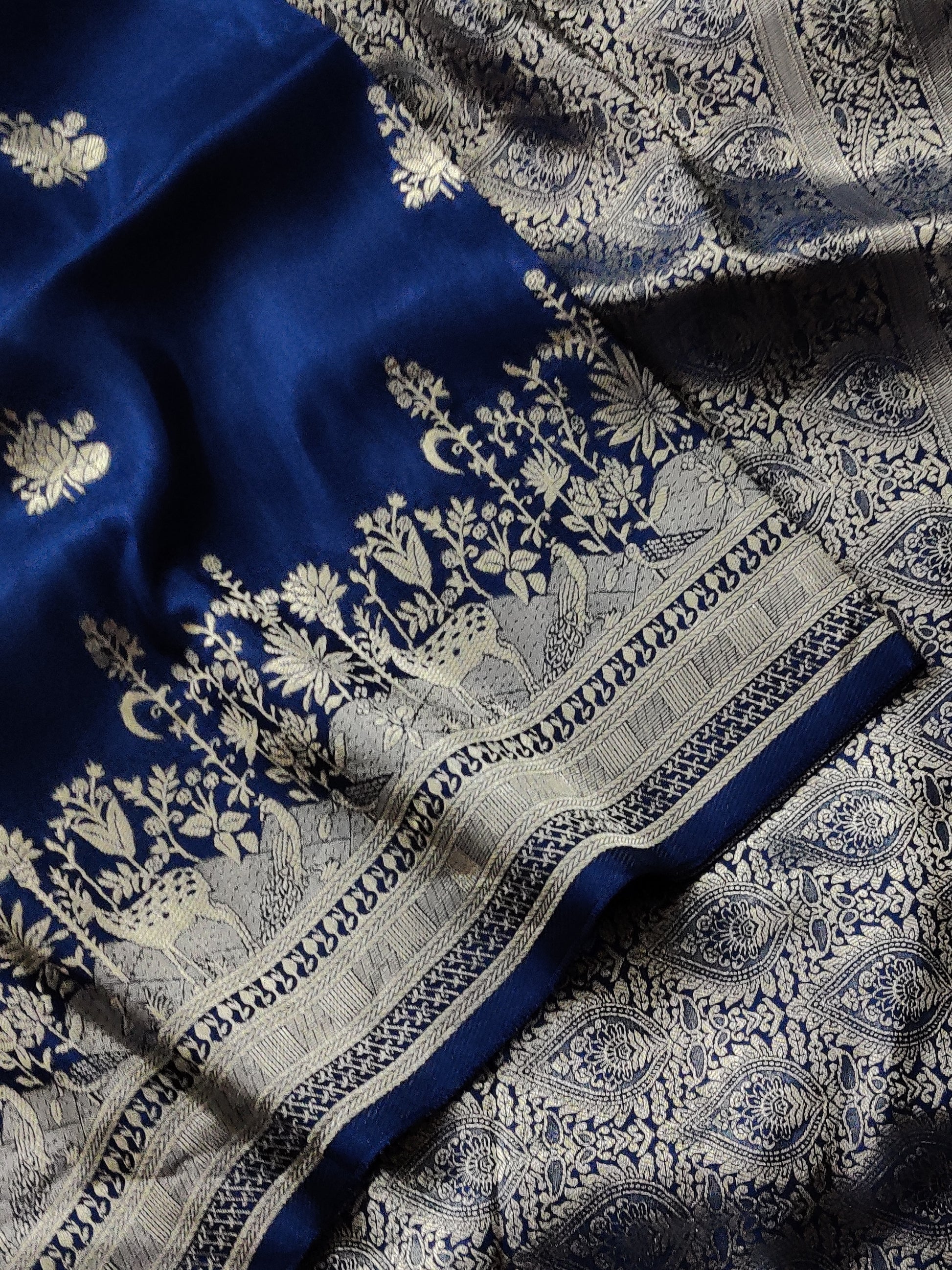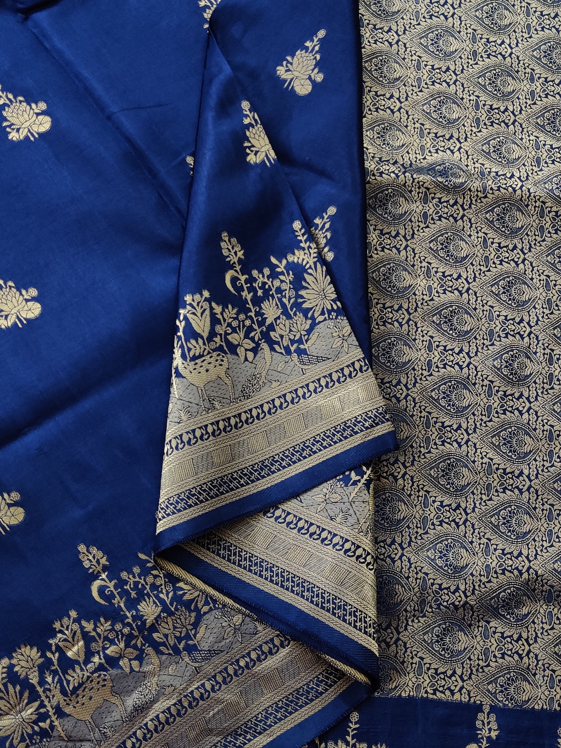 Navy Blue Colour Semi Mashru Saree With Floral Zari Butta All Over Code : VB0380