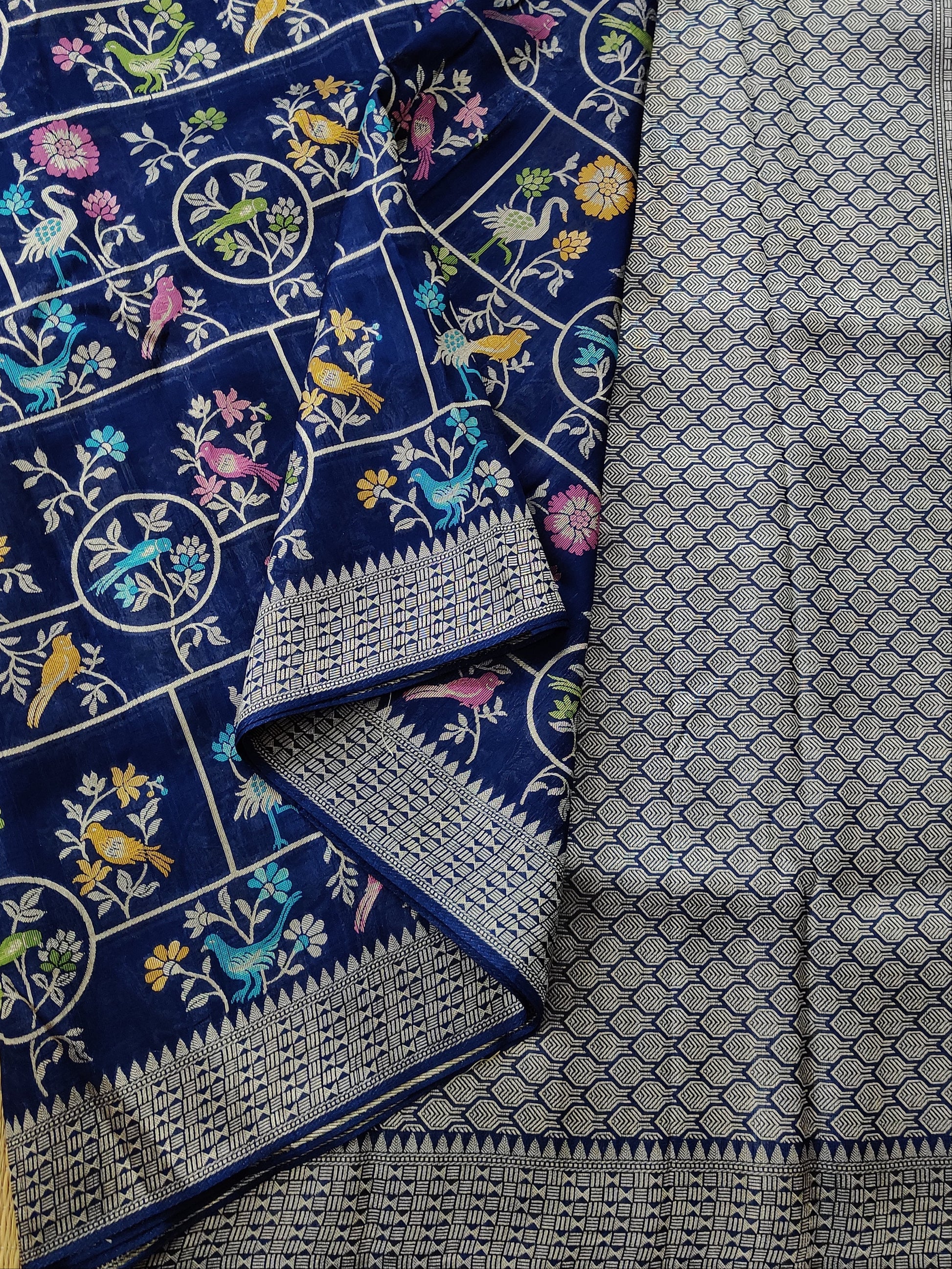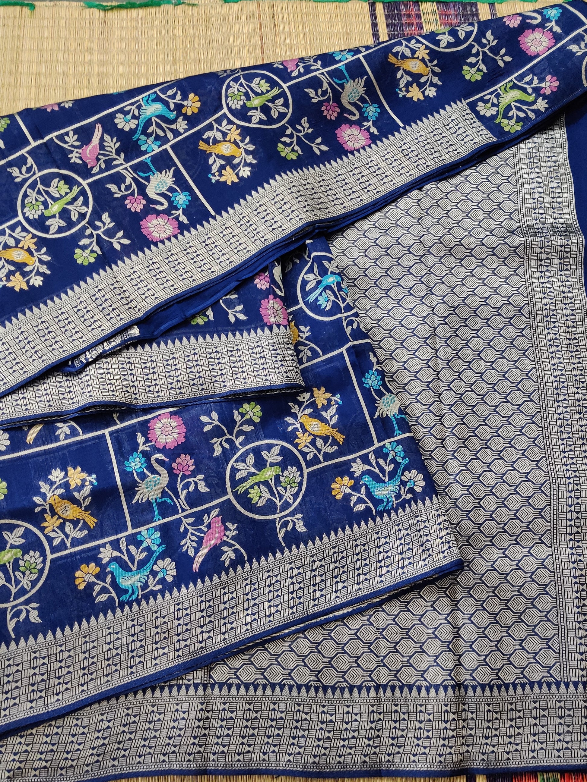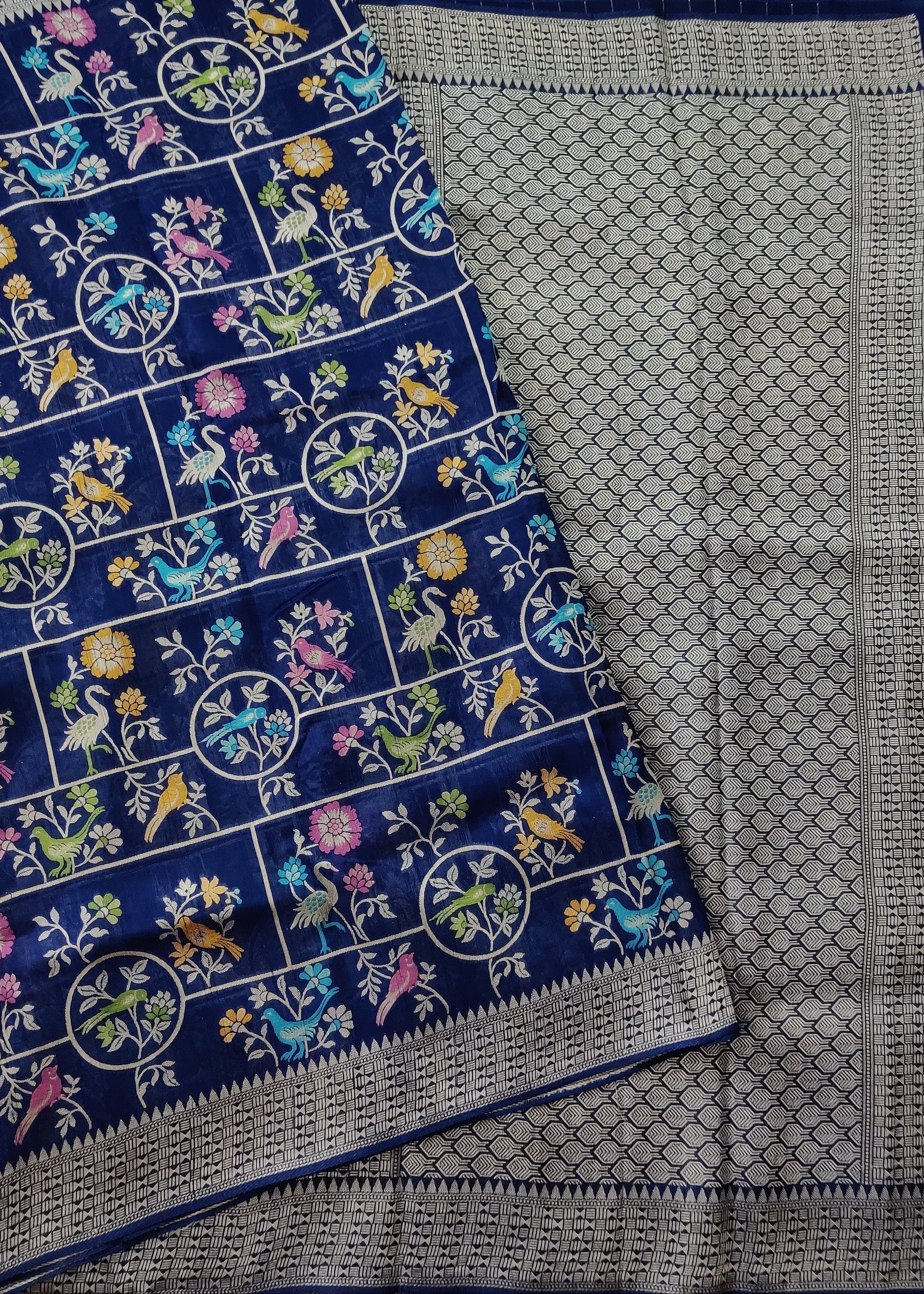 Blue Colour Semi Tussar Georgette Saree With Thread Woven Meenakari Body Code : VB0197