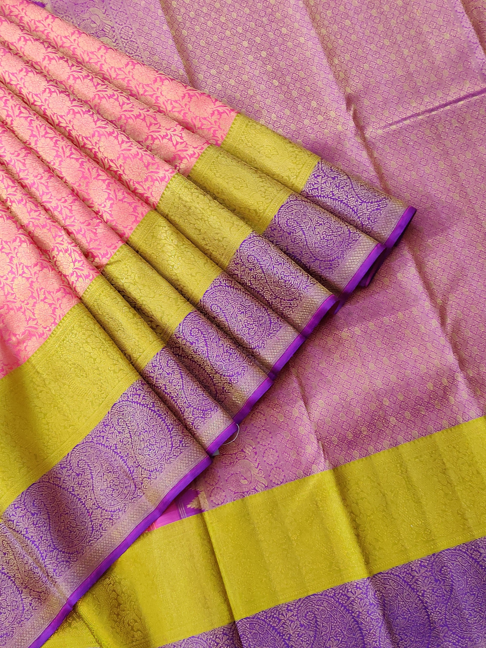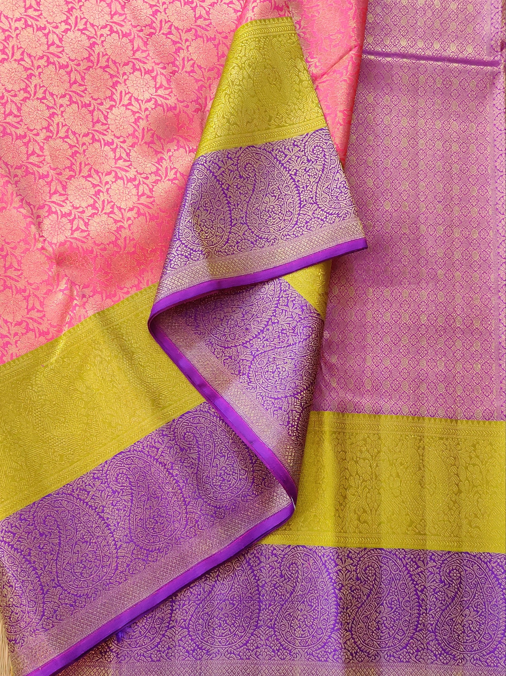 Pink Colour Kanchivaram Silk Saree With Zari Brocade All Over Code : KA0297