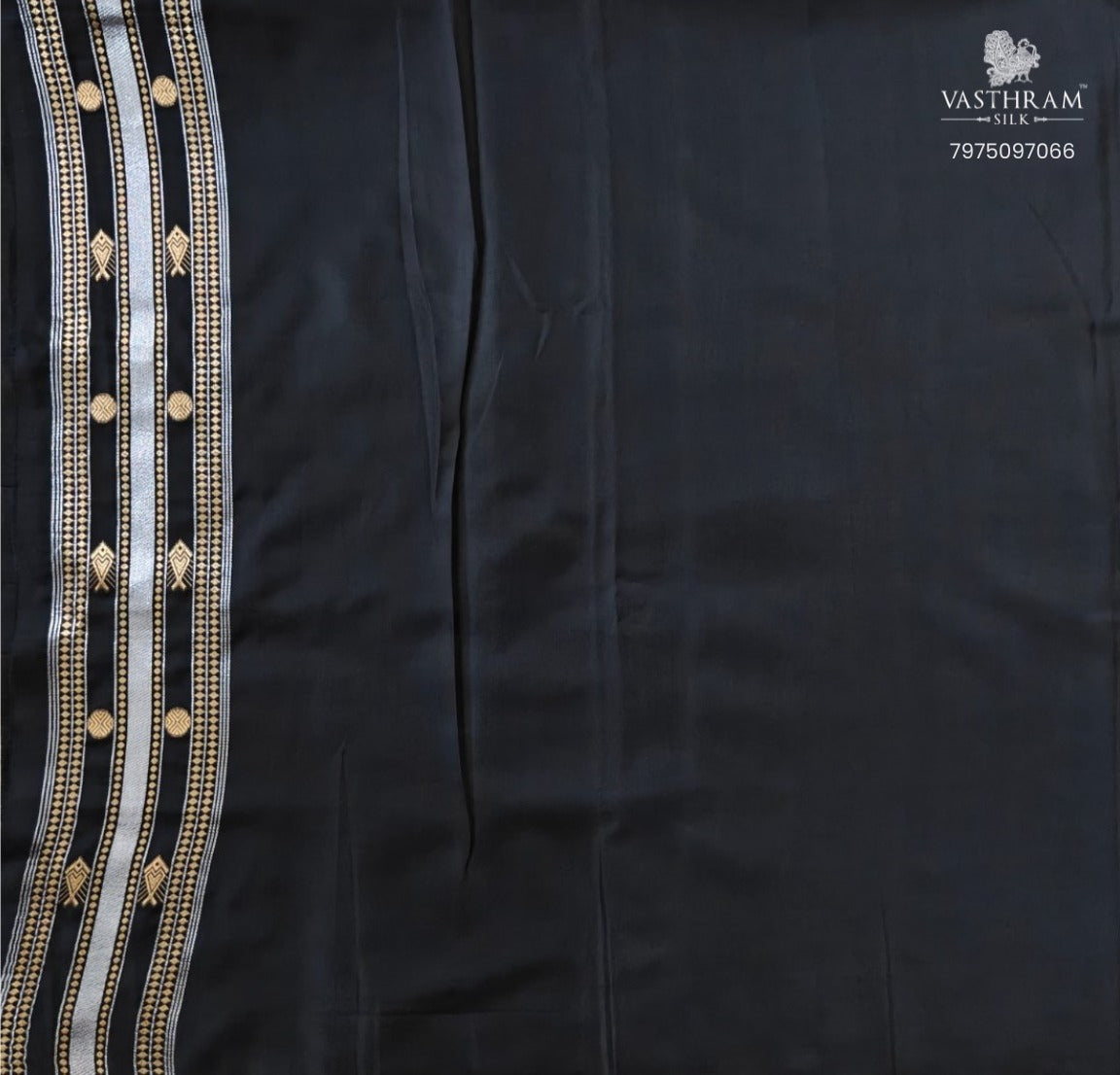 Black Colour Semi Katan Banarasi Saree With Partly Code : VB0478
