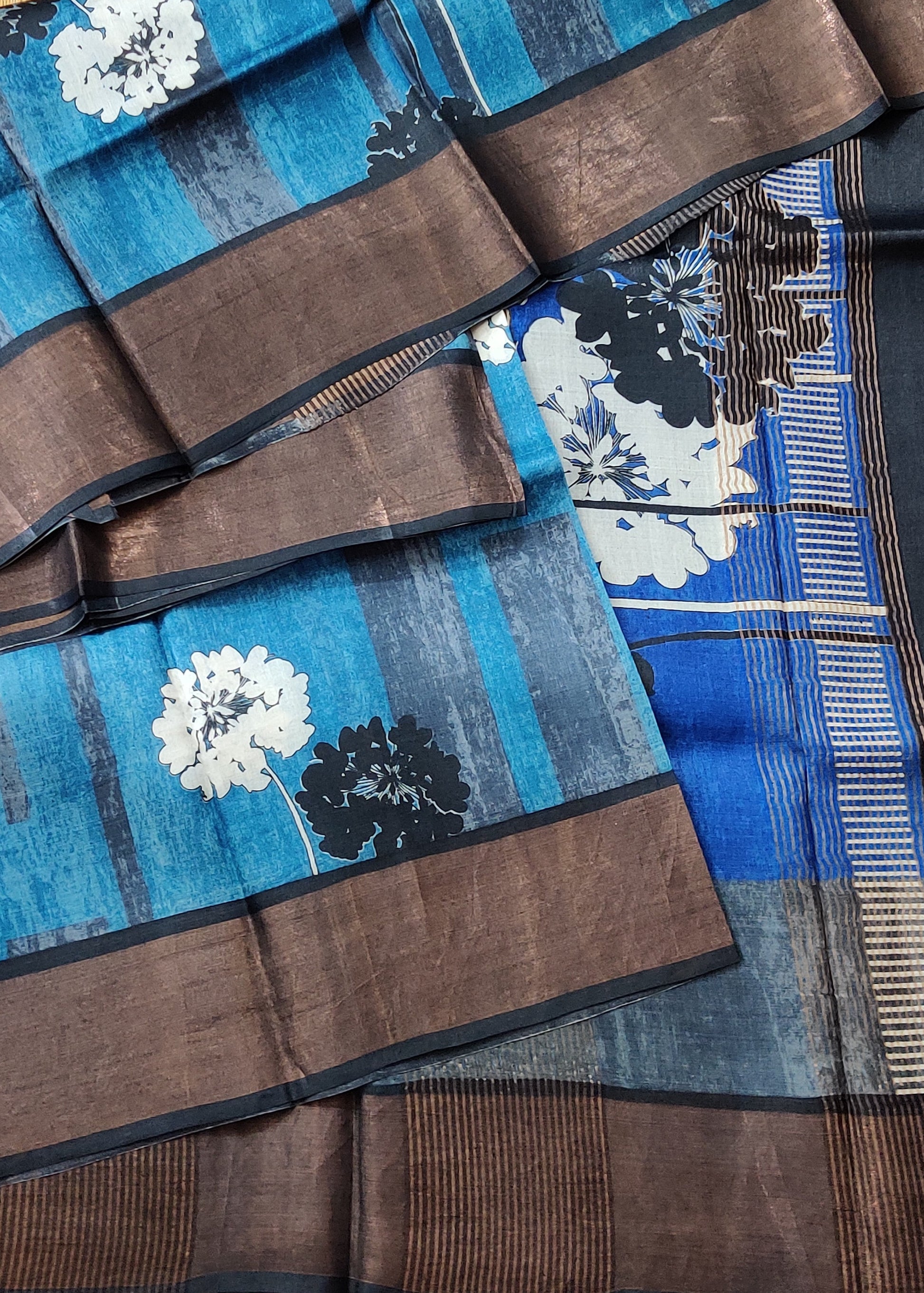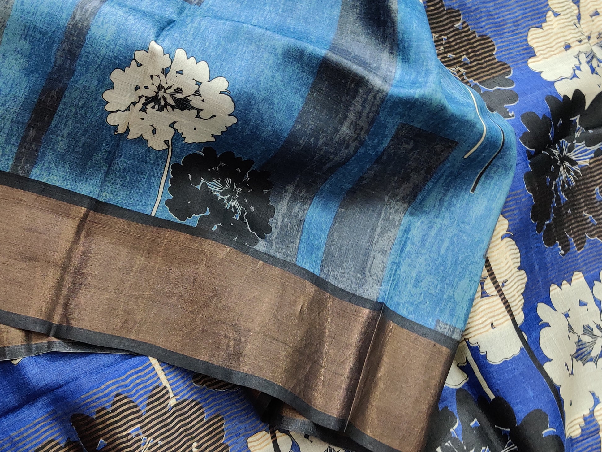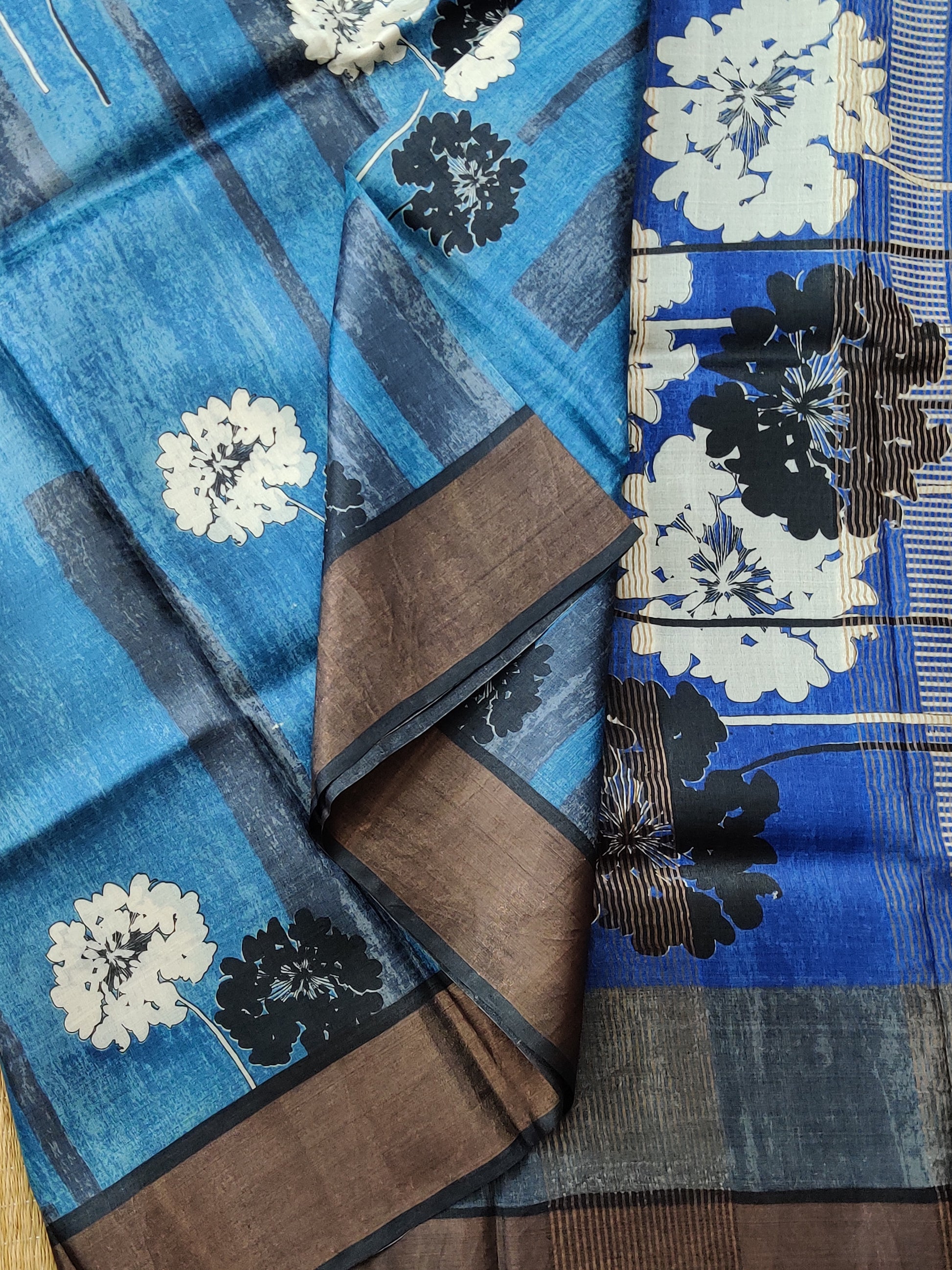 Blue Colour Tussar Silk Saree With Screen Print All Over Code : VB0371