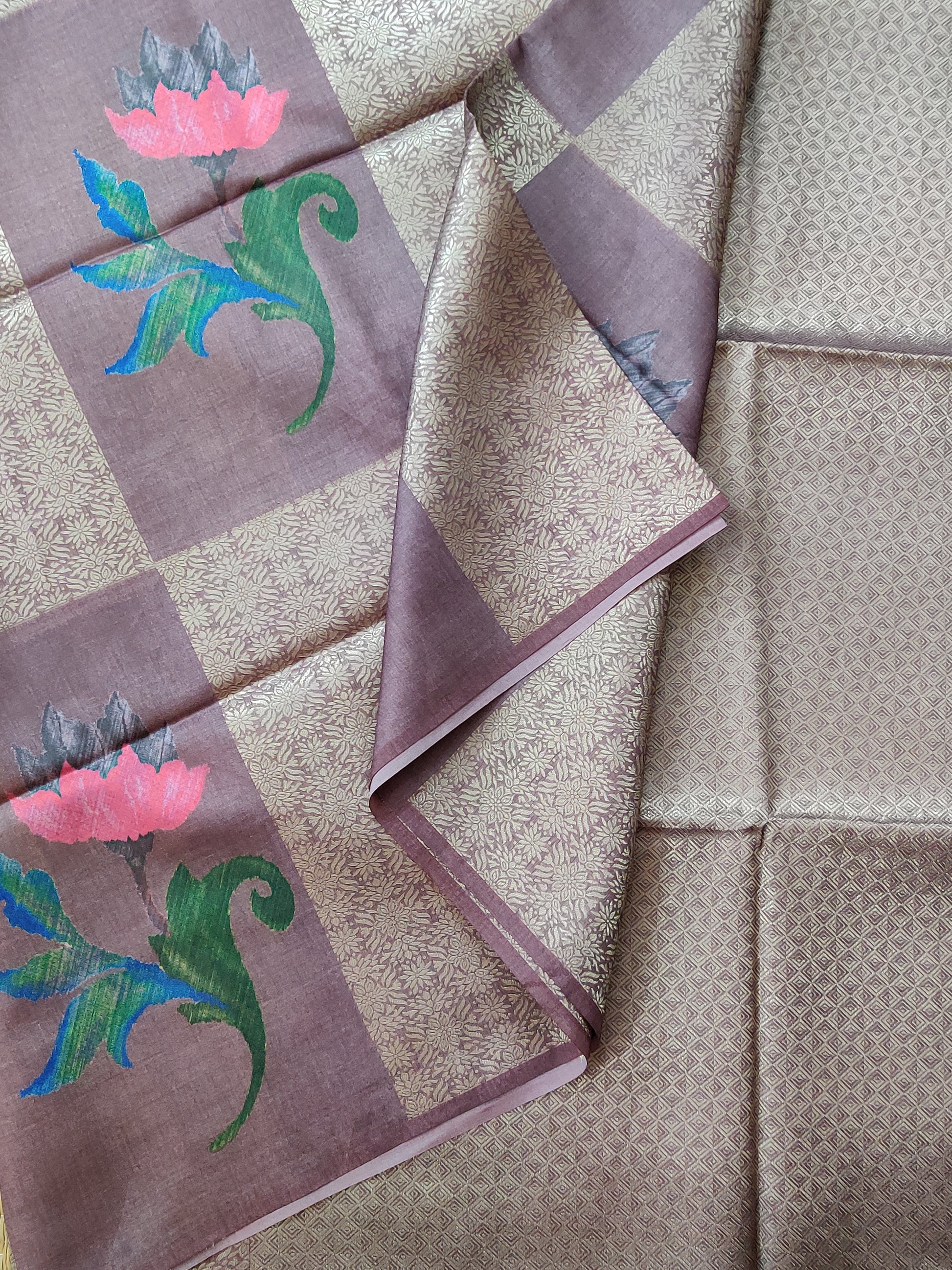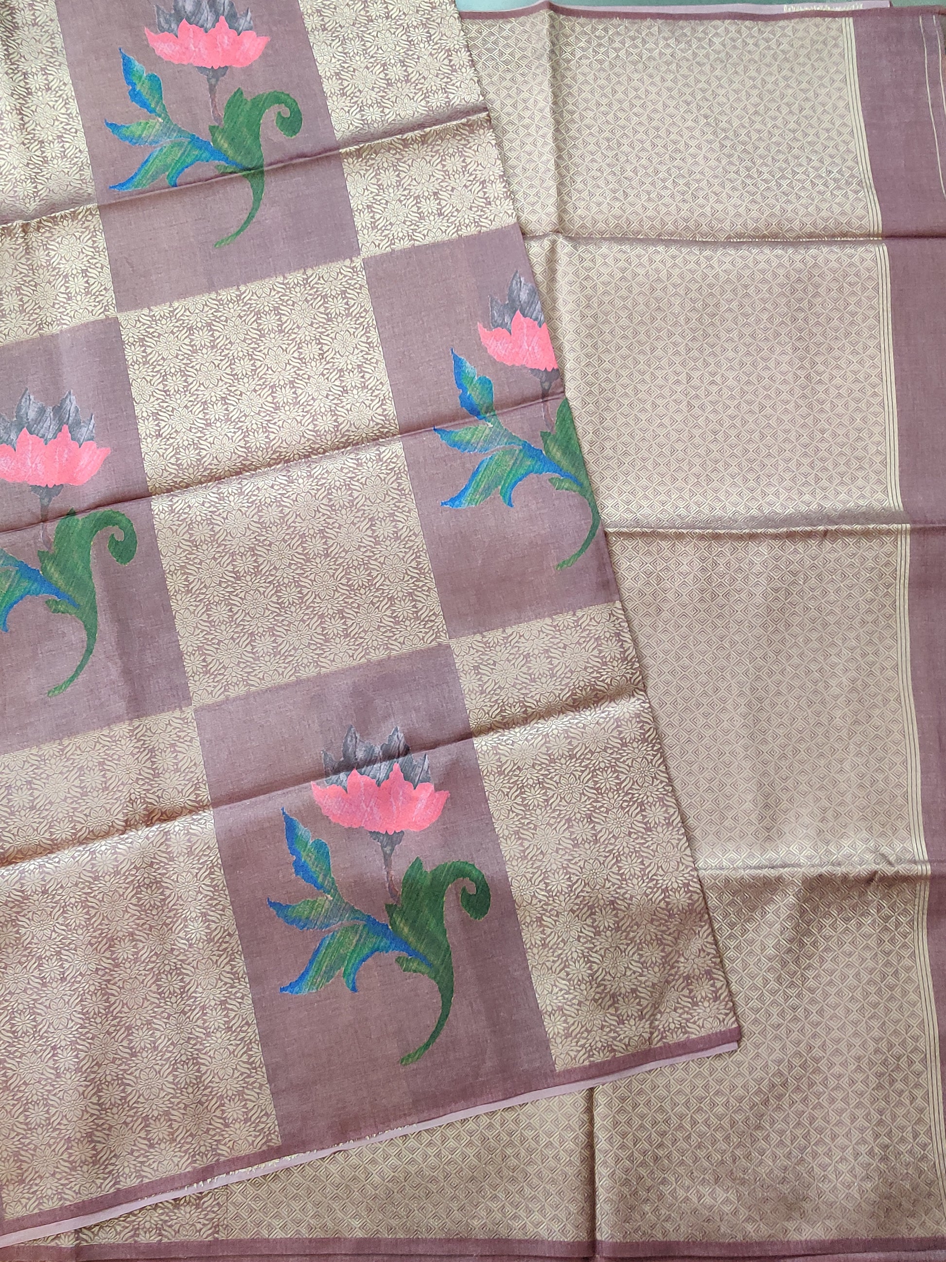 Brown Colour Semi Banarasi Saree With Zari & Digital Print All Over Code : VB0322