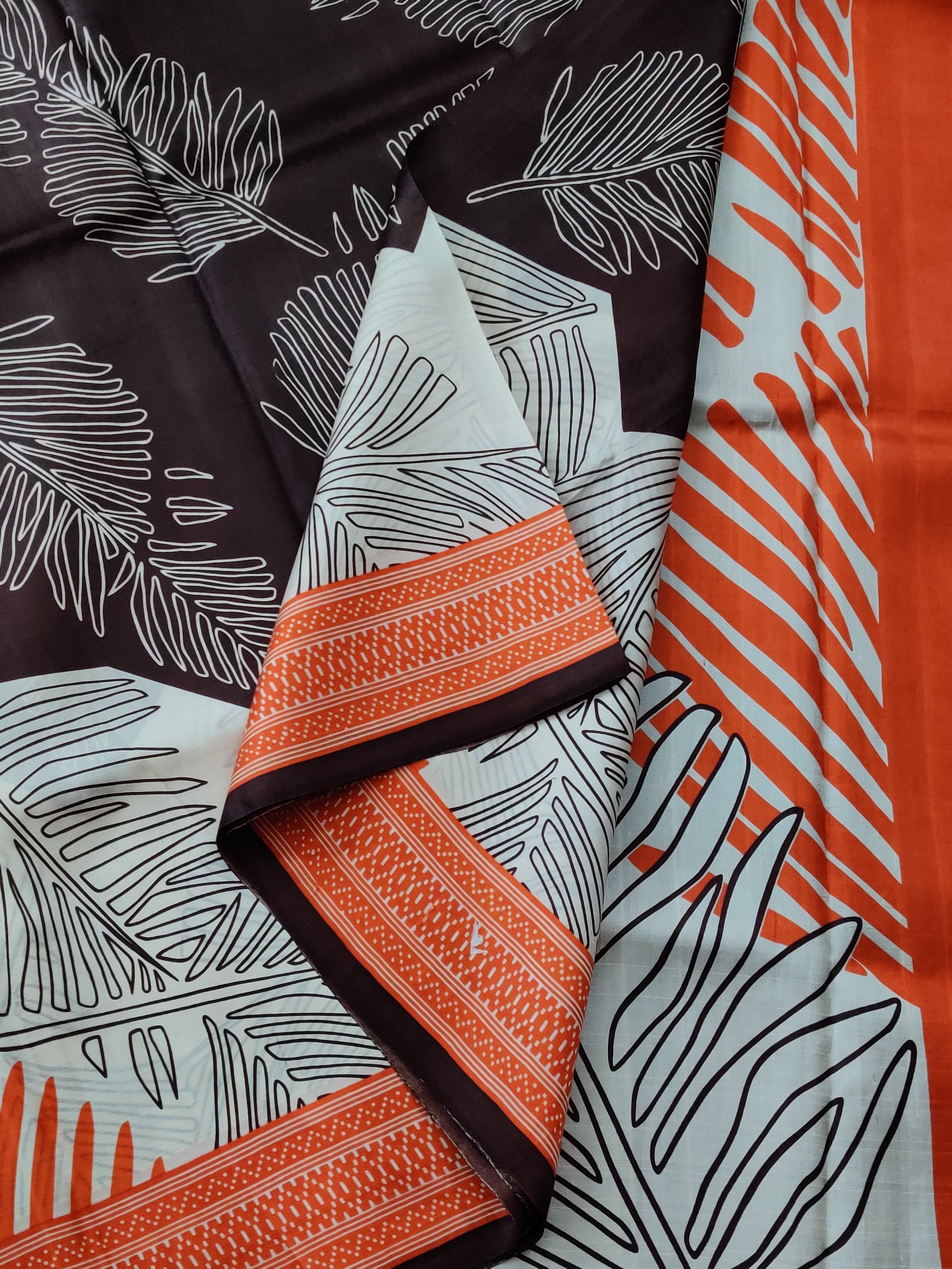 Dark Brown Colour Murshidabad Silk Saree With Screen Print All Over Code : VB0365