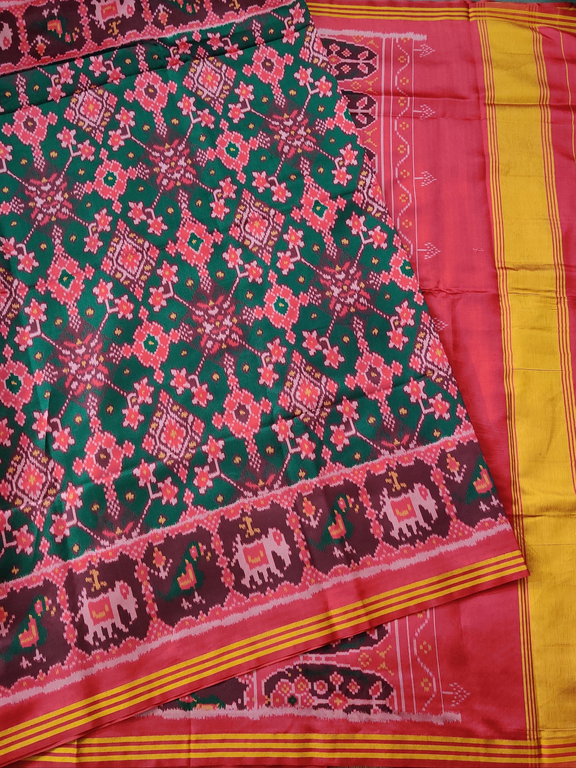 Green Colour Semi Patalo Saree With Ikkat Weaving All Over Code : VB0284