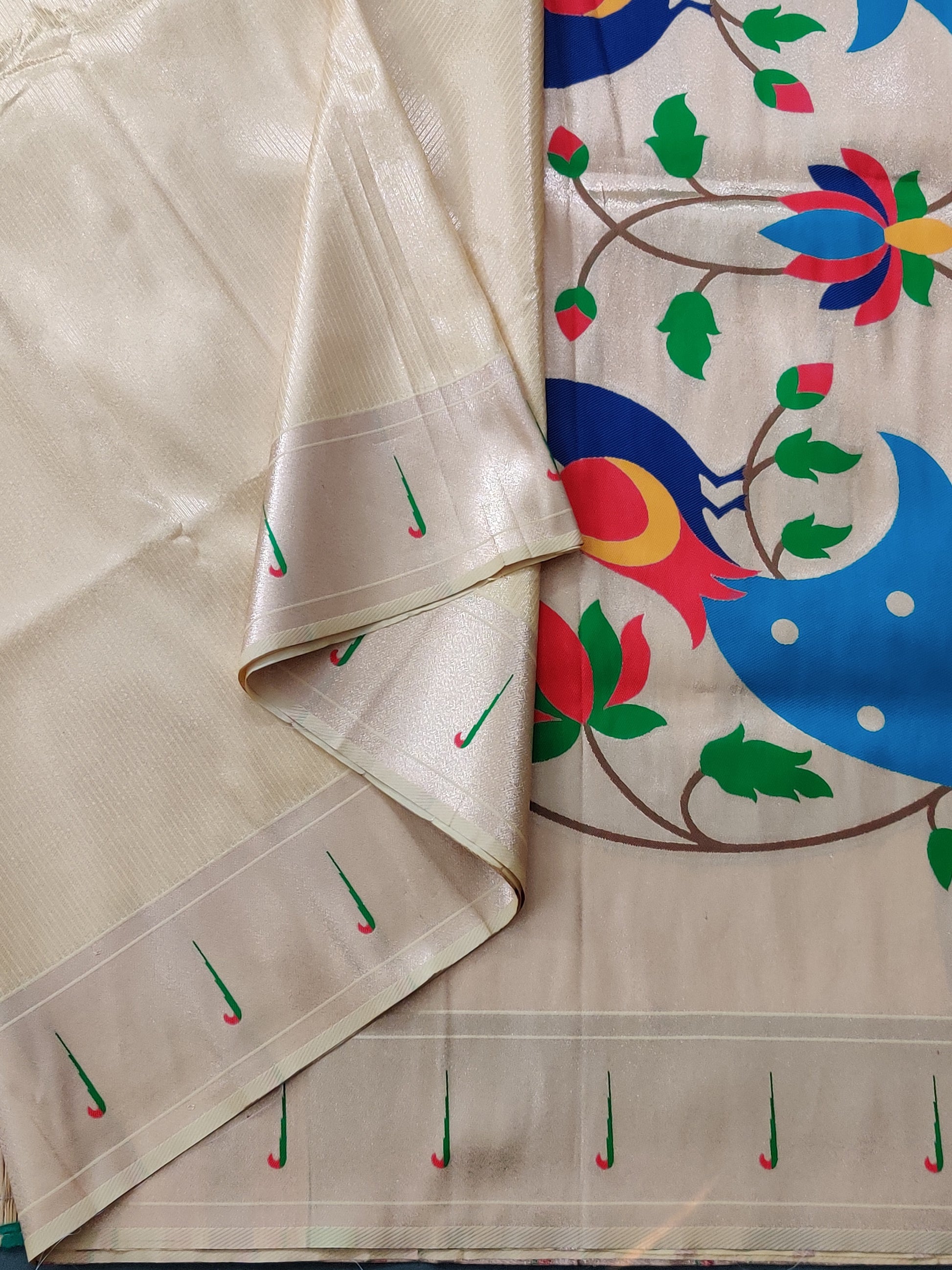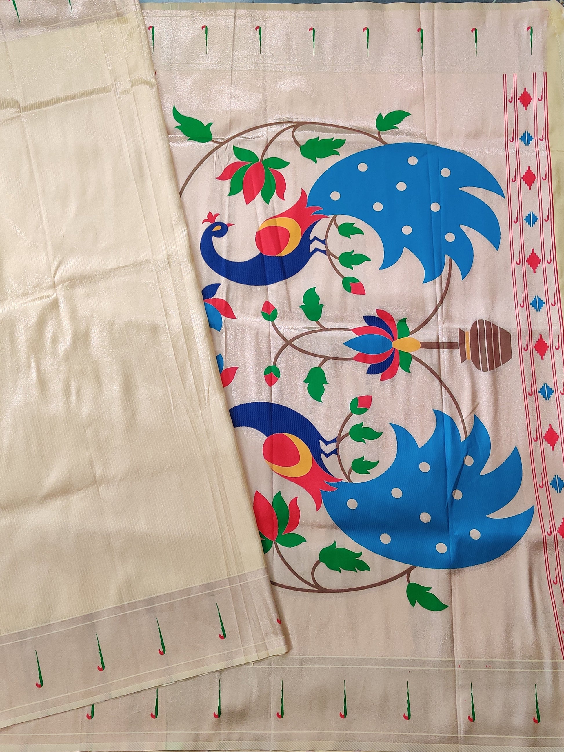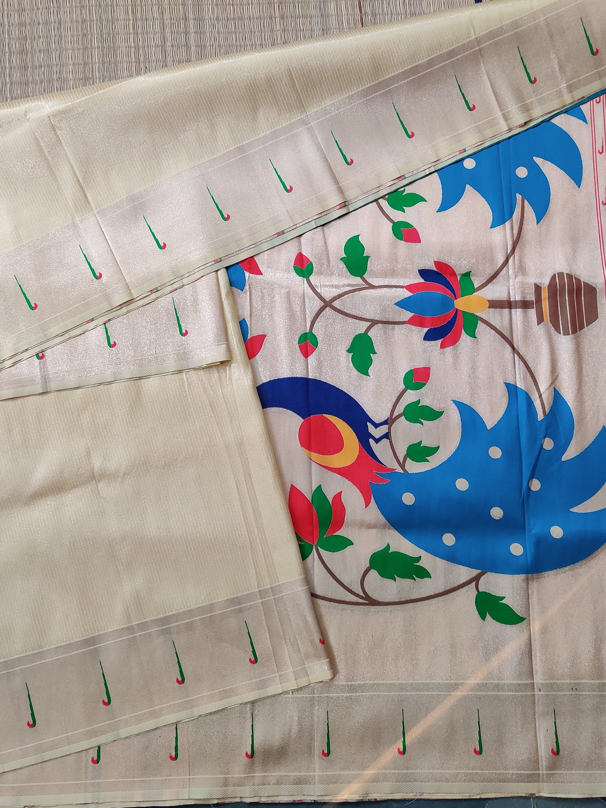 Light Yellow Colour Semi Paithani Saree With Zari Brocade All Over Code : VB0298