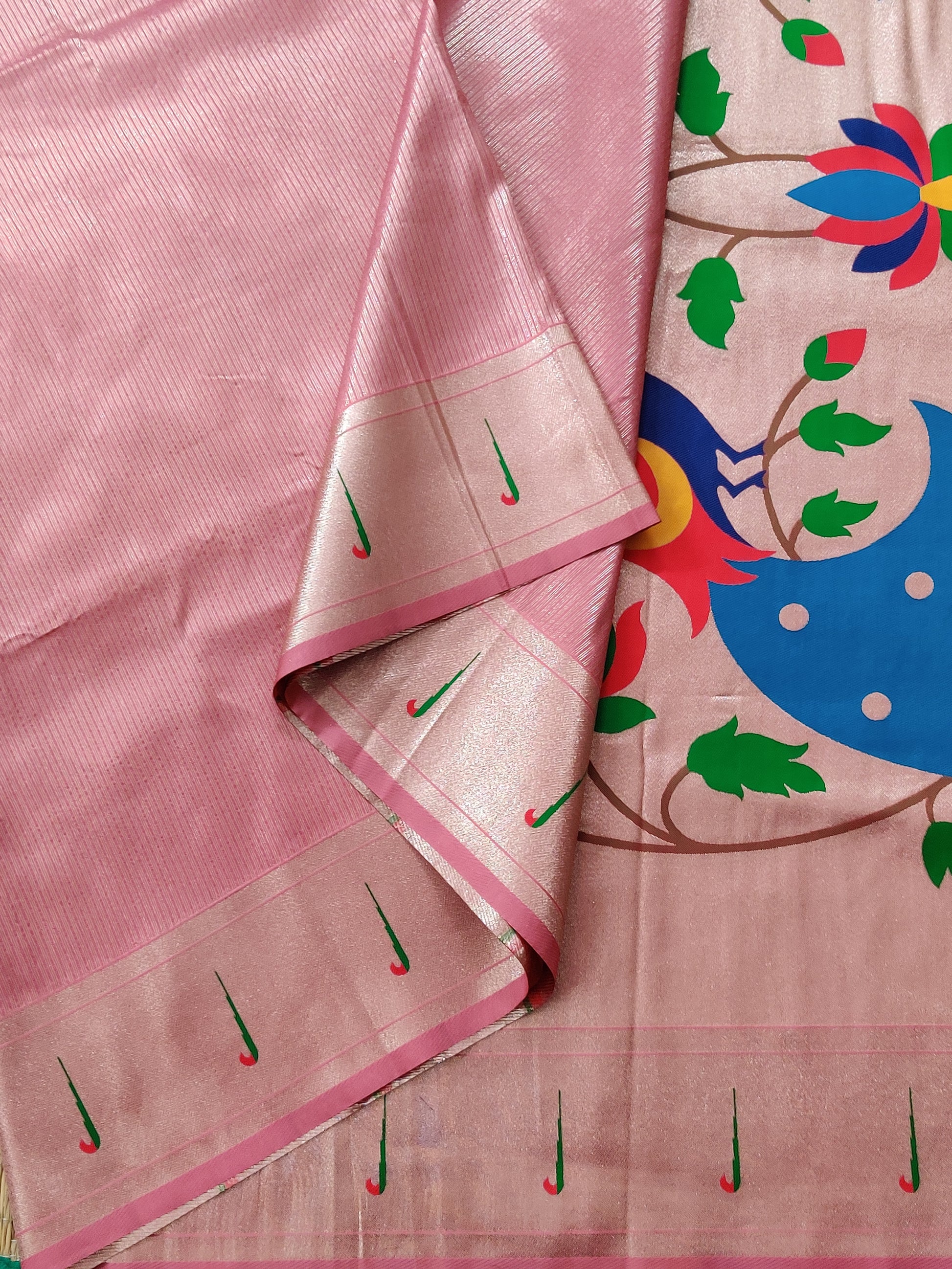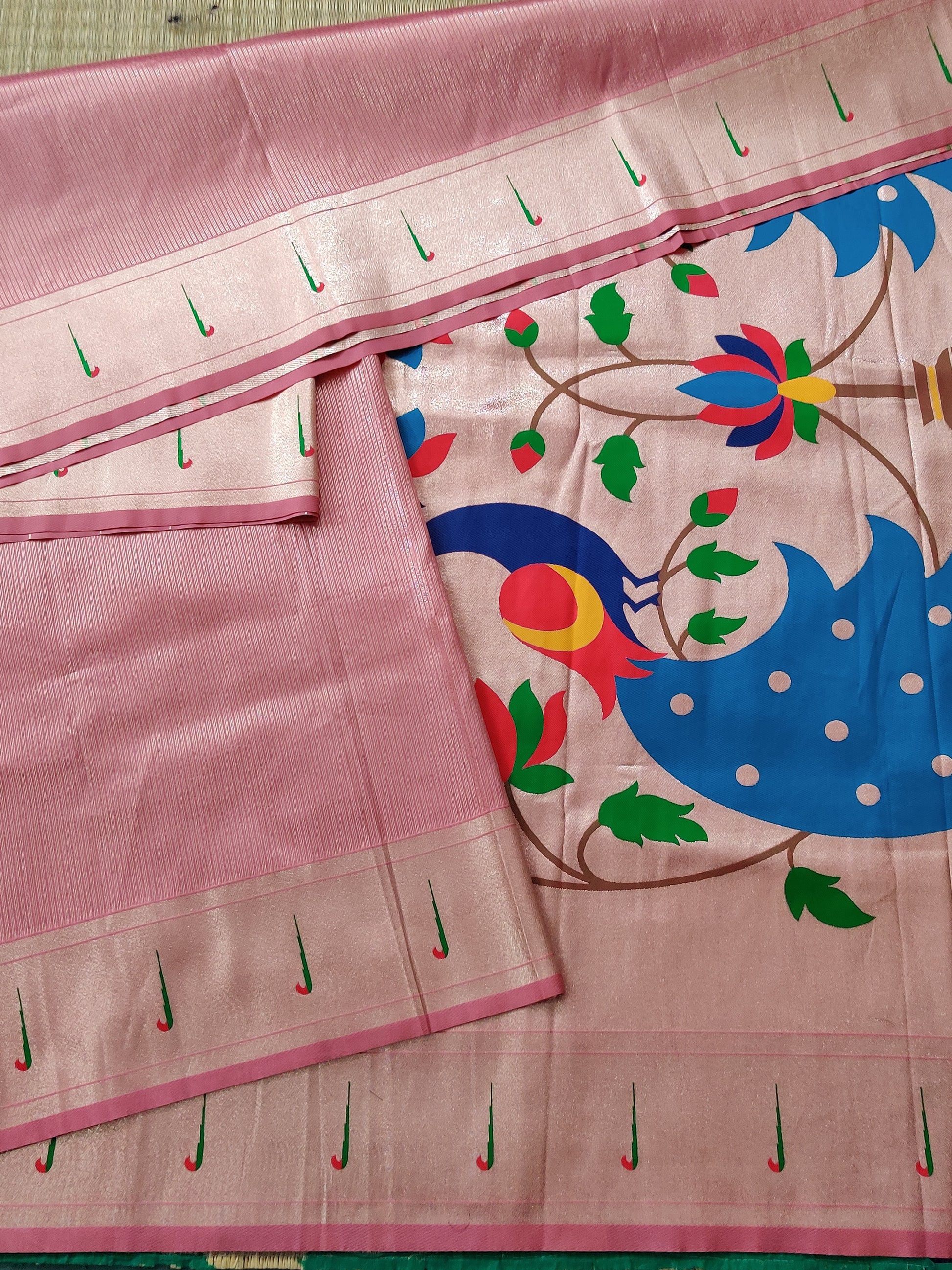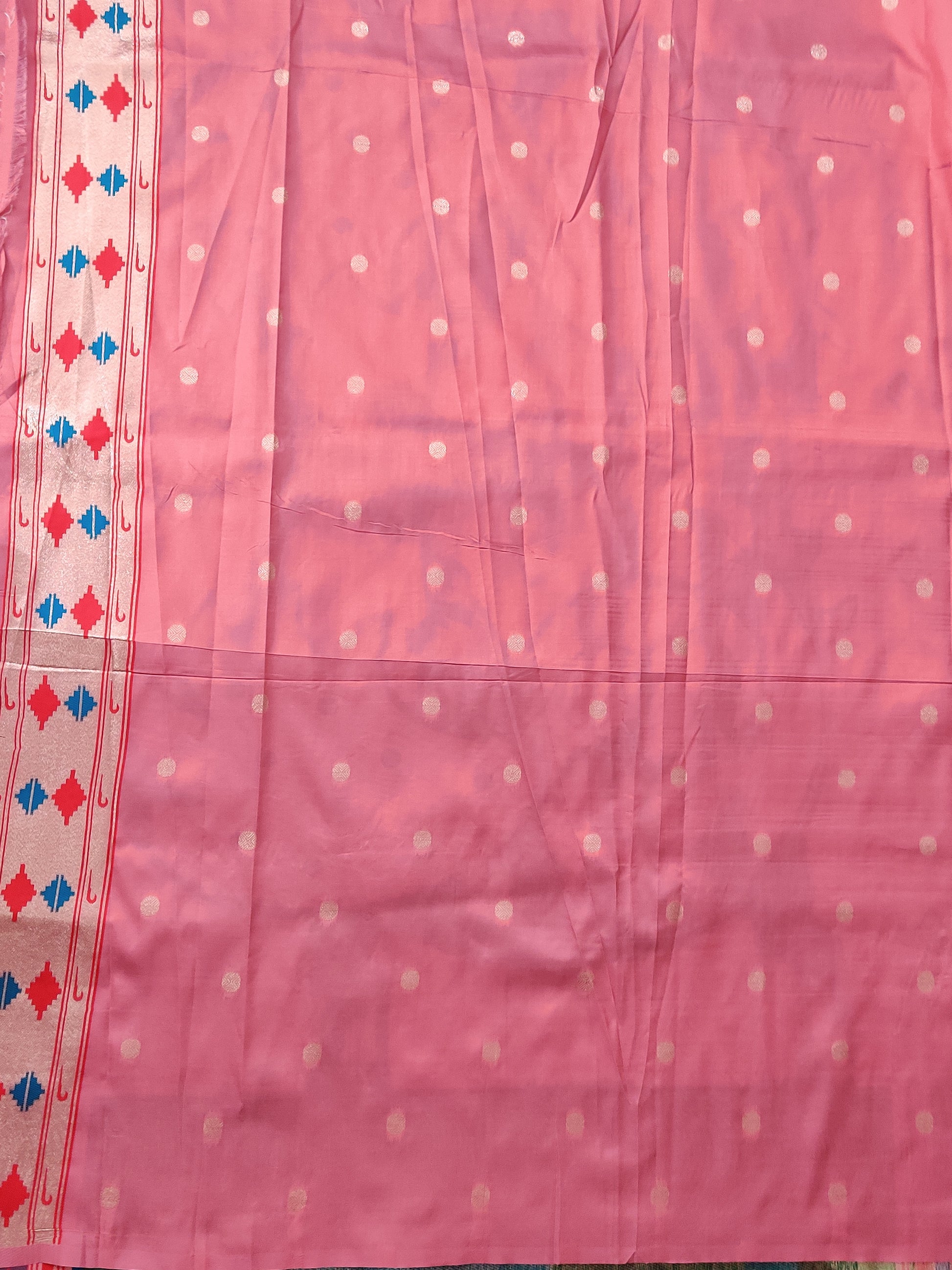 Pink Colour Semi Paithani Saree With Zari Brocade All Over Code : VB0301