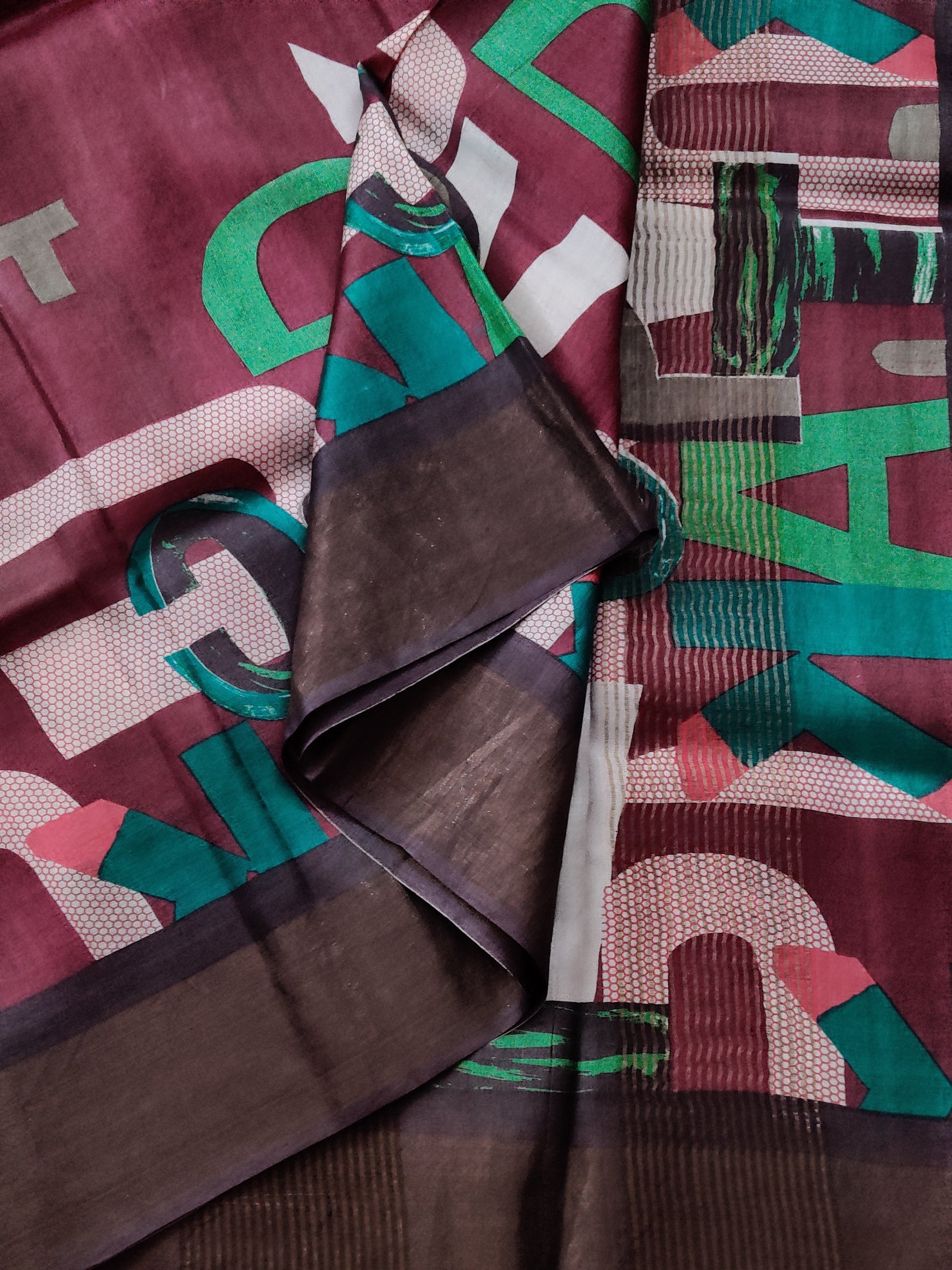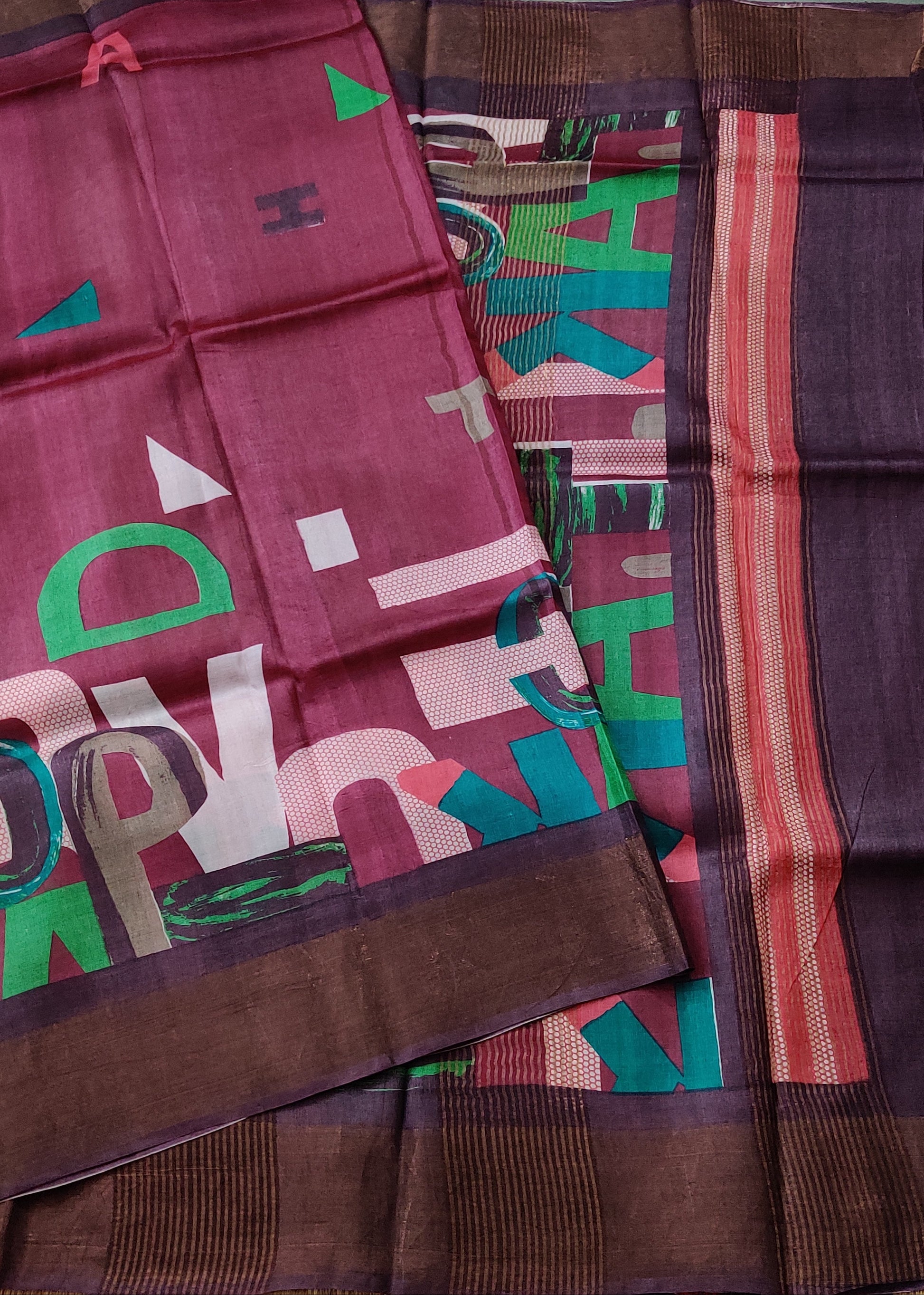 Magenta Colour Tussar Silk Saree With Screen Print All Over Code : VB0368