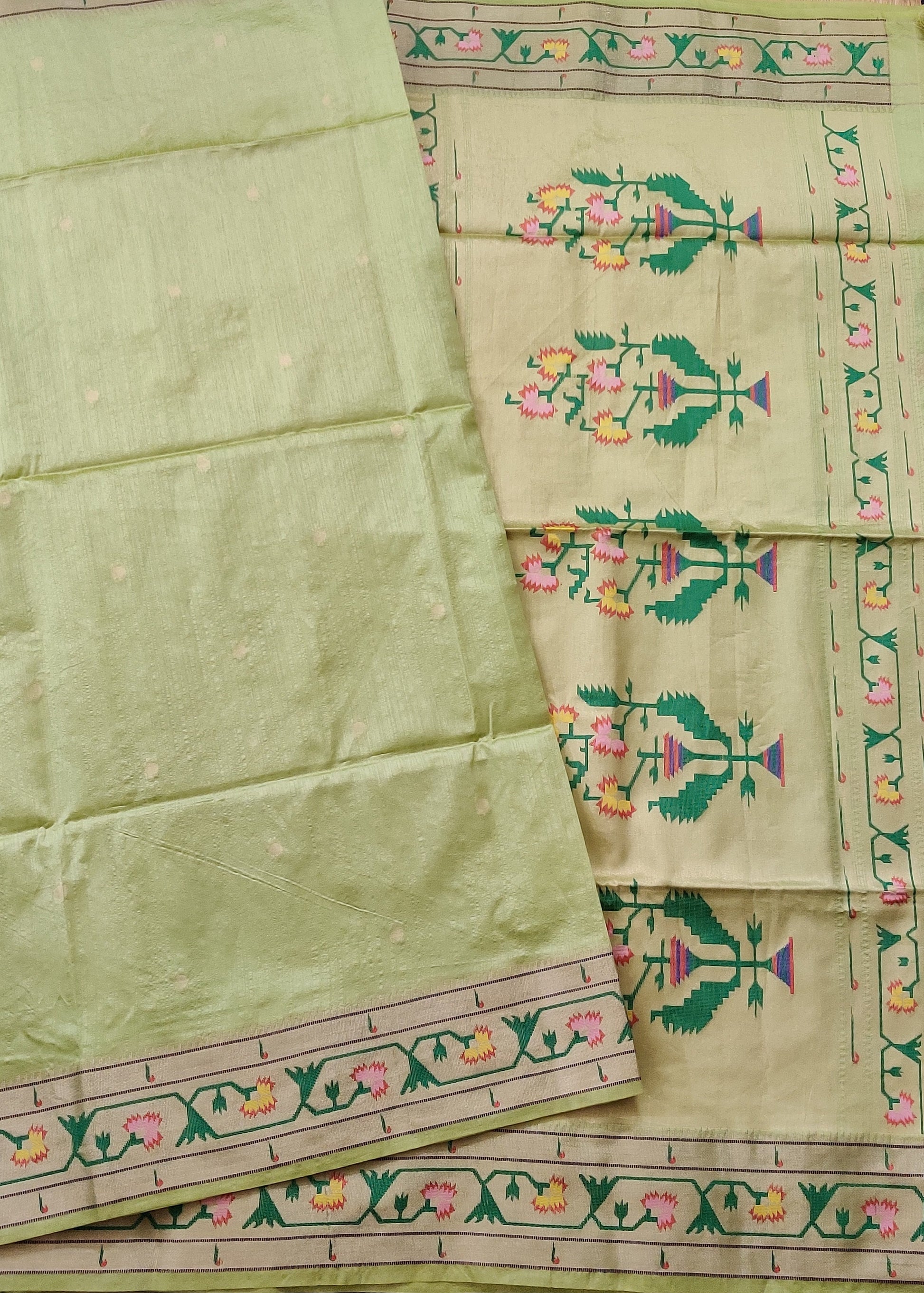 Parrot Green Colour Semi Paithani Saree With Zari Butta All Over : VB0475