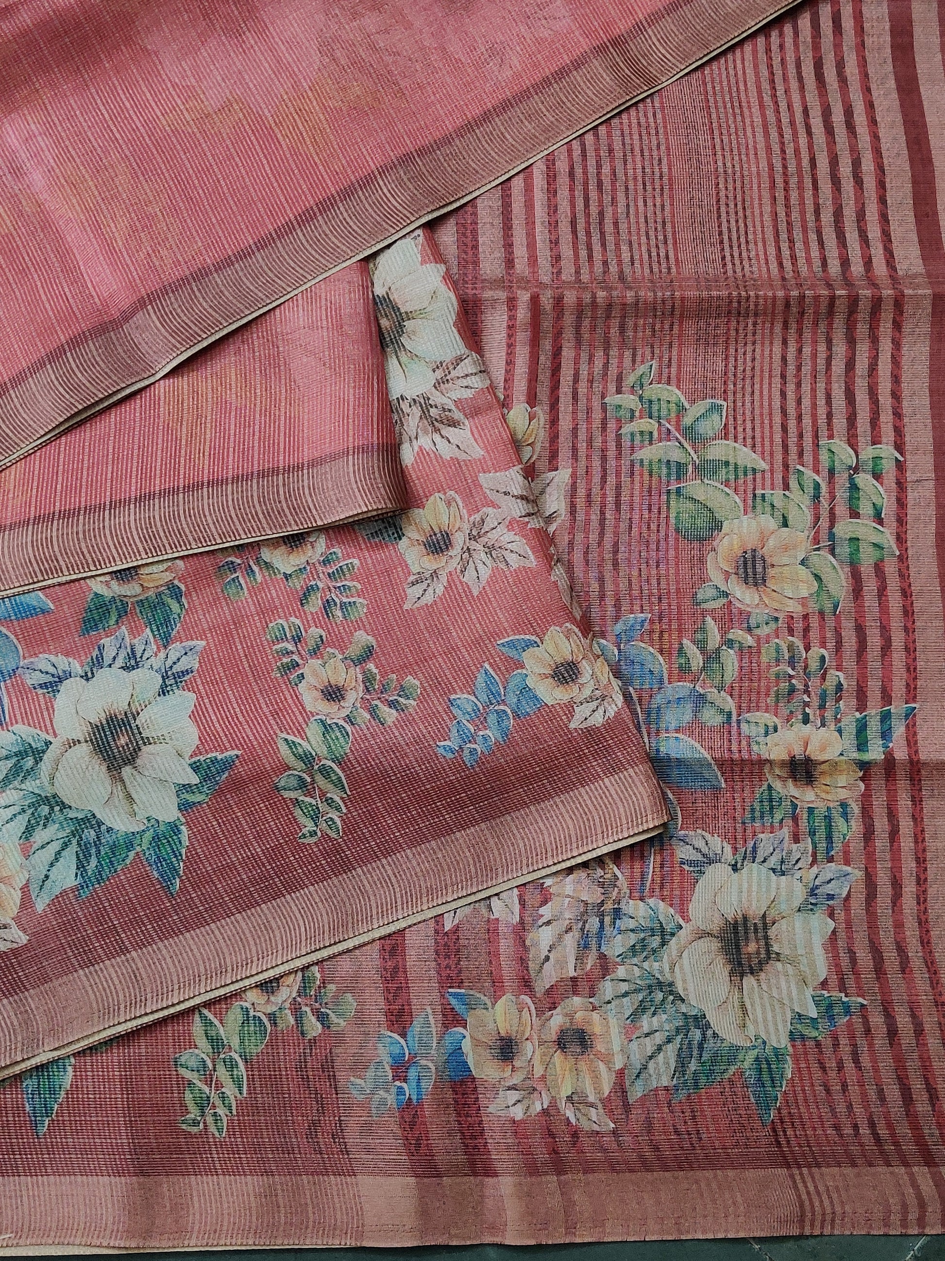 Elevate your ethnic wardrobe with this exquisite pink semi-banarasi saree, a perfect blend of traditional craftsmanship and contemporary design. The saree features a digitally printed body that showcases intricate patterns, complemented by delicate zari borders and an ornate zari pallu that adds timeless elegance. The accompanying printed blouse offers versatile styling options for any occasion. Ideal for festivals, celebrations, or formal gatherings, this saree combines comfort with sophisticated appeal, making it a cherished addition to your collection.