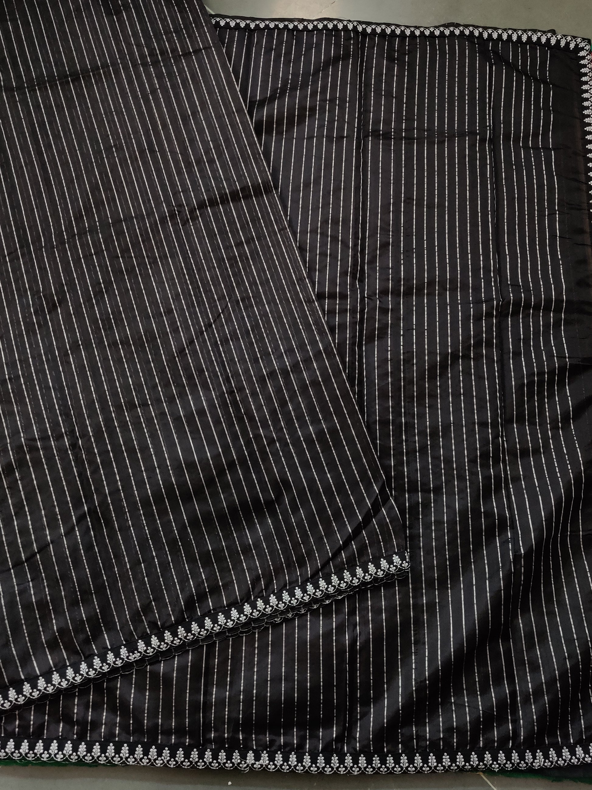Black Colour Chanderi Silk With Zari Strips