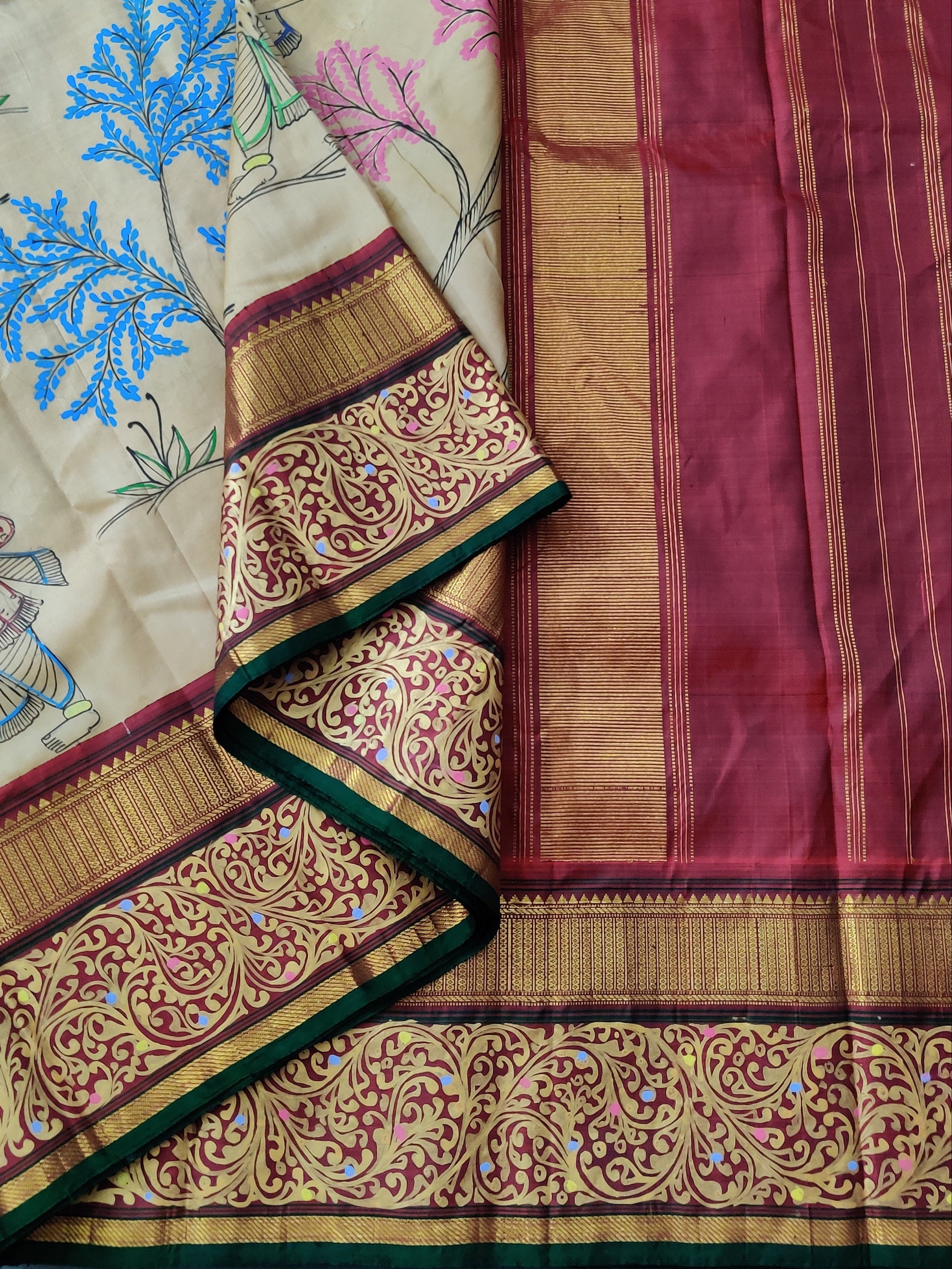 • Style :Contrast Maroon Zari Border