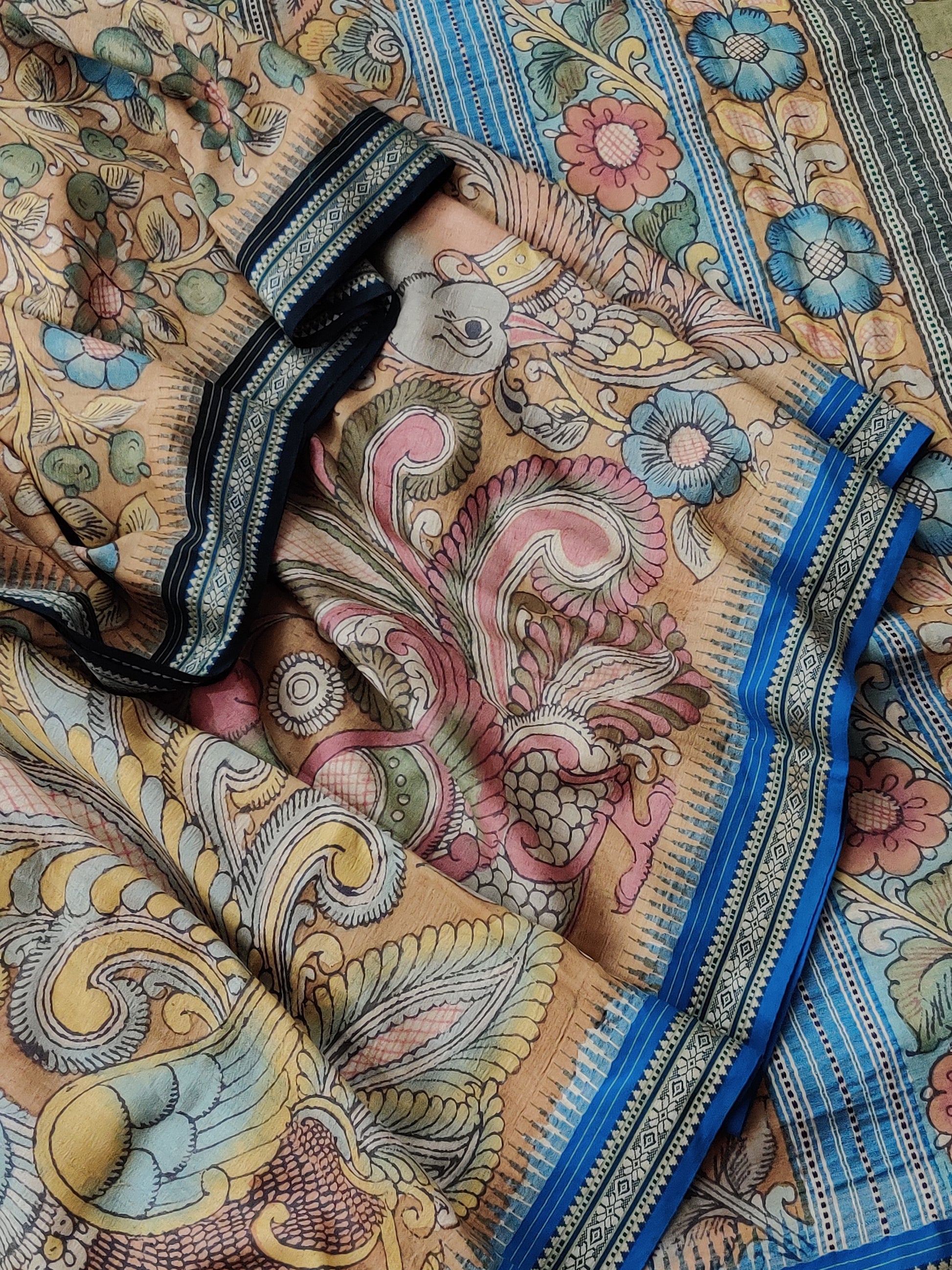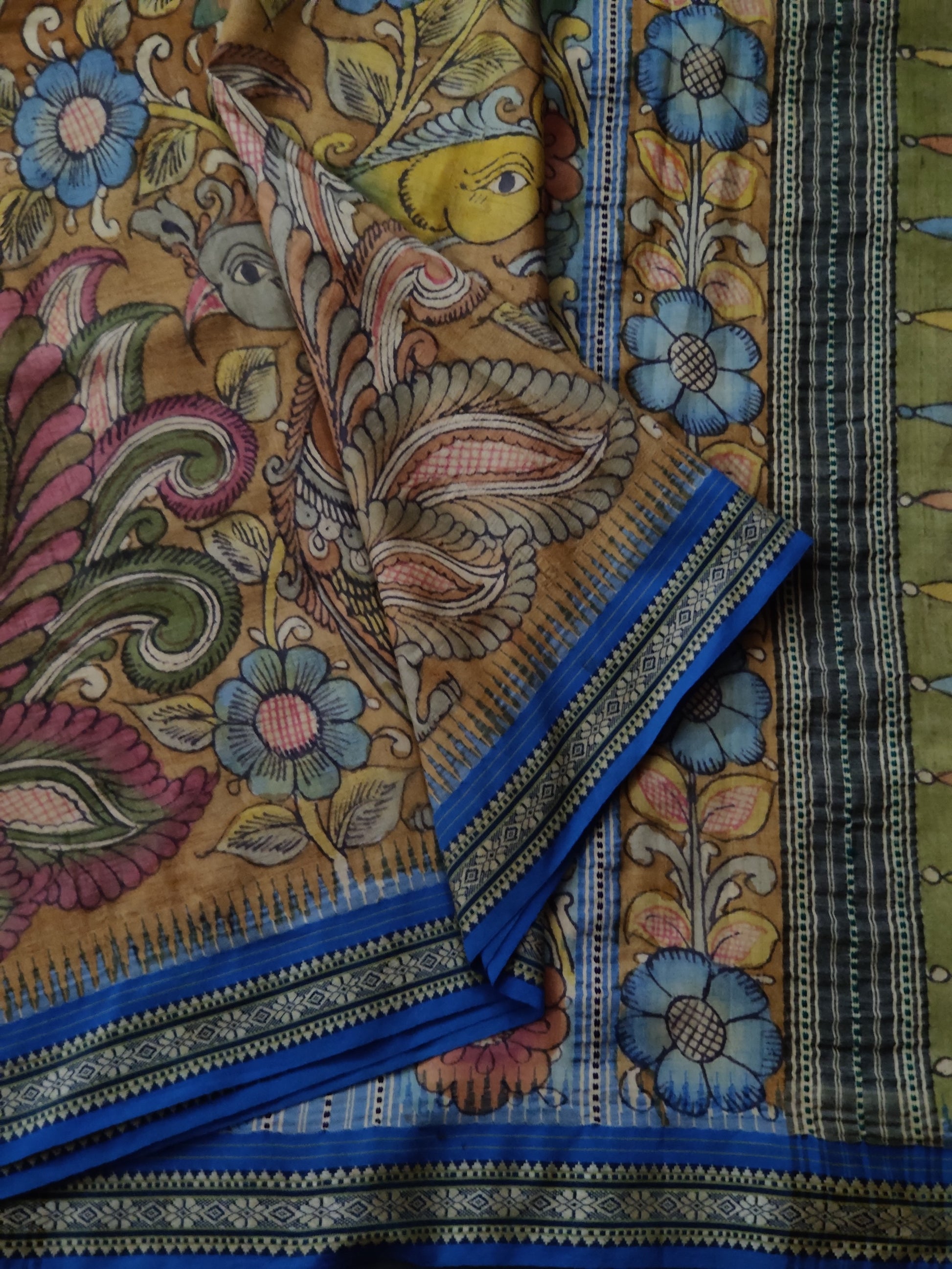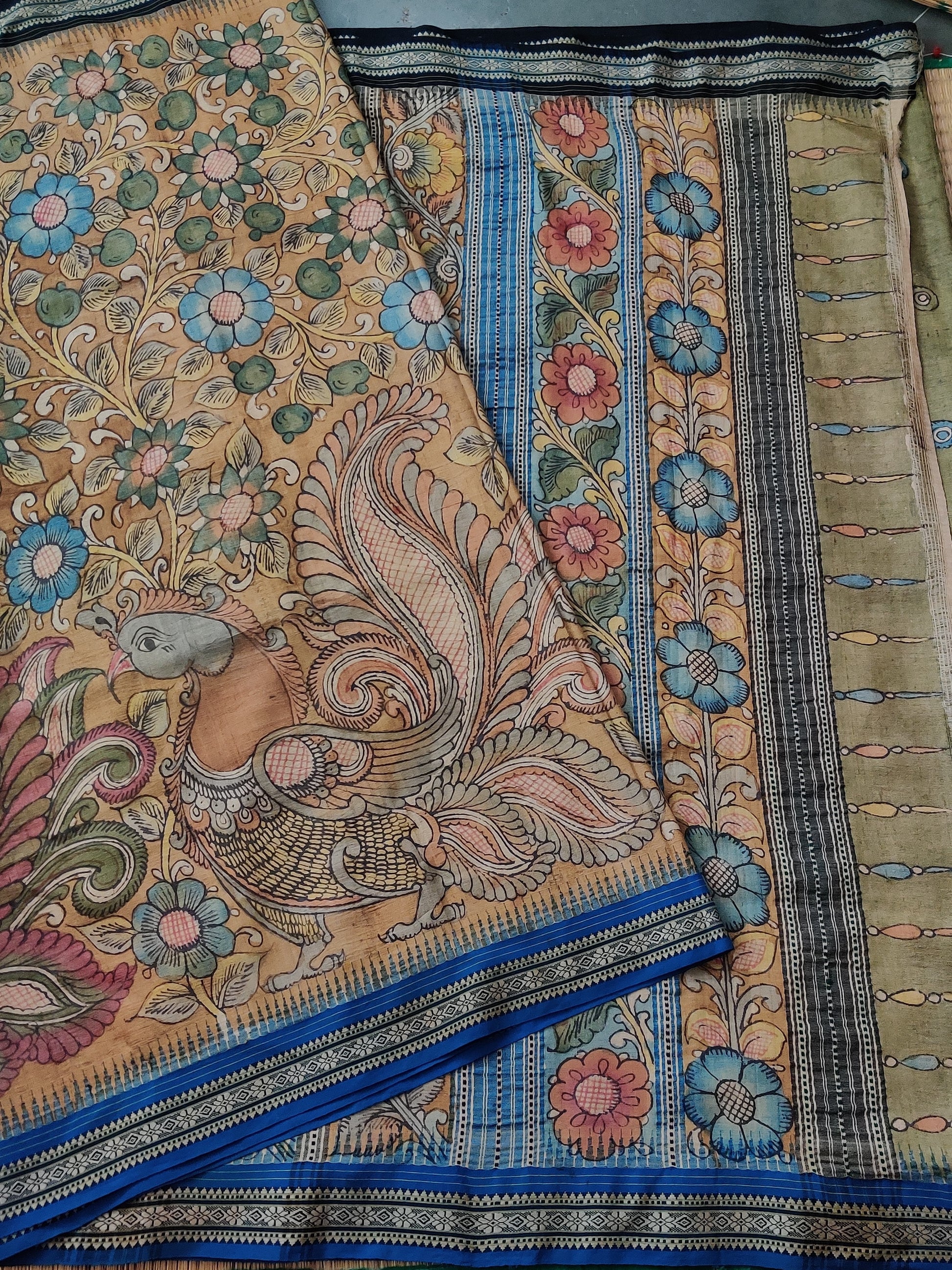Tussar Colour Vidharbha Tussar Silk With Hand Pen Kalamkari