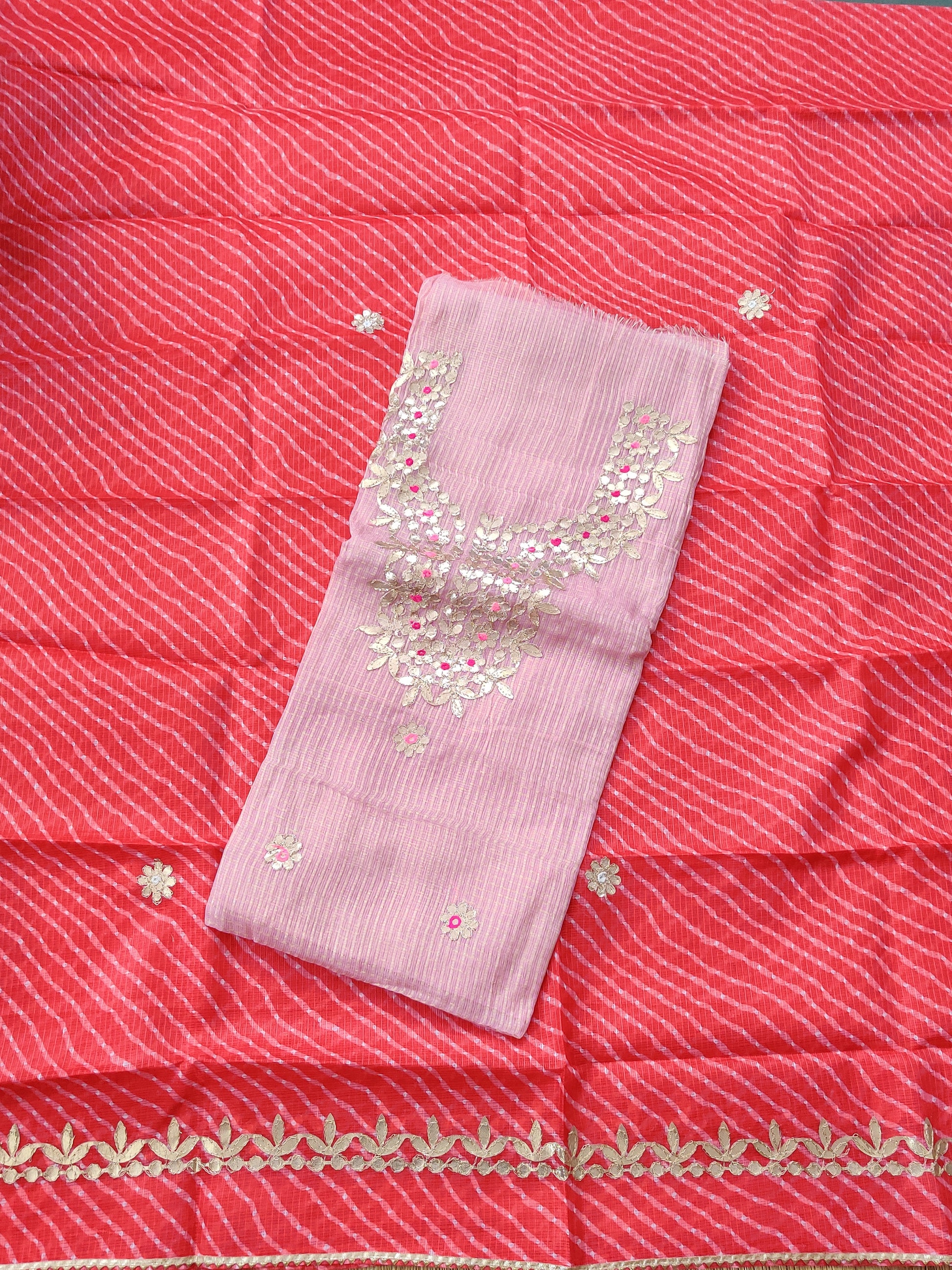 This baby pink Kota silk two-piece salwar set showcases expert craftsmanship through its blend of traditional elegance and modern comfort. Made from lightweight, breathable Kota silk, it ensures softness and ease for prolonged wear. The subtle pastel green accents enhance its refined appeal, making it an ideal choice for both everyday wear and festive occasions. Combining minimal maintenance with timeless style, this set reflects a delicate balance of quality and sophistication.
