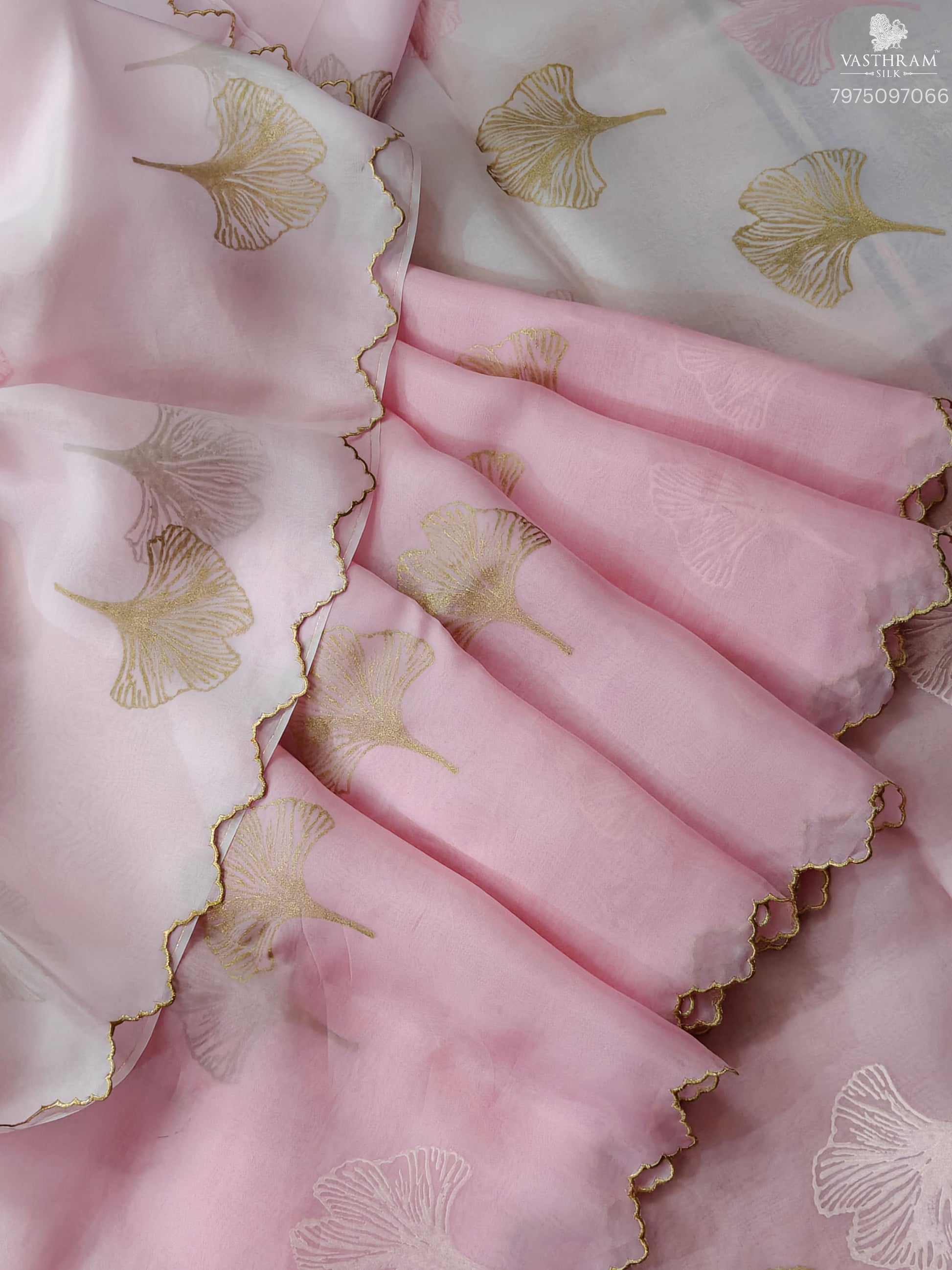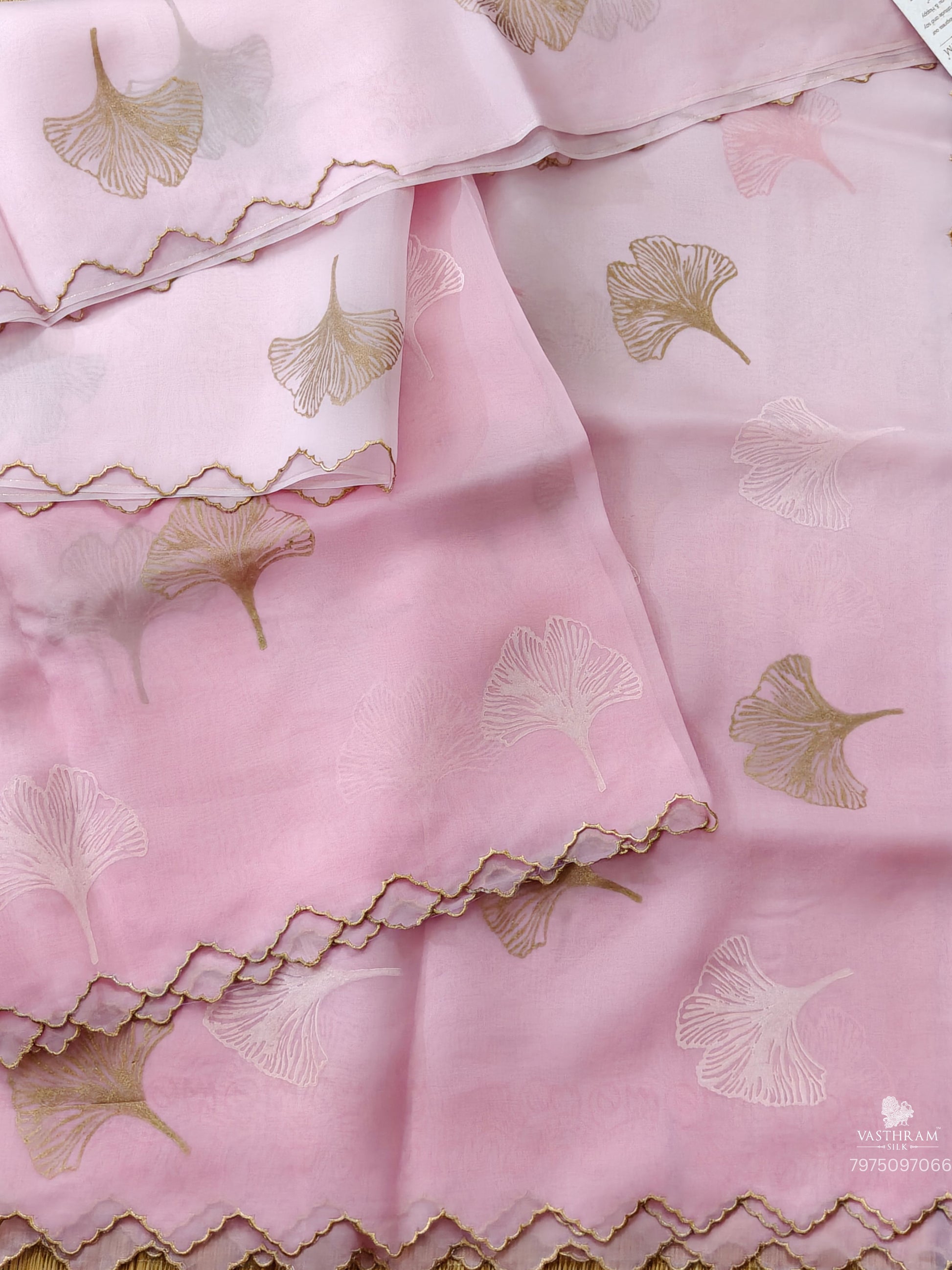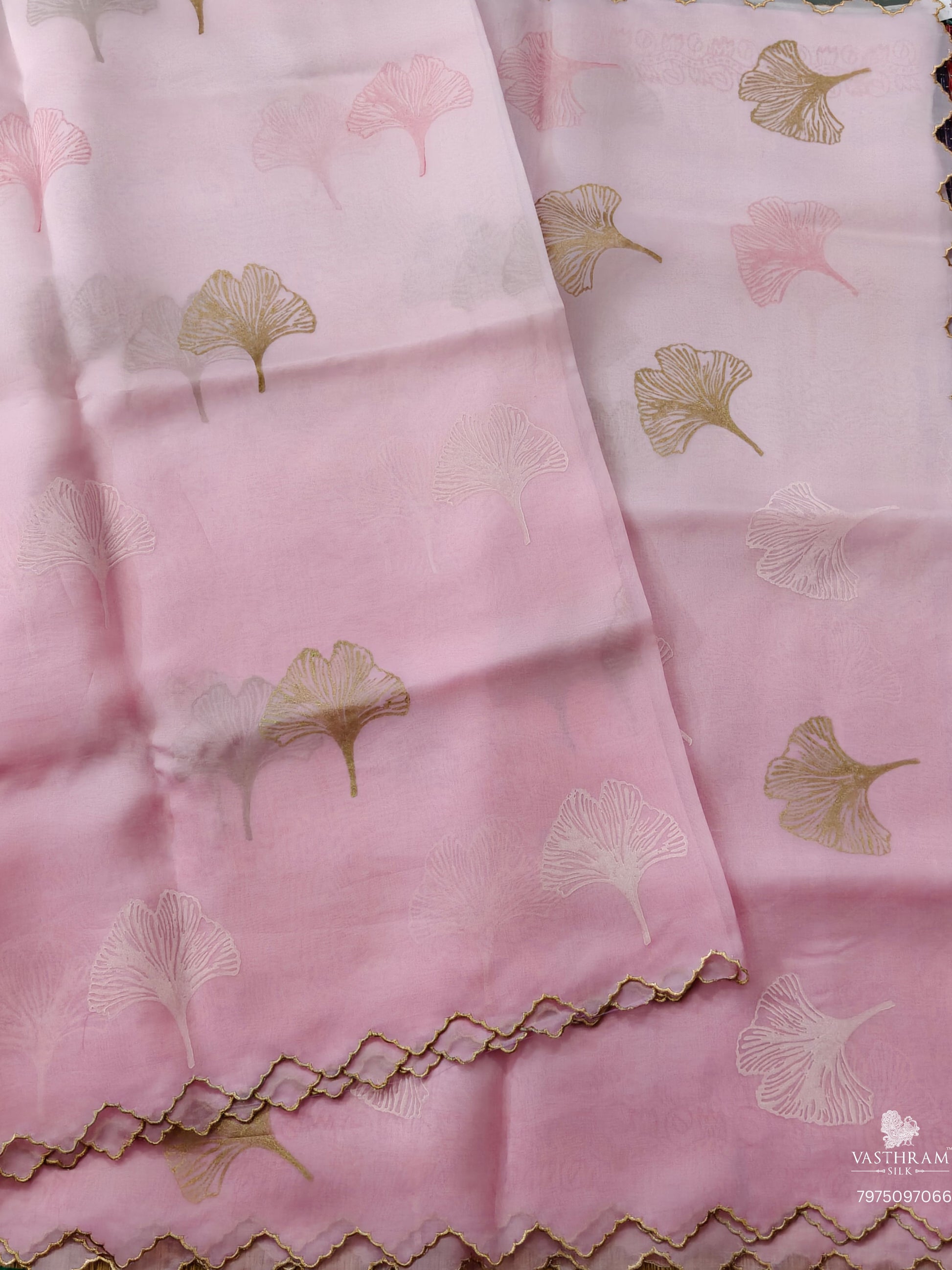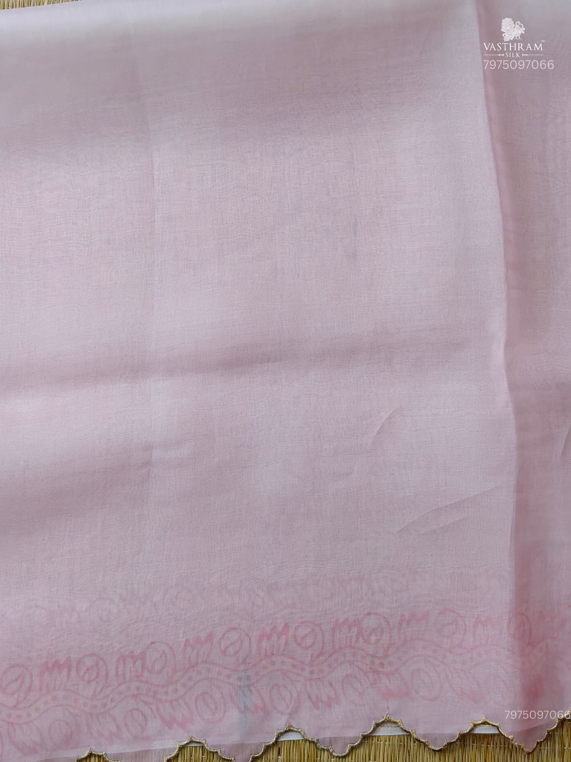 Baby Pink Colour Oraganza Silk Saree With Hand Block Print All Over Code :VB0462
