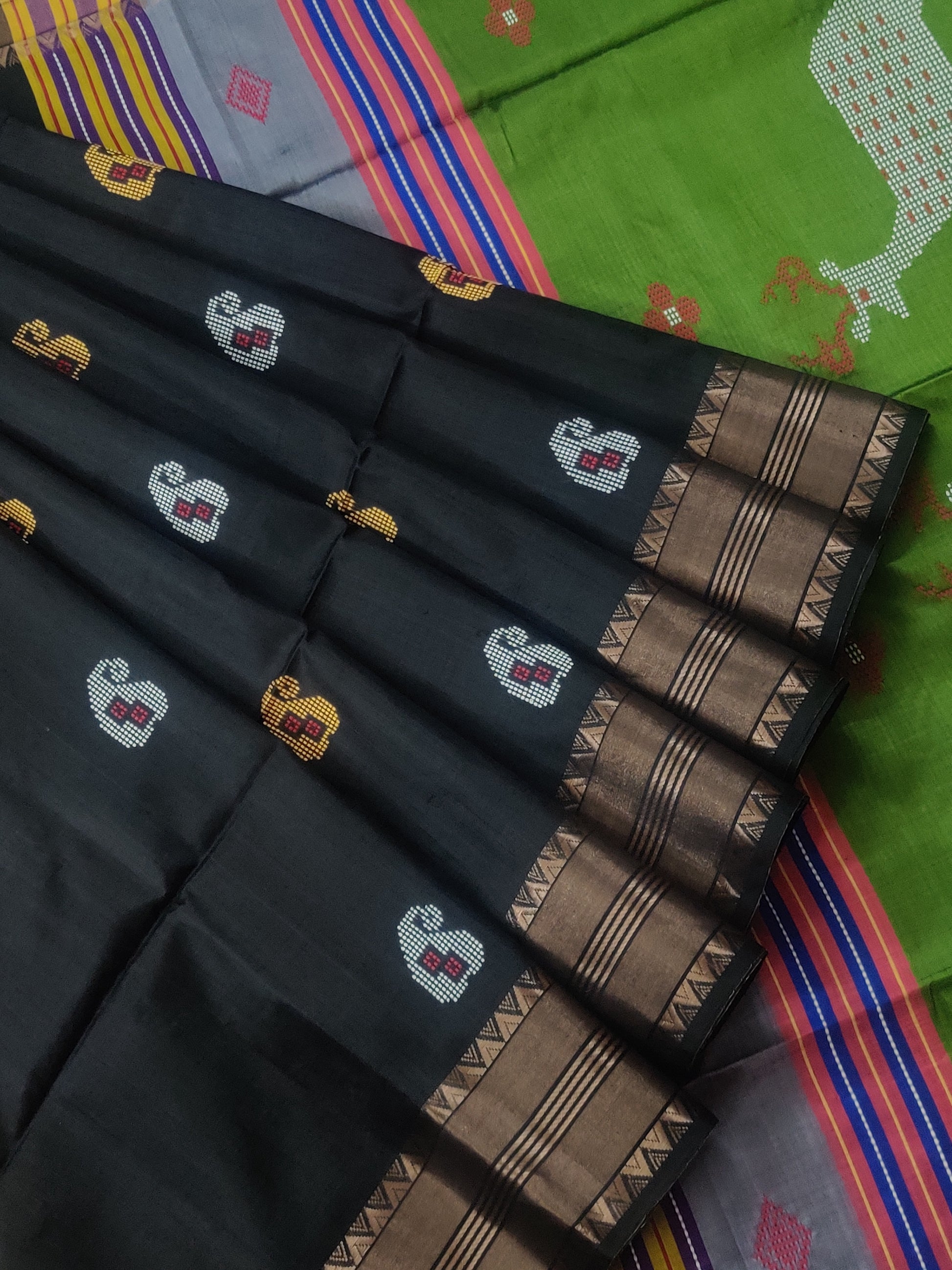 Black Colour Bishnupuri Silk Saree With Thread Woven Motif All Over Code : VB0408