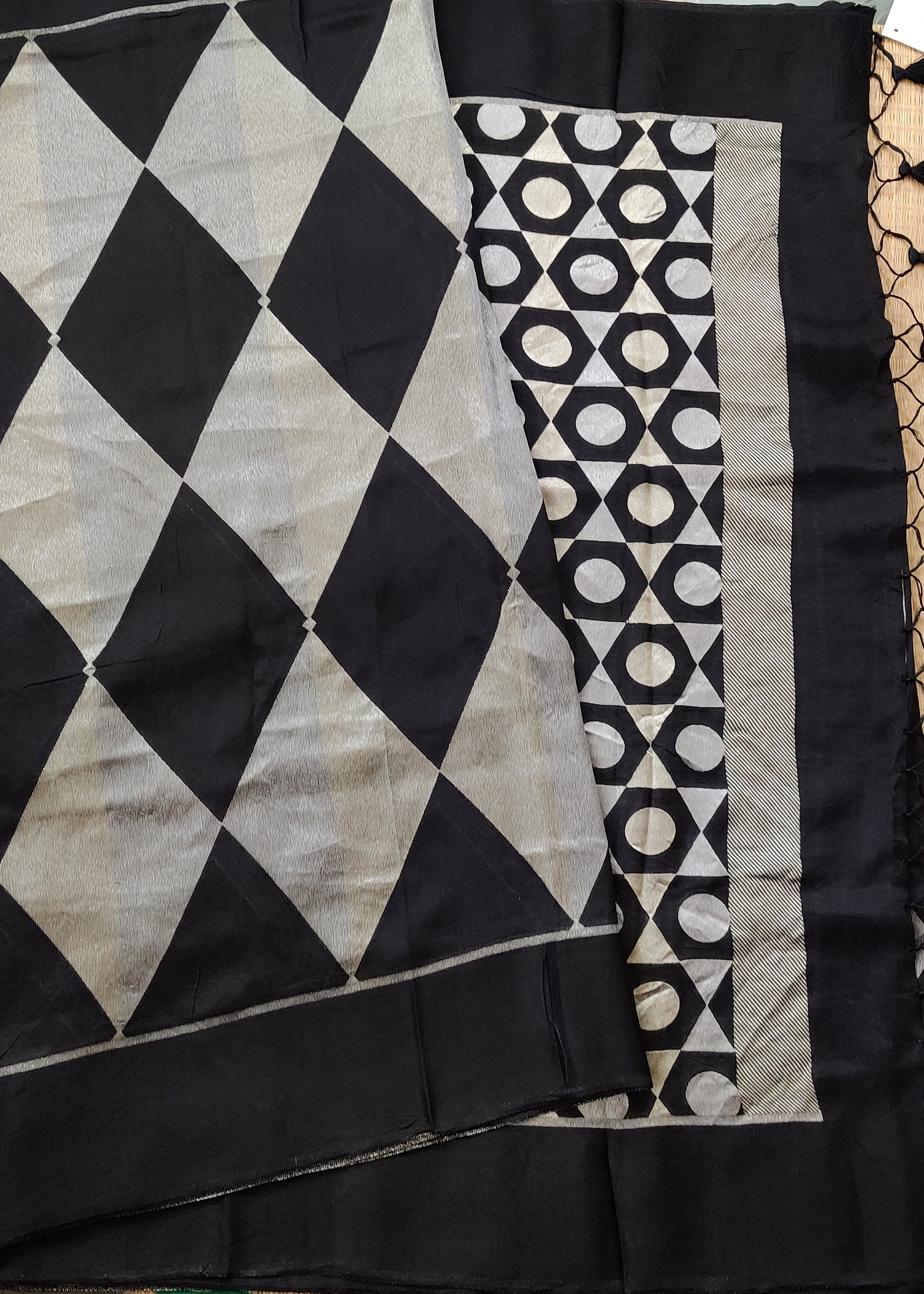 Black Colour Replica Banarasi Gerogette Saree With Silver Zari Motif All Over Code : VB0438