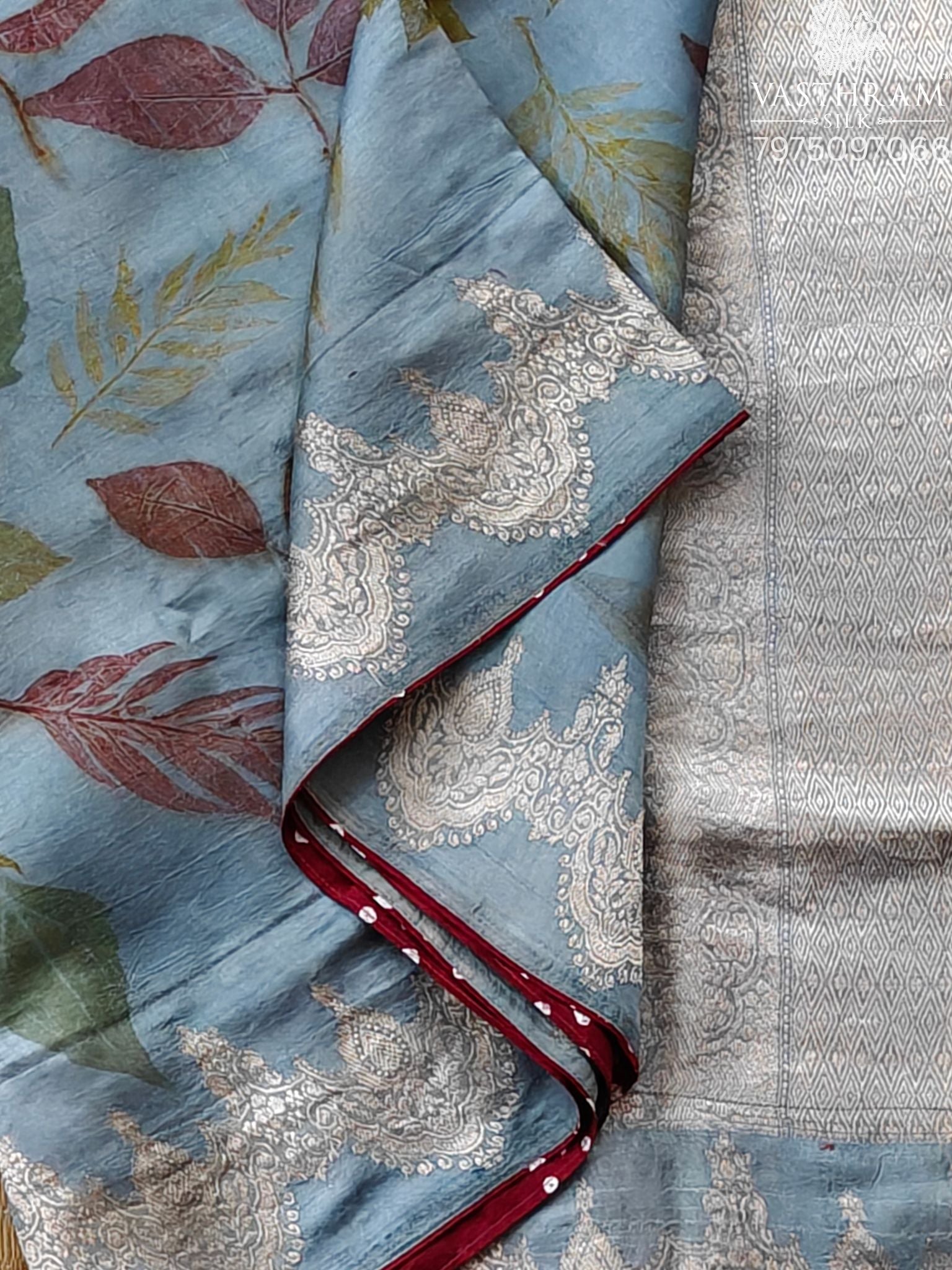 Blue Colour Murshidabad Silk Saree With Natural Eco Print All Over Code : KA0471