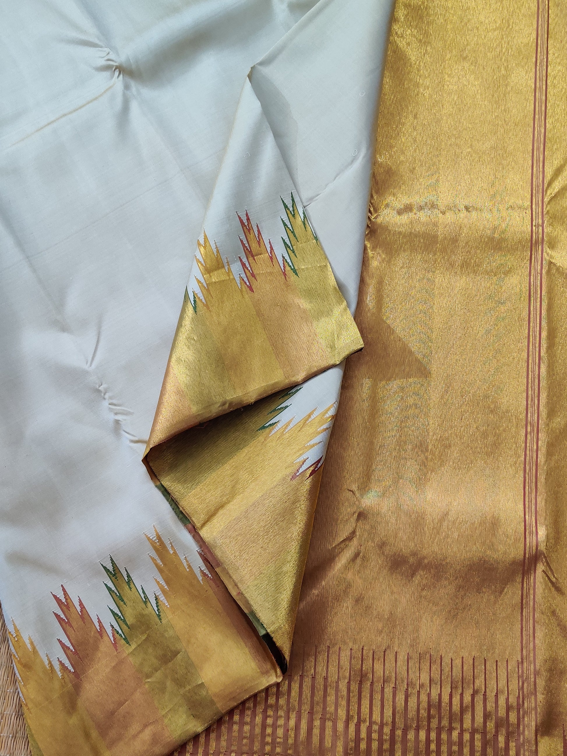 Cream Colour Kanchivaram Silk Saree With Plain Body Code : KA0319