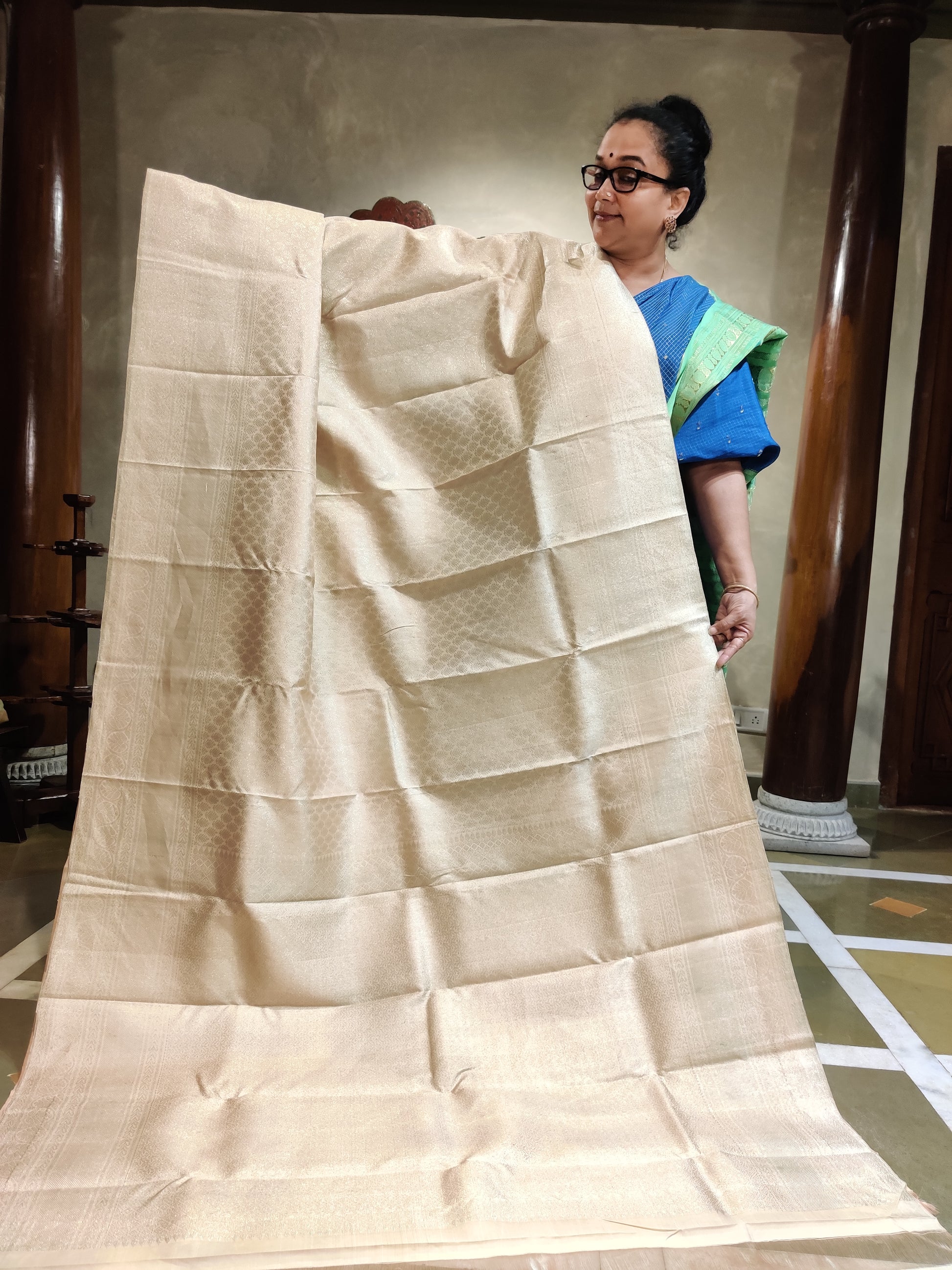 Cream Colour Kanchivaram Silk Saree With Zari Brocade Body Code : KA0383