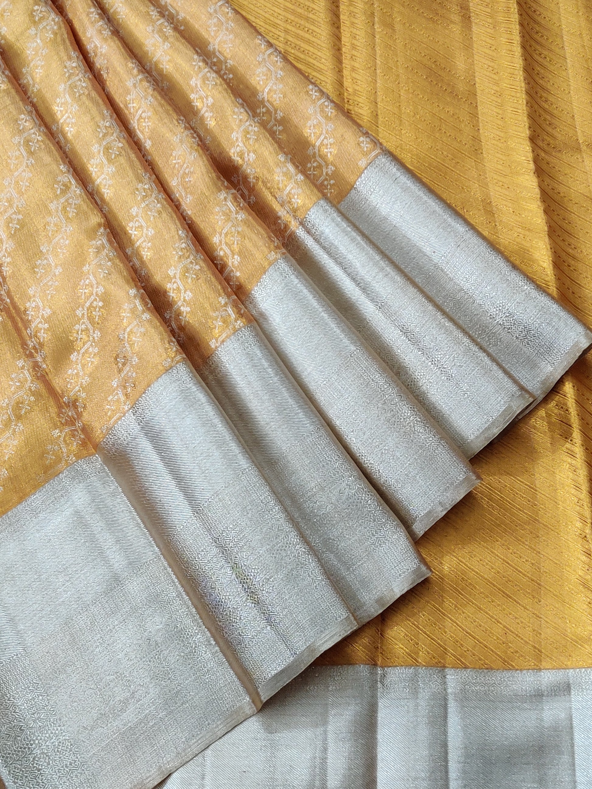 Dark Gold Colour Tissue Kanchivaram Silk Saree With Zari Brocade All Over Code : KA0262