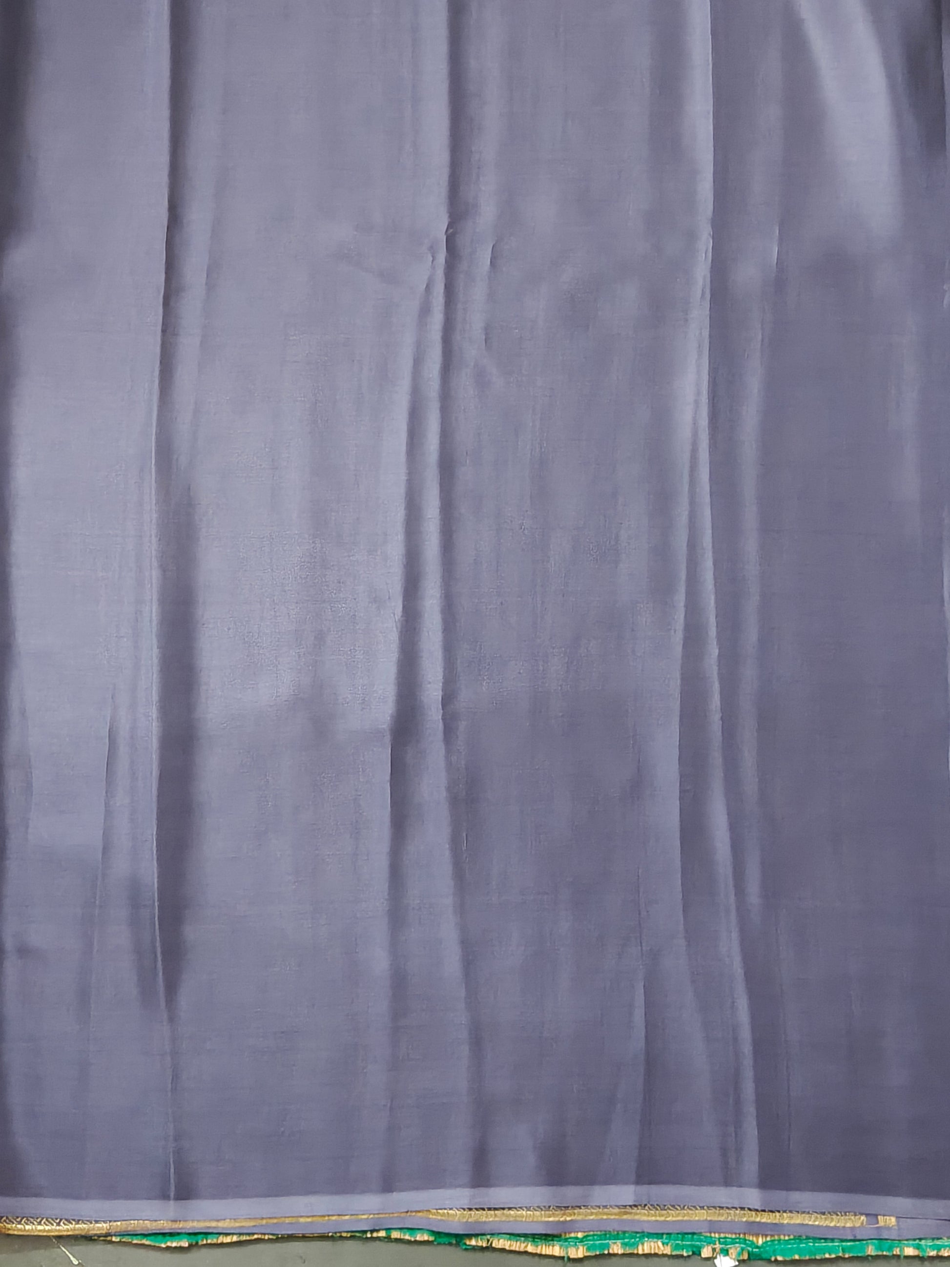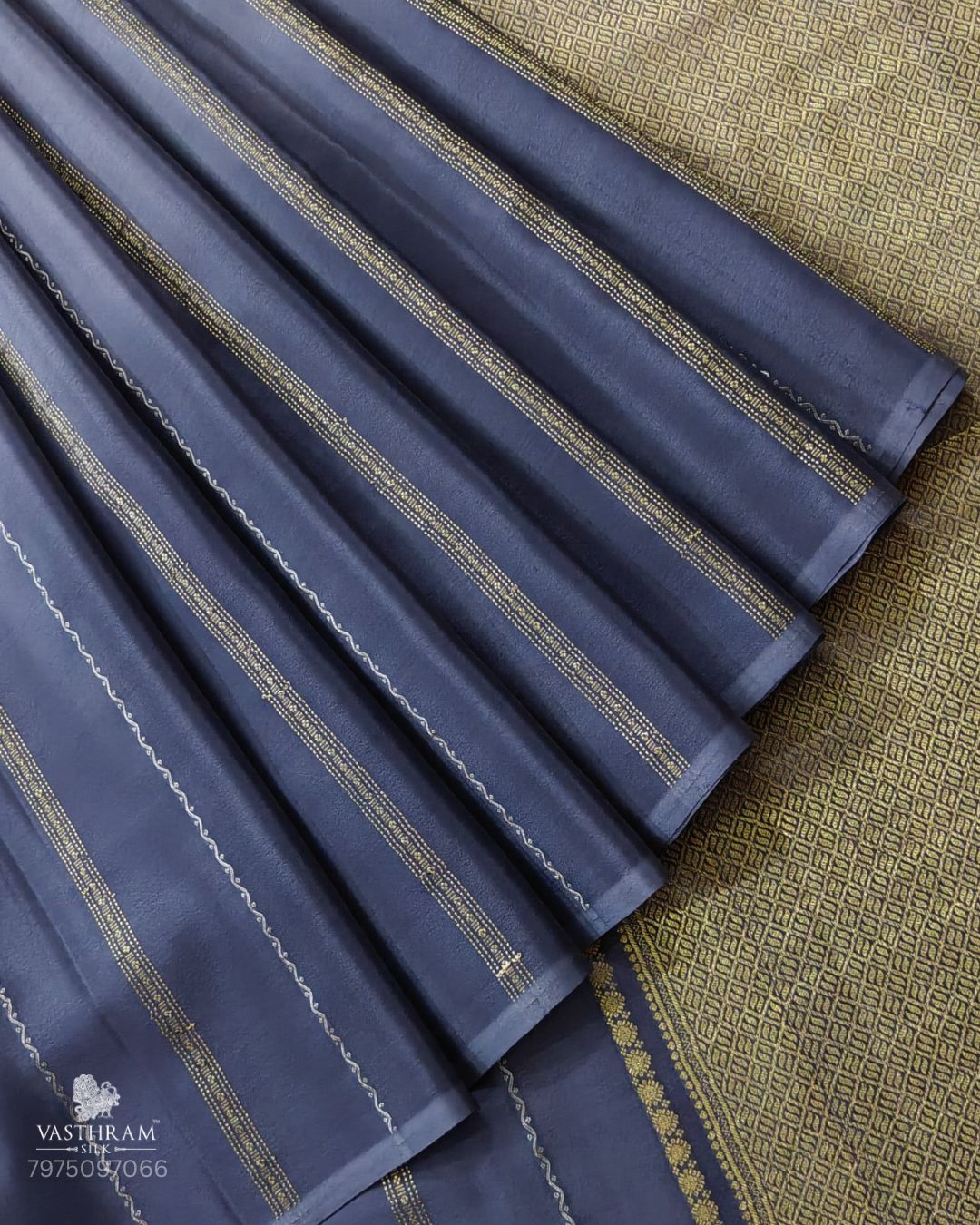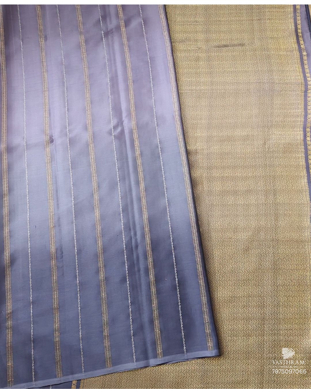 Grey Colour Kanchivaram Silk Saree With Zari Stripes All Over Code : MC011