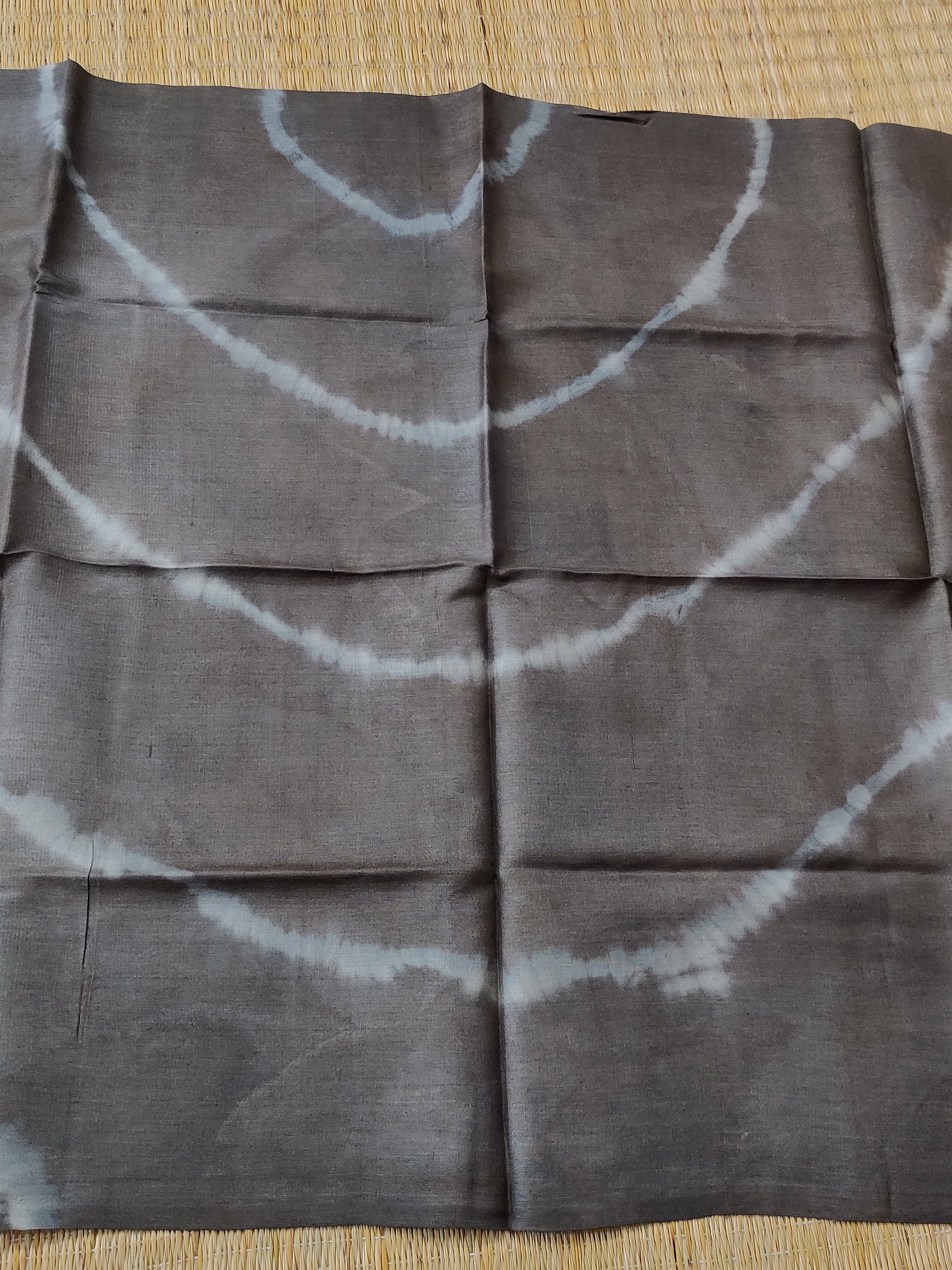 Elevate your ethnic wardrobe with this sophisticated grey pure silk saree, crafted from premium silk for a luxurious drape and natural sheen. The entire saree features an intricate eco-print design created using sustainable, plant-based techniques that celebrate nature's artistry. The pallu showcases an exquisite shibori pattern, adding textural depth and visual interest. Paired with a coordinating blouse, this piece seamlessly blends traditional craftsmanship with contemporary aesthetics. Perfect for festive occasions, celebrations, or refined everyday elegance, this saree embodies timeless grace and environmental consciousness.