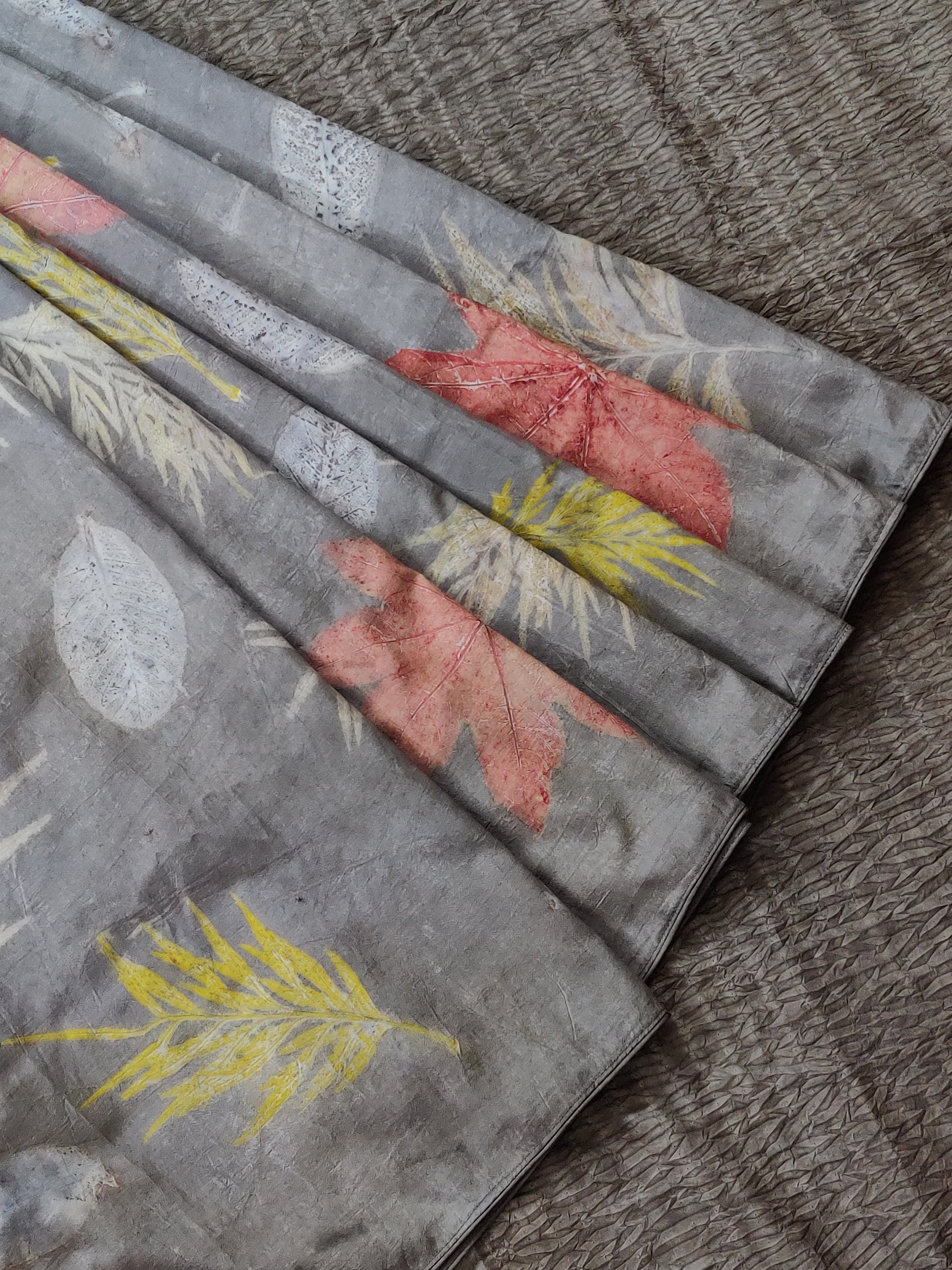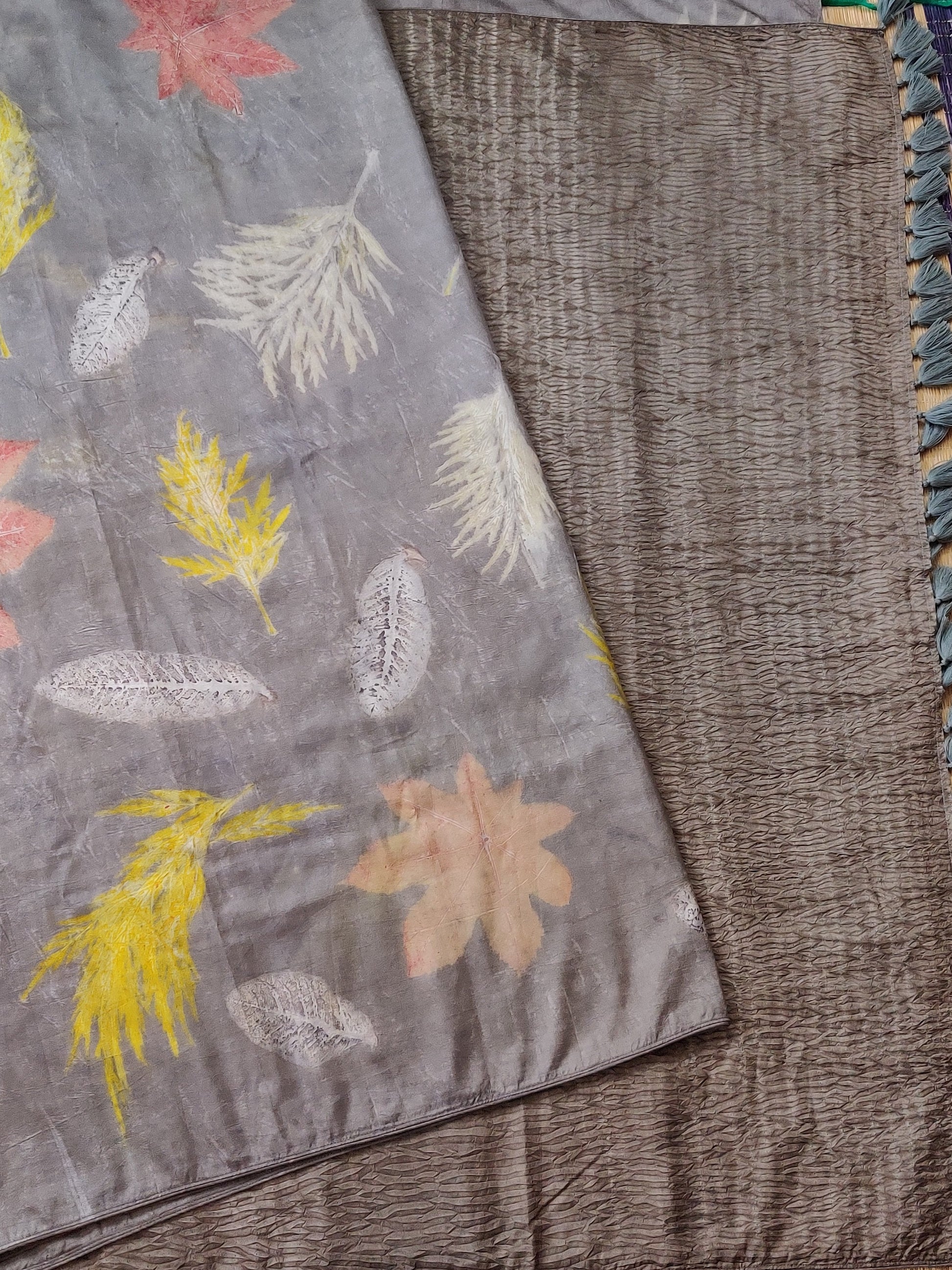 Grey Colour Pure Silk Saree With Natural Eco Print All Over Code : KA0341