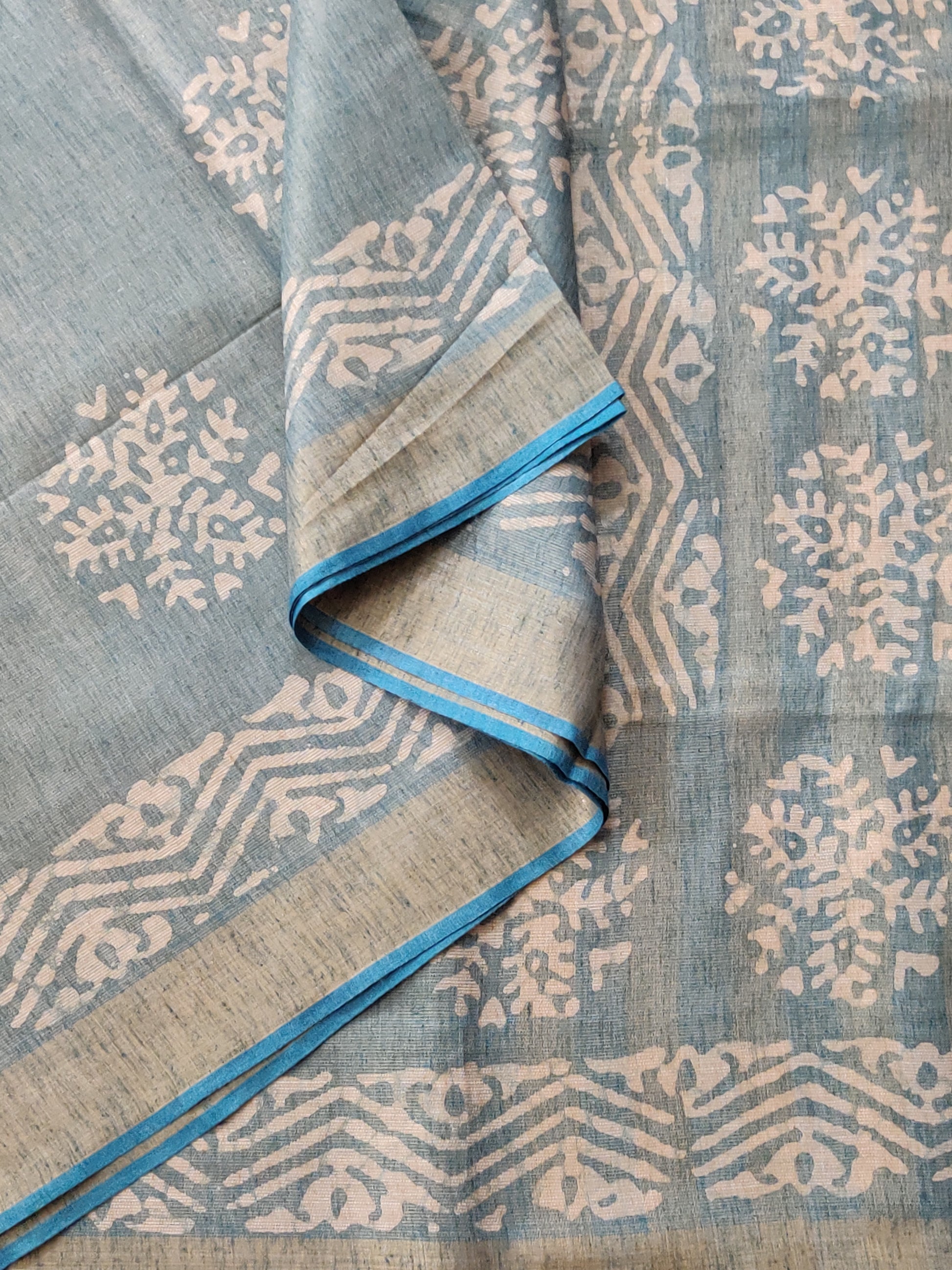 Grey Colour Semi Banarasi Saree With Batik Print All Over Code : VB0346