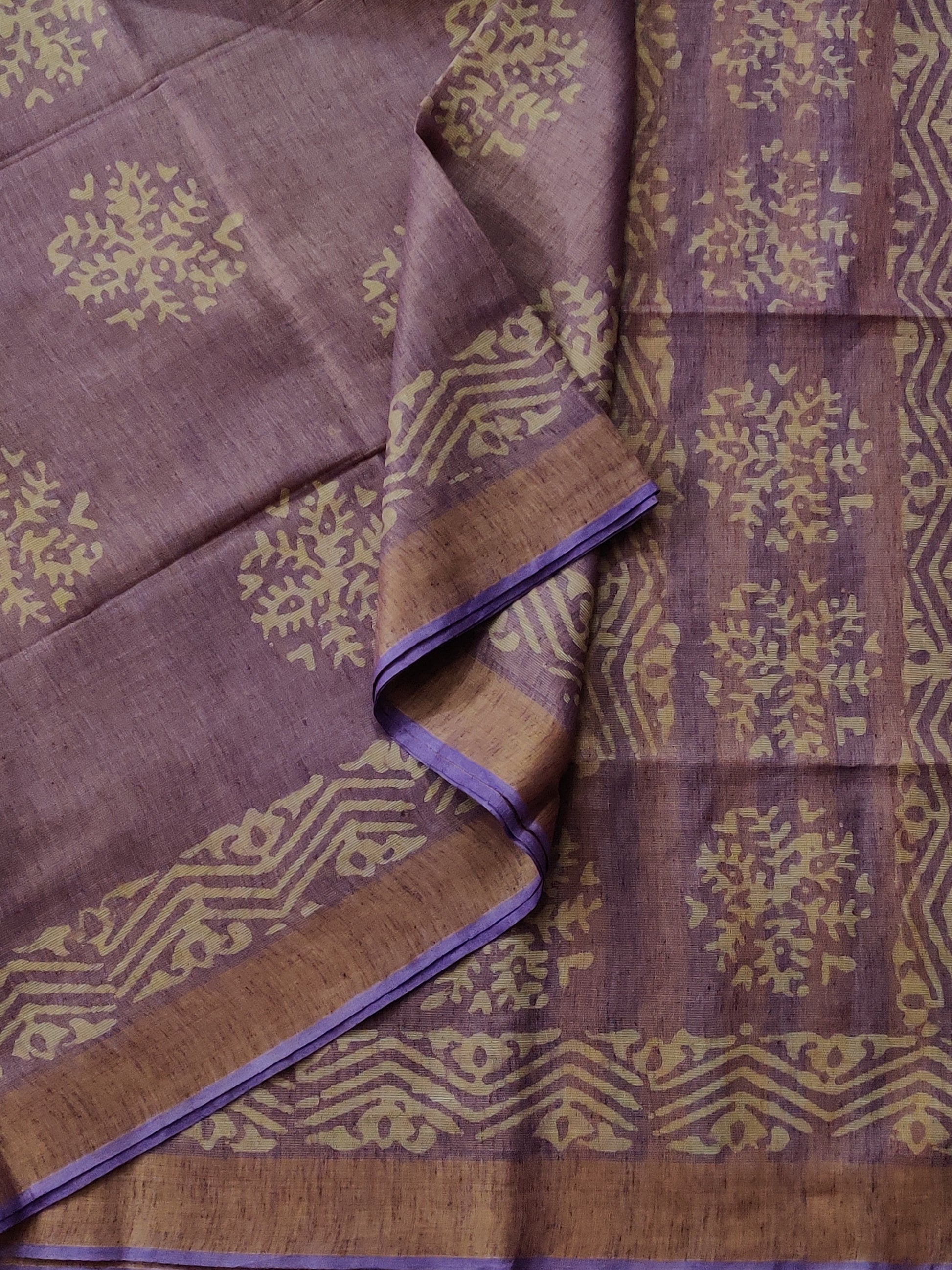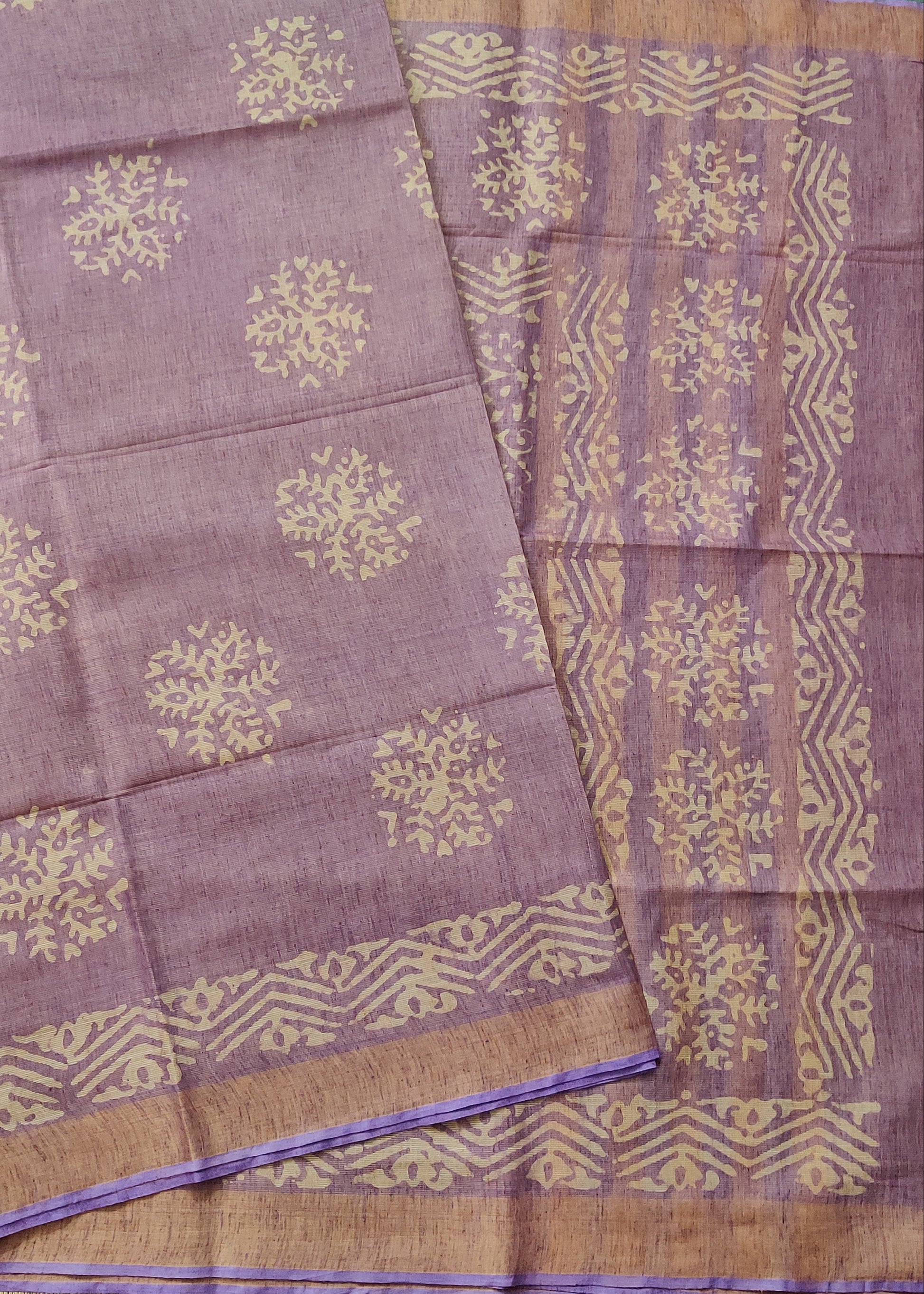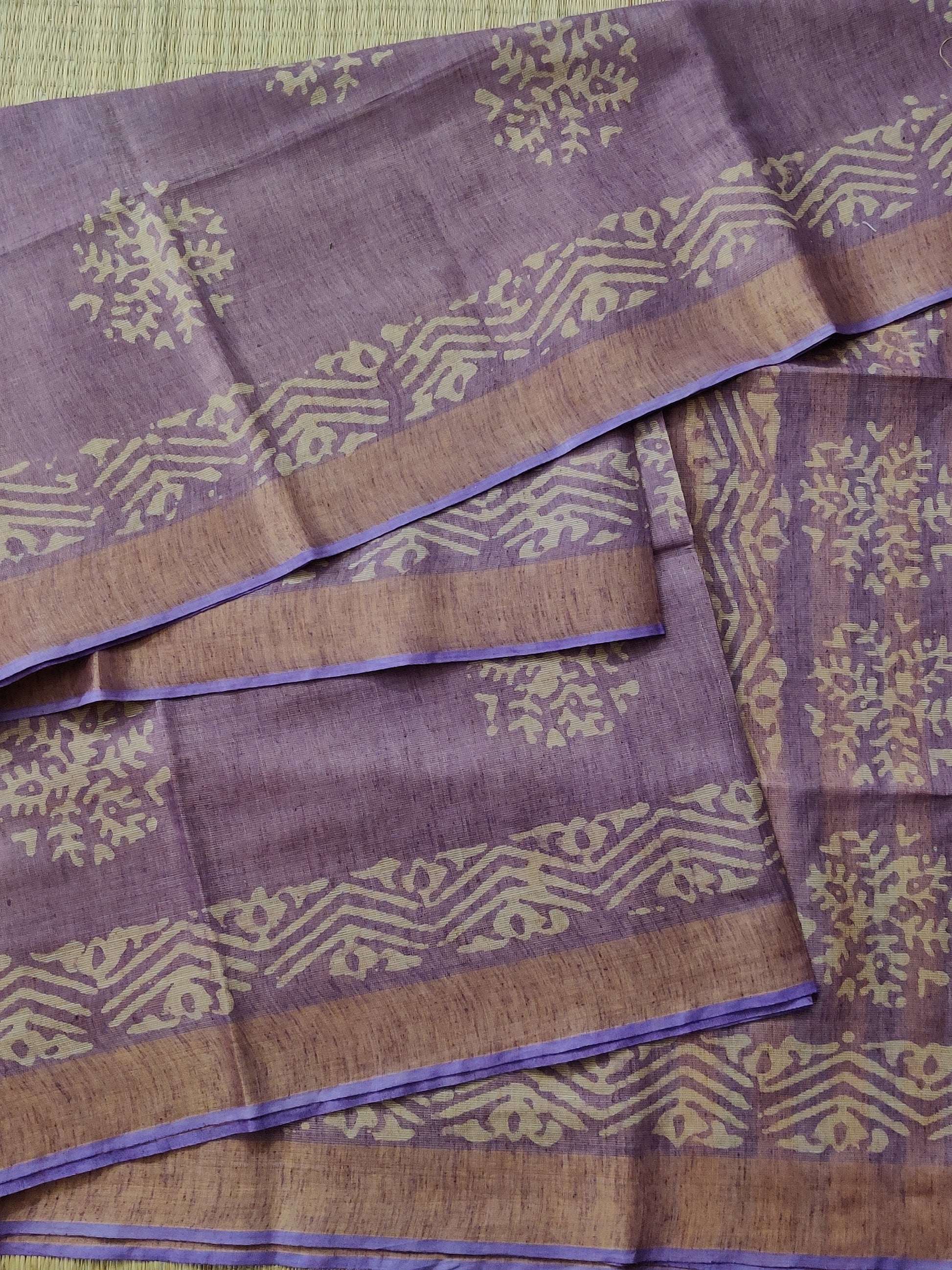 Lavender Colour Semi Banarasi Saree With Batik Print All Over Code : VB0346