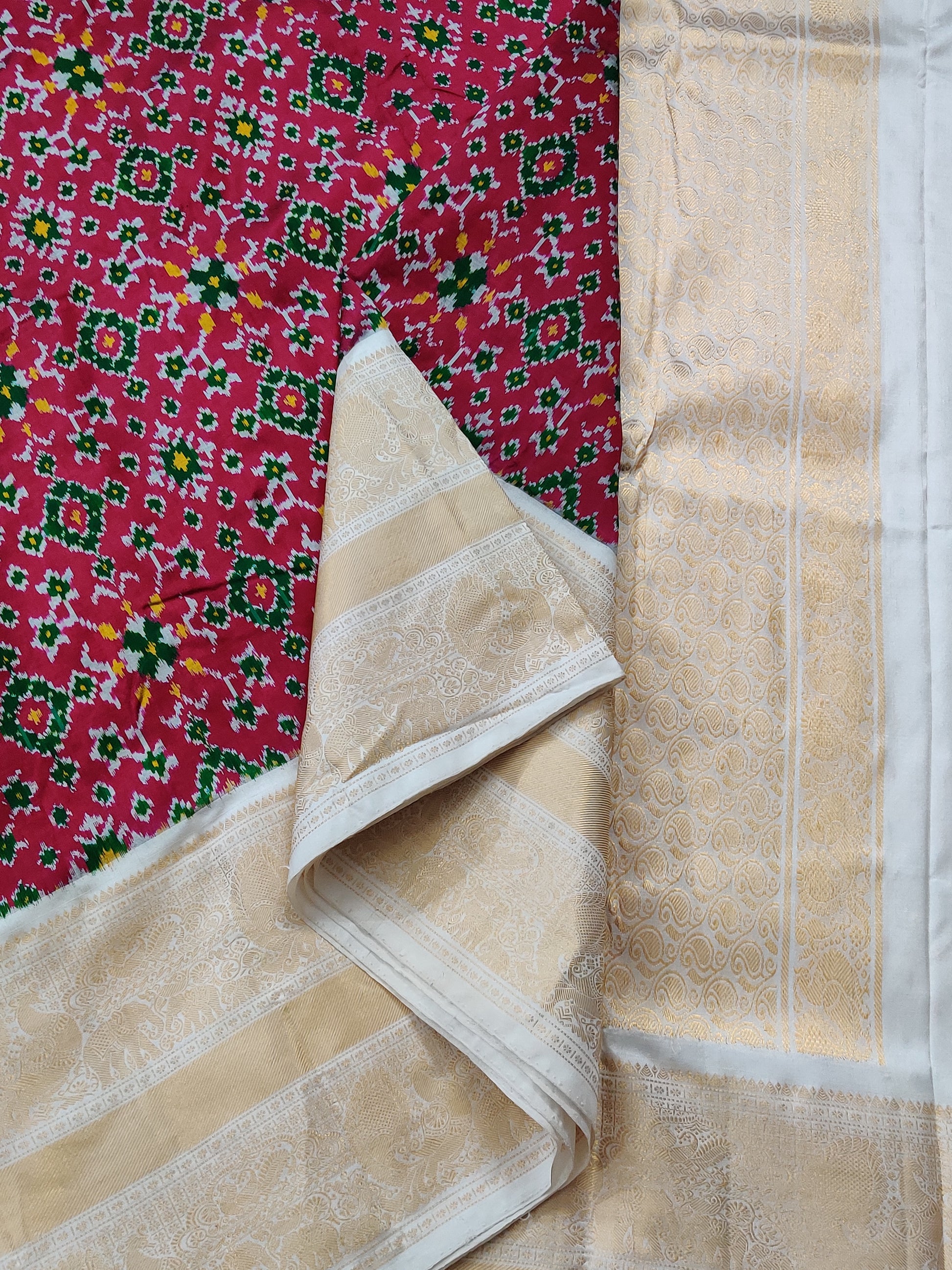 Magenta Colour Ikkat Silk Saree With Ikkat Weaving All Over Code : IK015