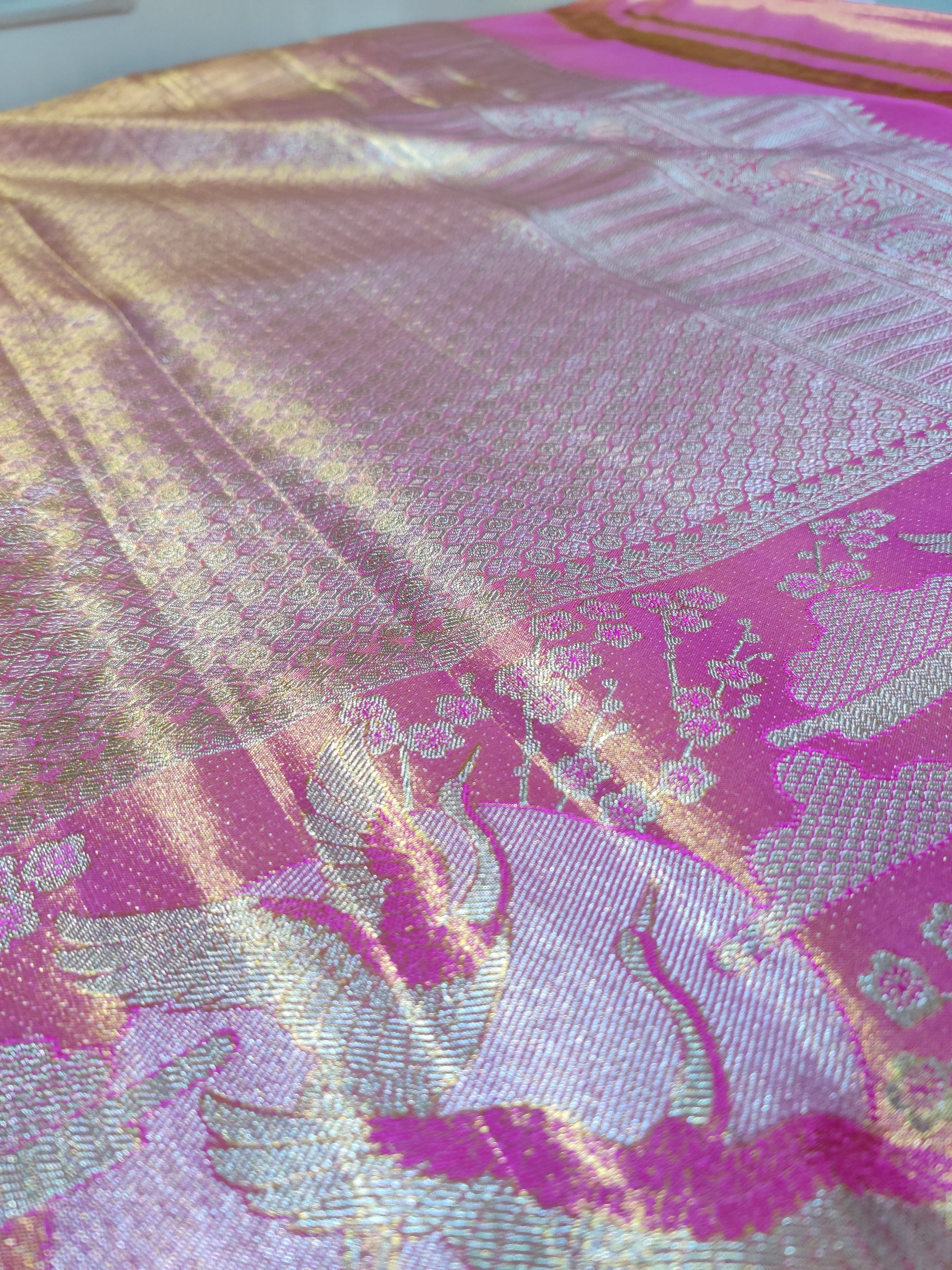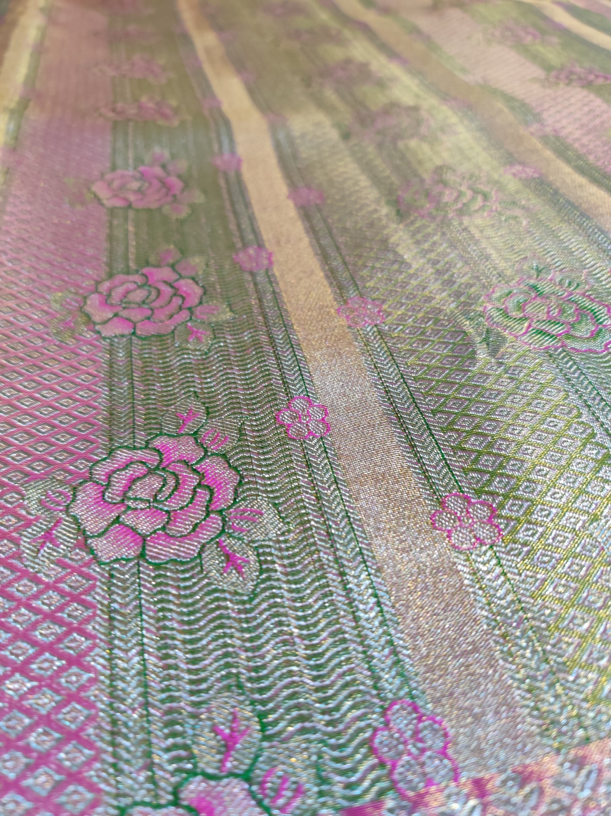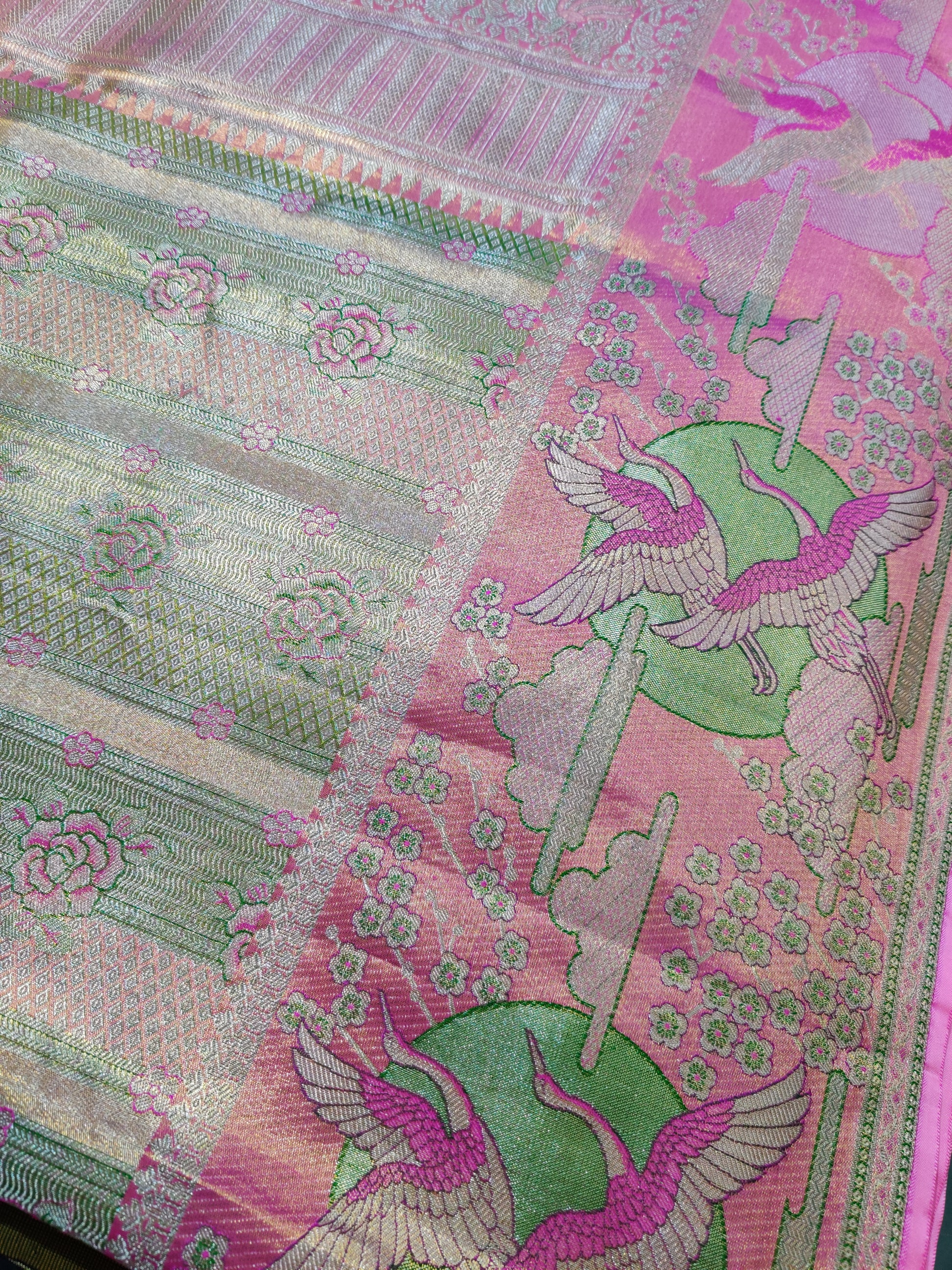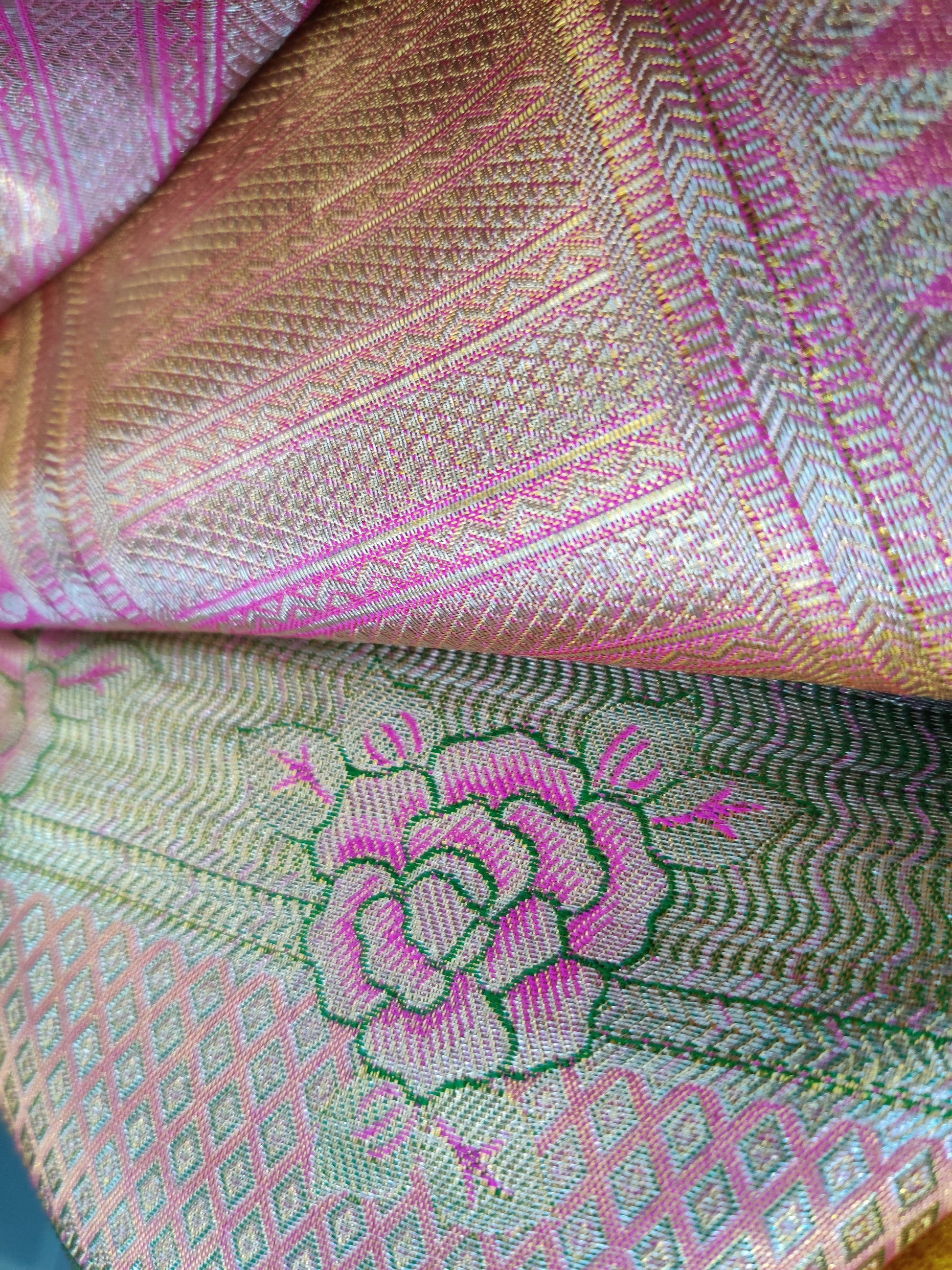 Multi Colour Tissue Kanchivaram Silk Saree With Zari & Thread Woven Motif All Over Code : KA0279