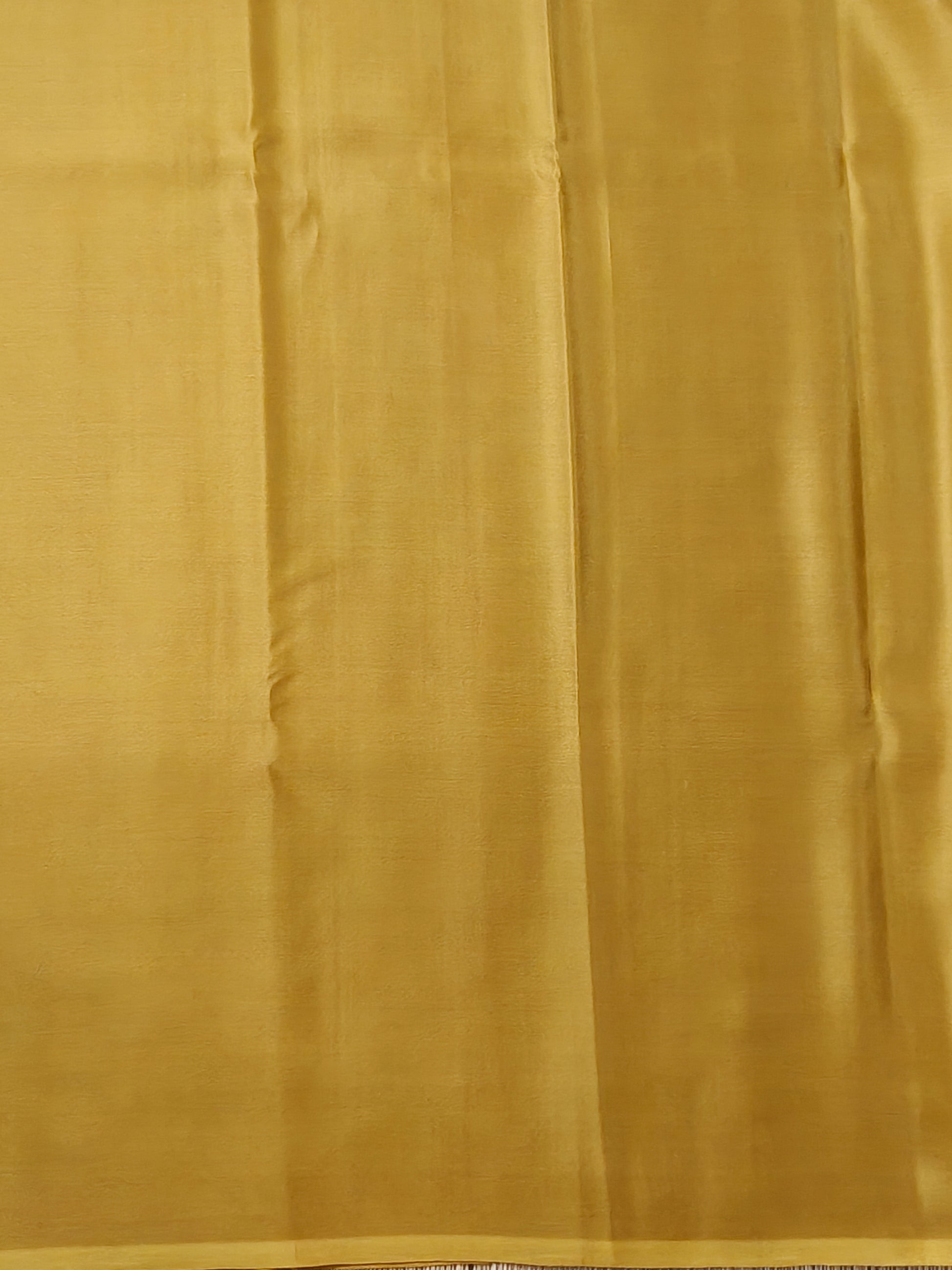 Elevate your ethnic wardrobe with this exquisite Mehandi Green and Gold Mysore Crepe Silk Saree. Crafted from premium Mysore crepe silk, this saree showcases a sophisticated mehandi green base complemented by lustrous gold zari strips woven throughout. The intricate zari detailing creates a refined, traditional aesthetic perfect for weddings, festivals, and special occasions. The crepe silk fabric drapes beautifully while maintaining its structure, ensuring comfort and elegance throughout the day. An ideal choice for those who appreciate authentic South Indian craftsmanship and timeless design.