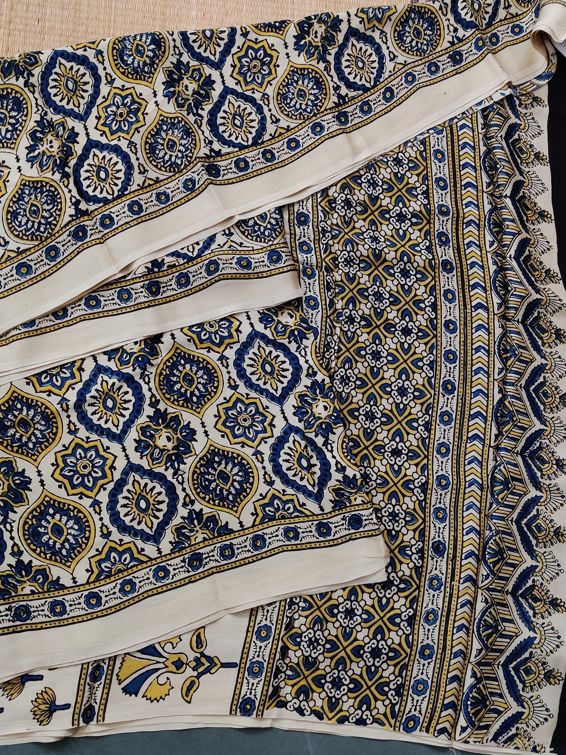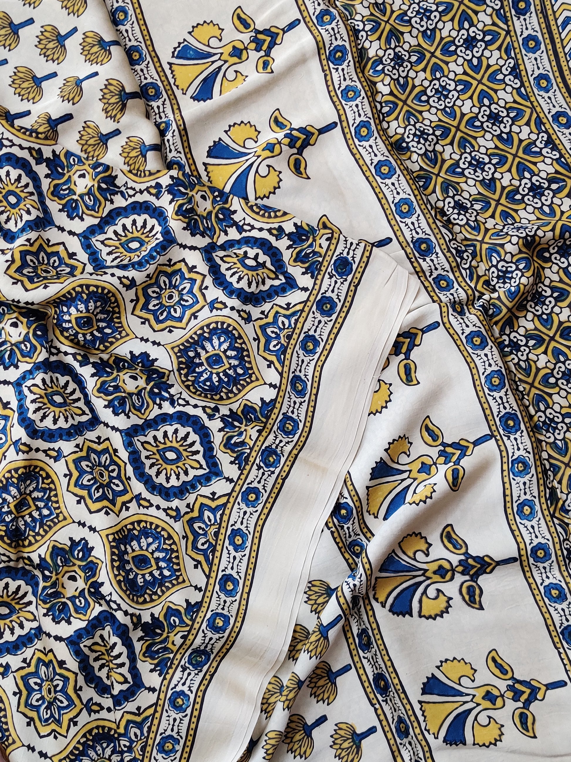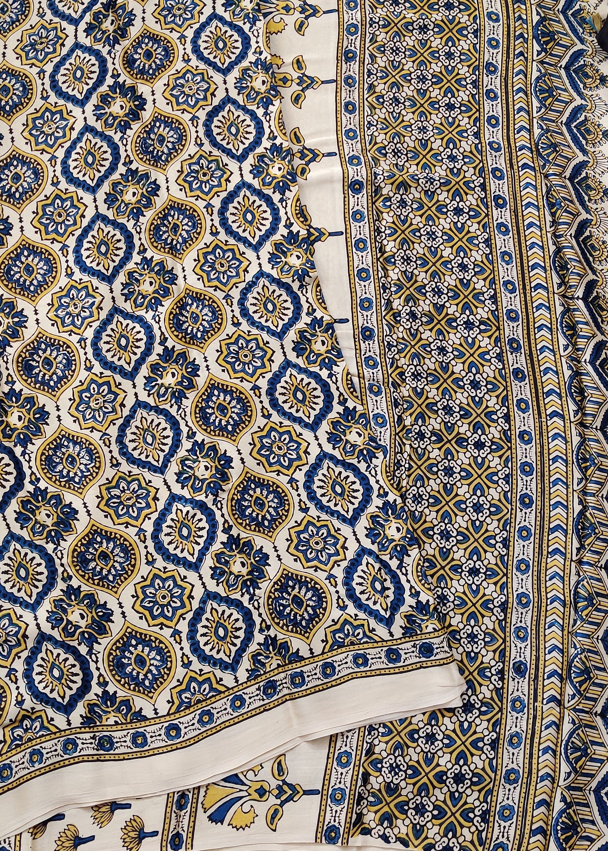 Off White Colour Modal Silk Saree With Ajakh Print All Over : VB0460