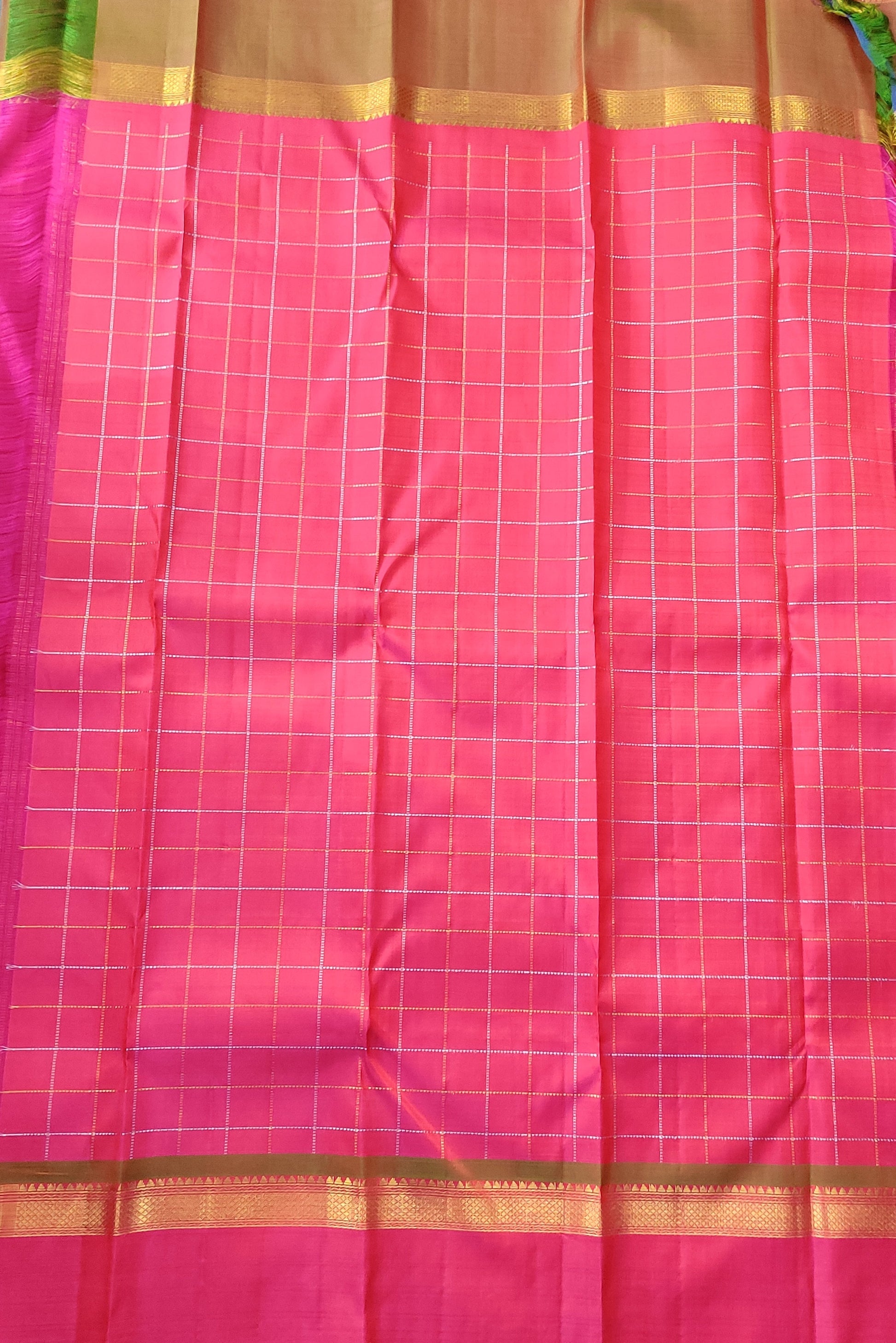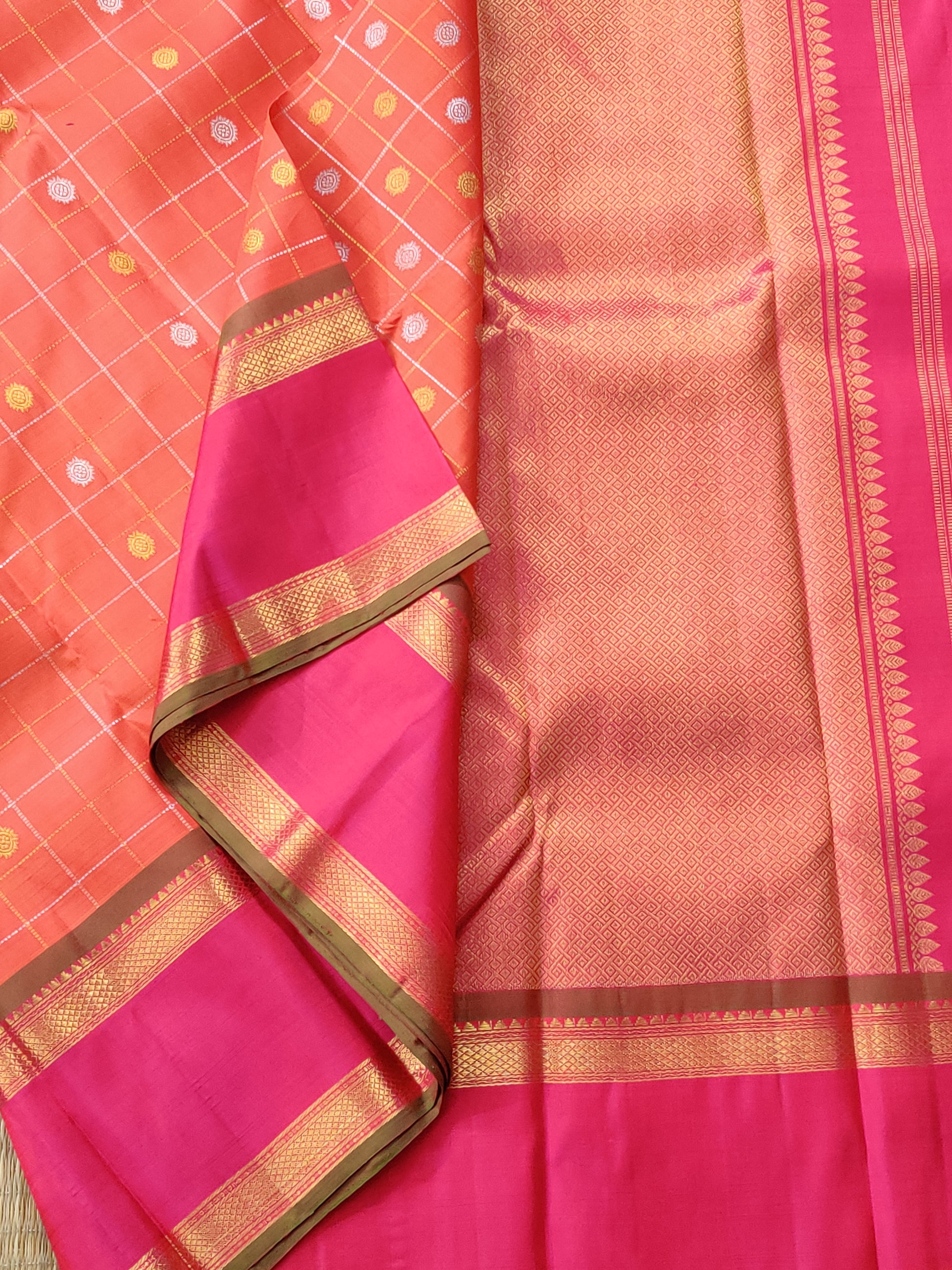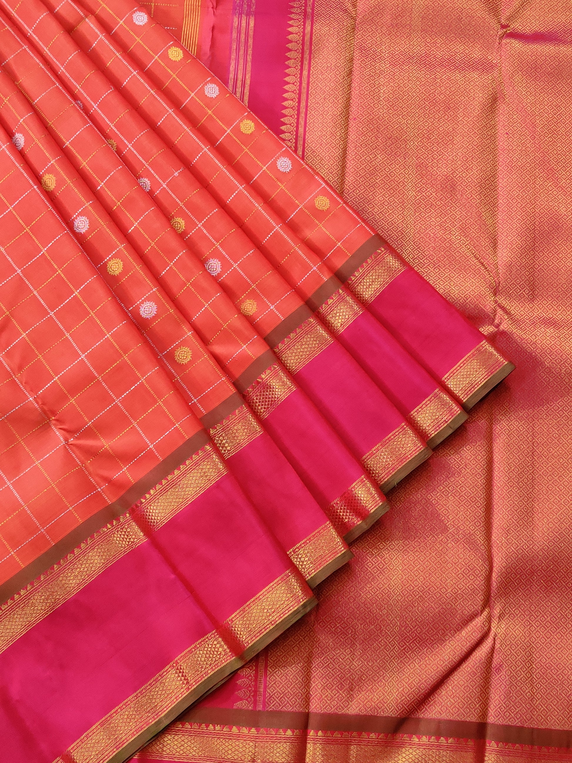 Orange Colour Kanchivaram Silk Saree With Gold & Silver Zari Butta All Over Code : KA0327