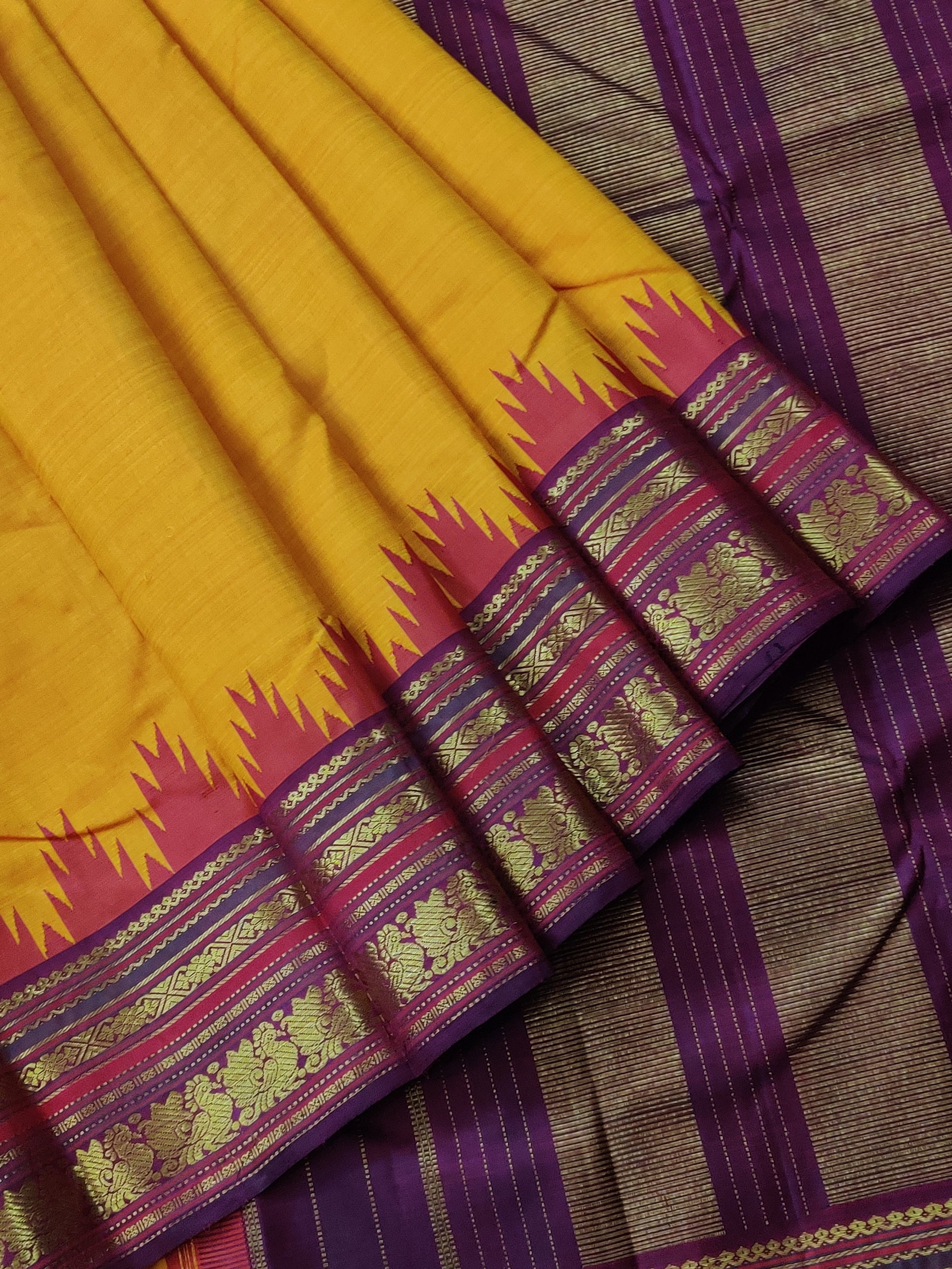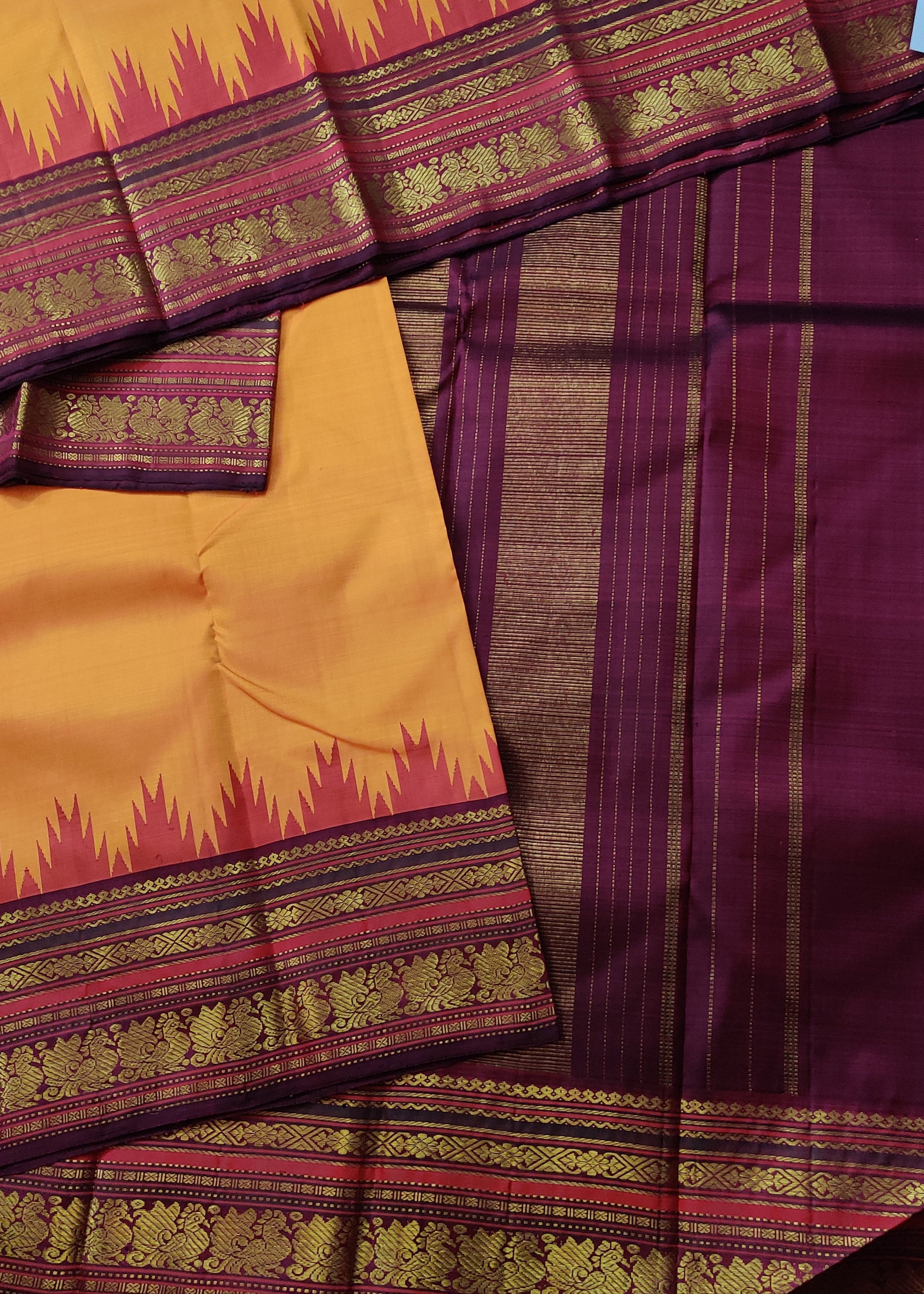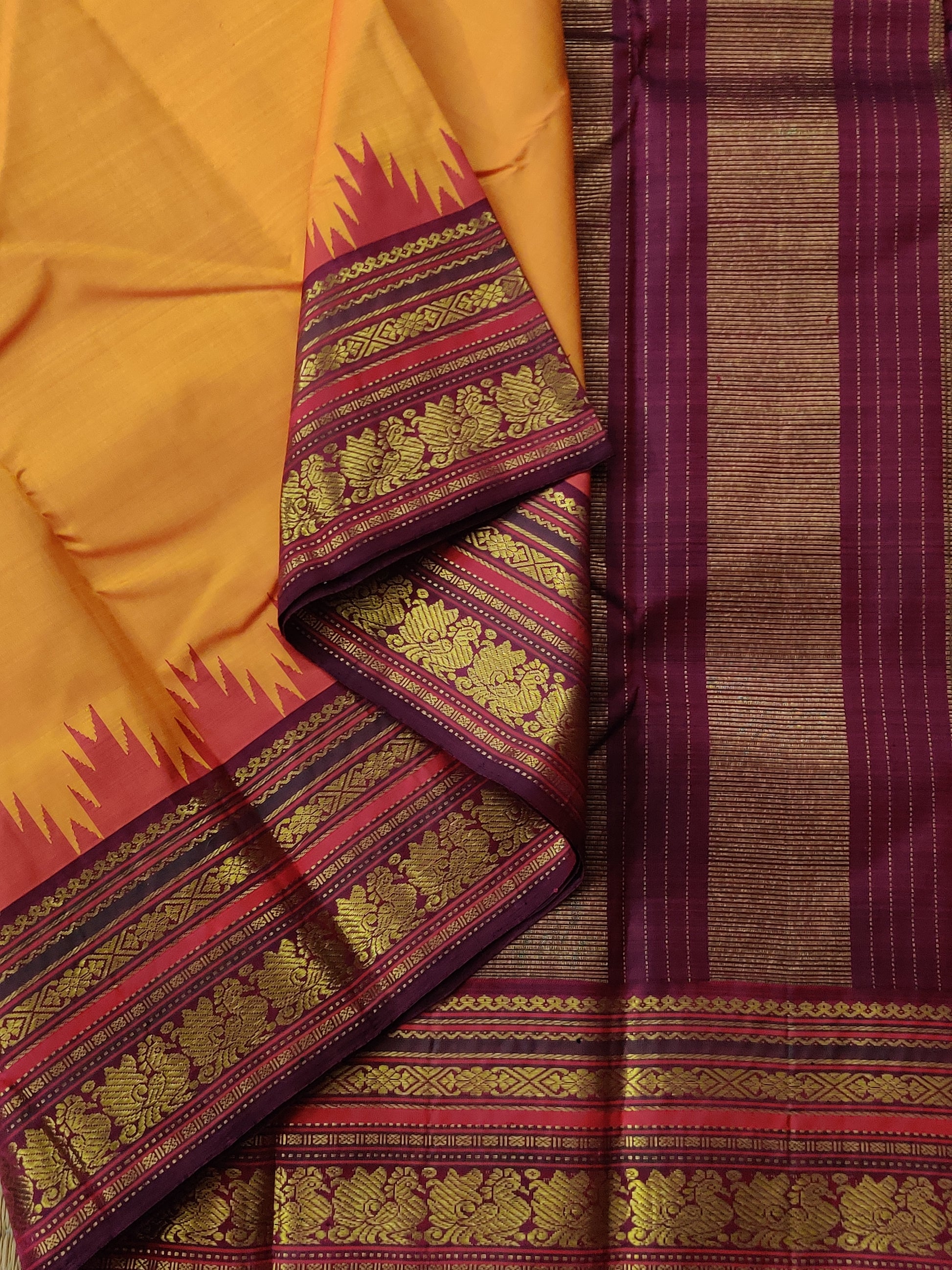 Orange Colour Kanchivaram Silk Saree With Plain Body Code : KA0272