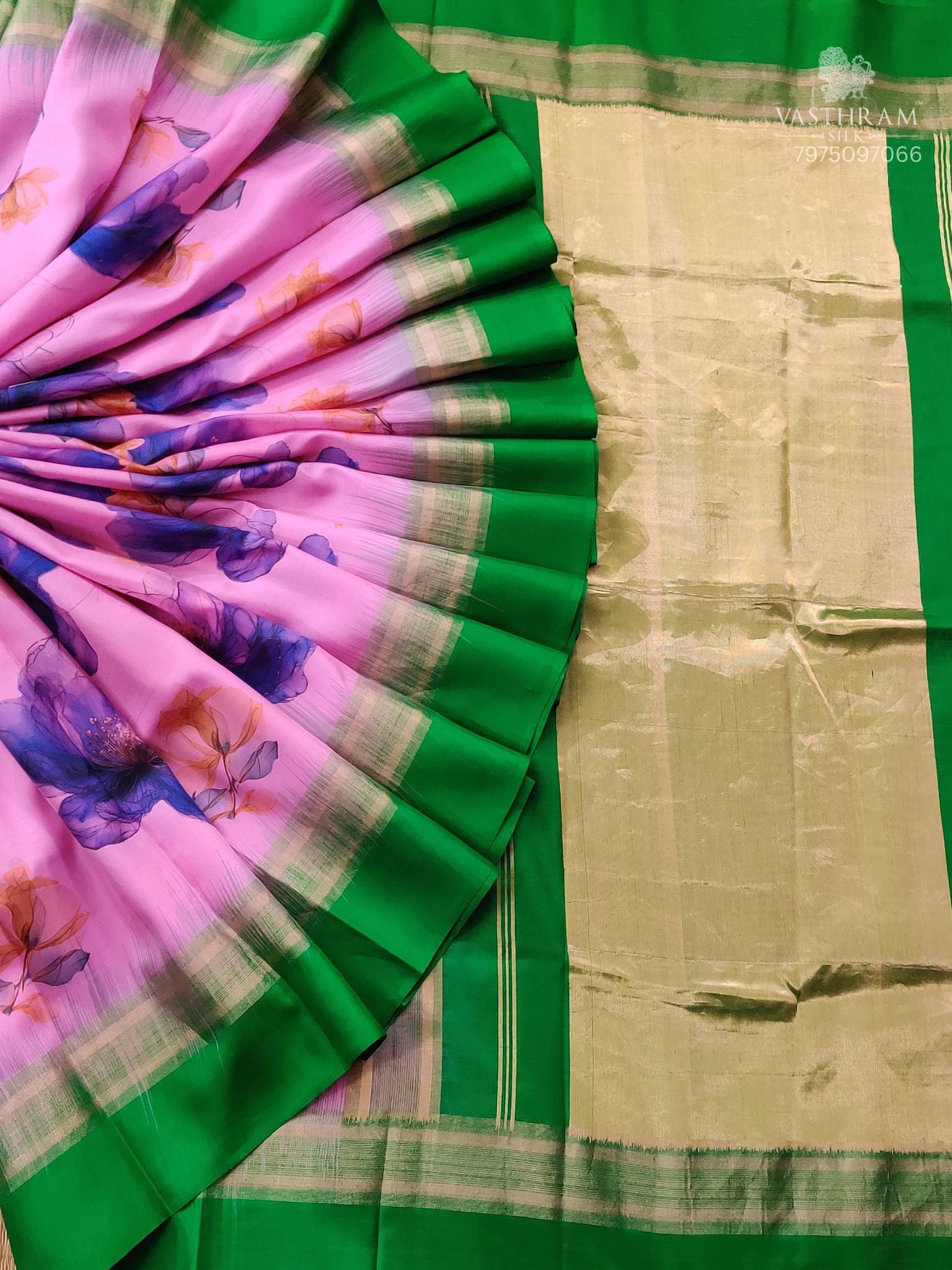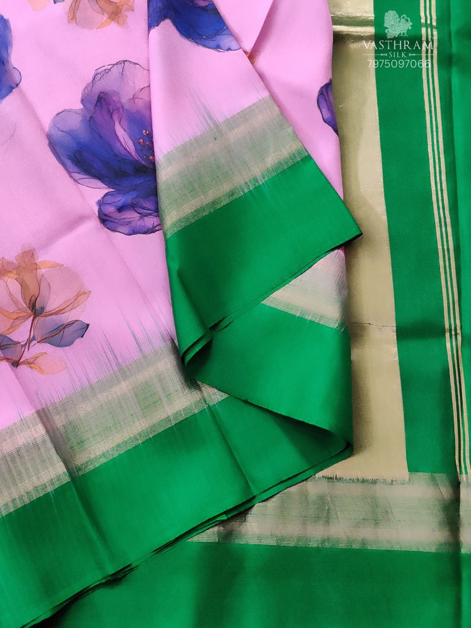 Elevate your ethnic wardrobe with this exquisite pink silk saree, meticulously crafted from premium soft silk that drapes with effortless grace. The sophisticated digital print body provides a refined foundation, while the striking contrast green zari border and ornate zari pallu showcase intricate detailing that catches light beautifully. Each piece of zari work reflects traditional craftsmanship, making this saree an ideal choice for festive occasions and celebrations. Accompanied by a coordinating plain blouse, it offers remarkable versatility for both traditional and contemporary styling. A testament to timeless artistry and understated luxury for the discerning silk connoisseur.