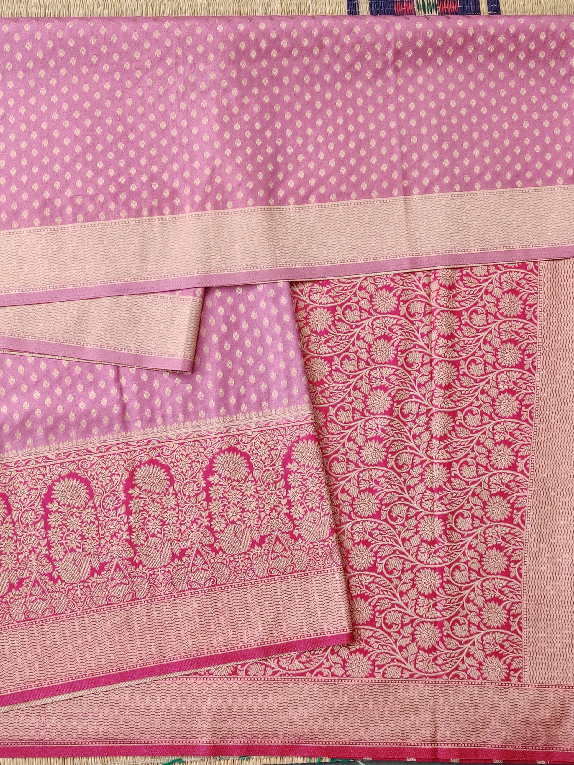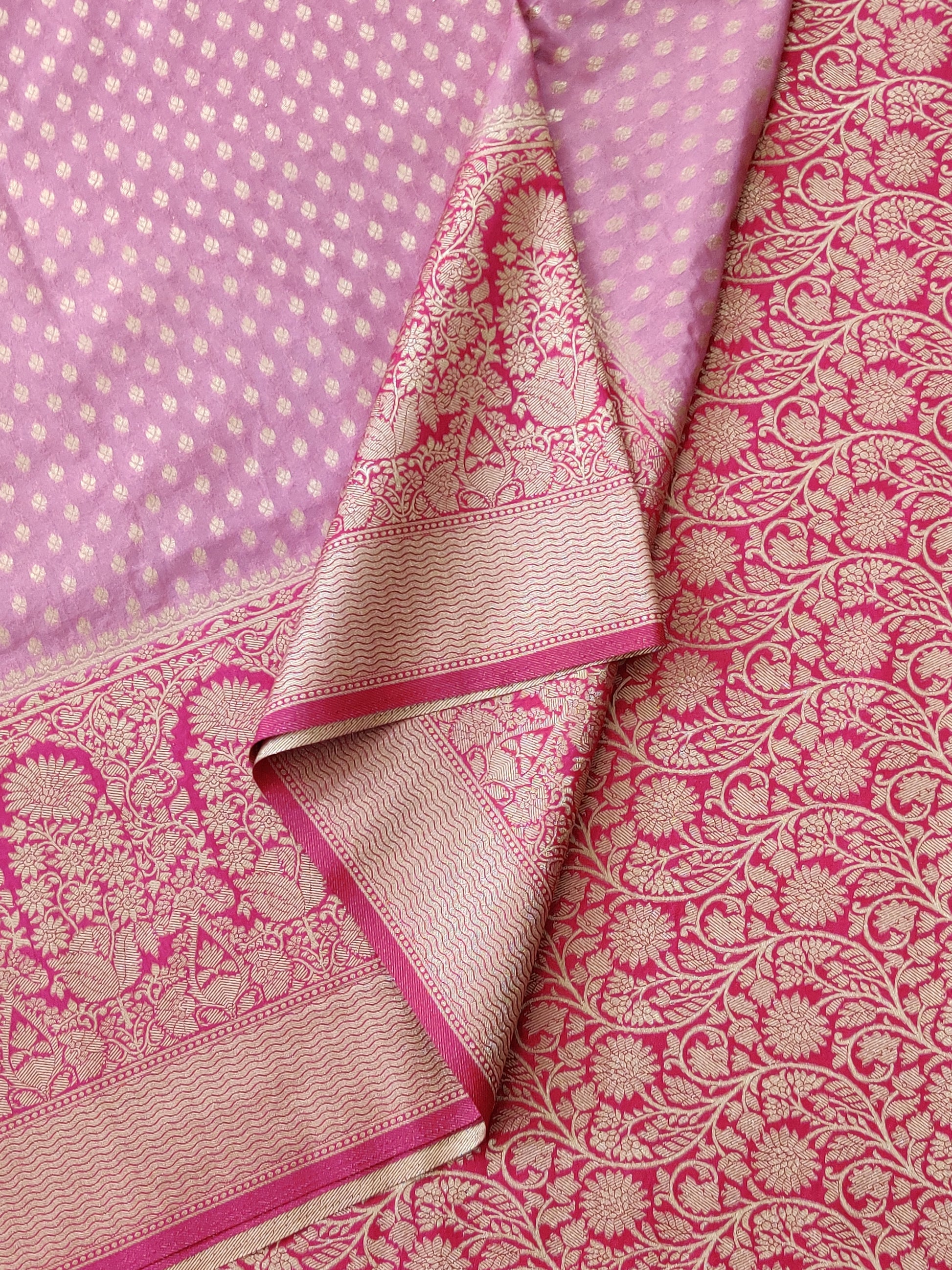 Baby Pink Colour Semi Banarasi Saree With Zari Butta All Over Code : VB0430